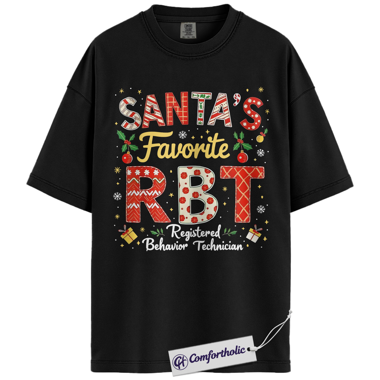 Santa’s Favorite RBT Shirt, Behavior Technician Christmas T-Shirt, Funny ABA Therapist Holiday Tee, Gift for Registered Behavior Technicians, Christmas Comfort Colors Shirt