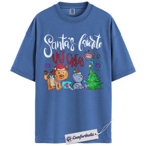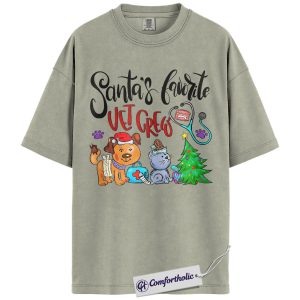 Santa’s Favorite Vet Crew Shirt, Veterinary Christmas T-Shirt, Funny Vet Tech Holiday Graphic Tee, Pet Lover Gift for Animal Care Professionals, Christmas Comfort Colors Shirt
