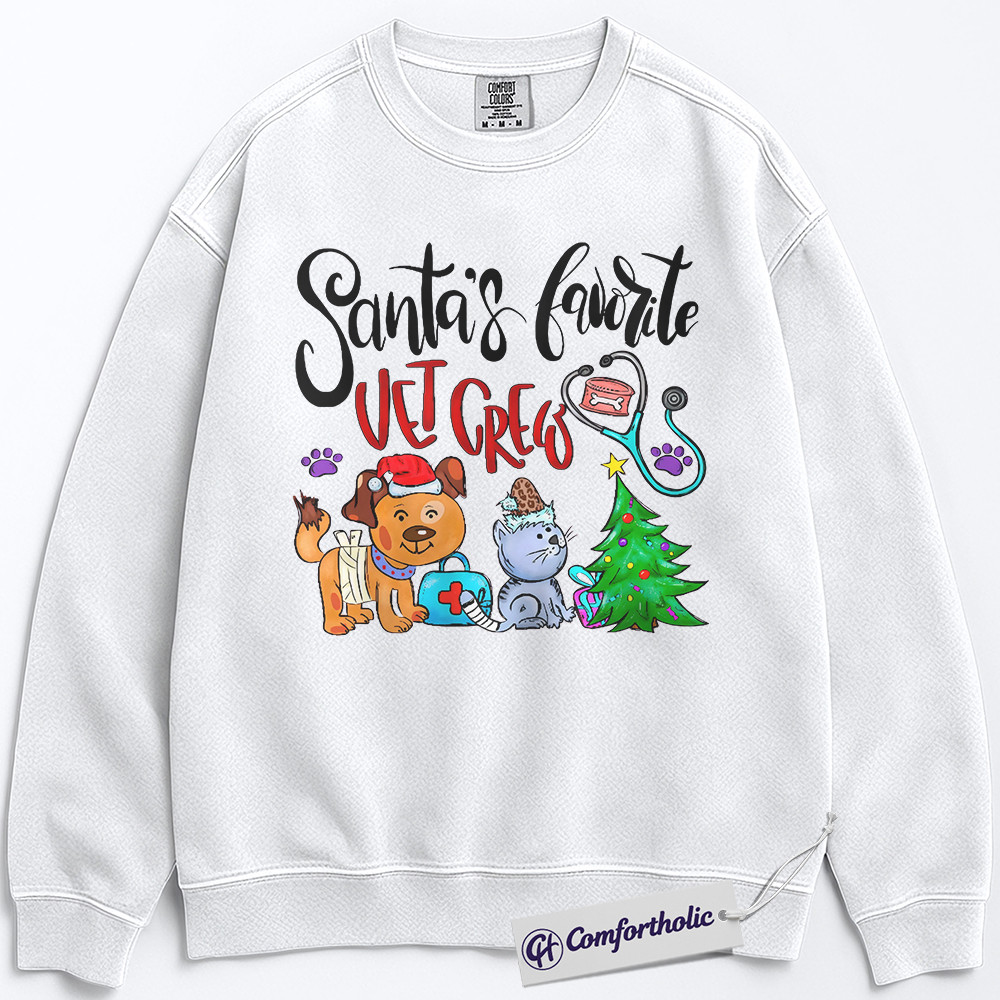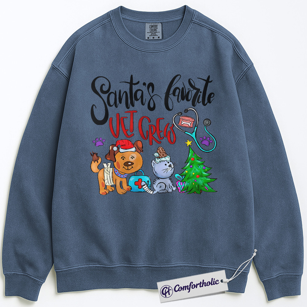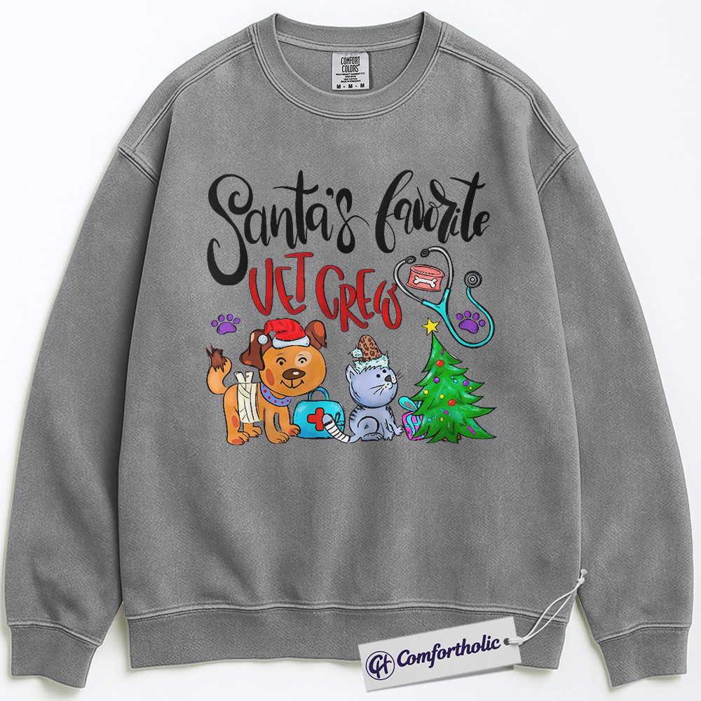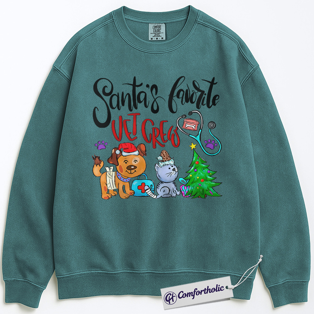 Santa’s Favorite Vet Crew Sweatshirt, Veterinary Christmas Pullover, Funny Vet Tech Holiday Graphic Sweatshirt, Pet Lover Gift for Animal Care Professionals, Christmas Comfort Colors Sweatshirt