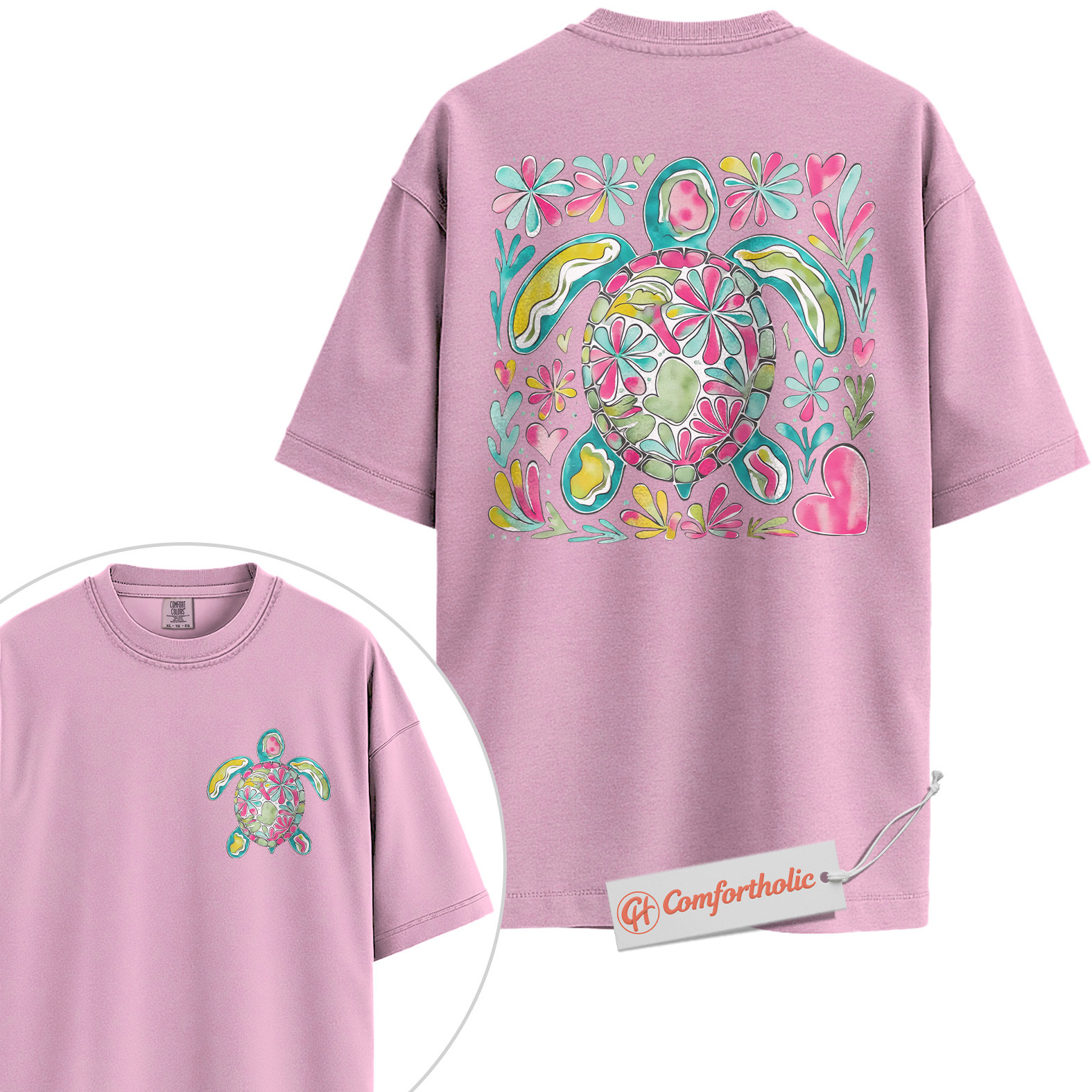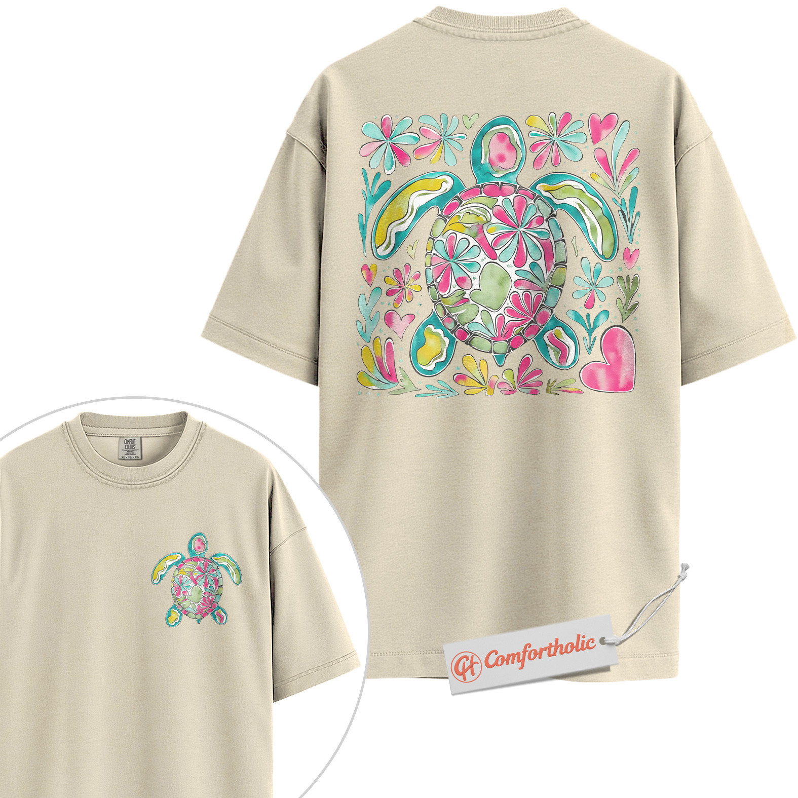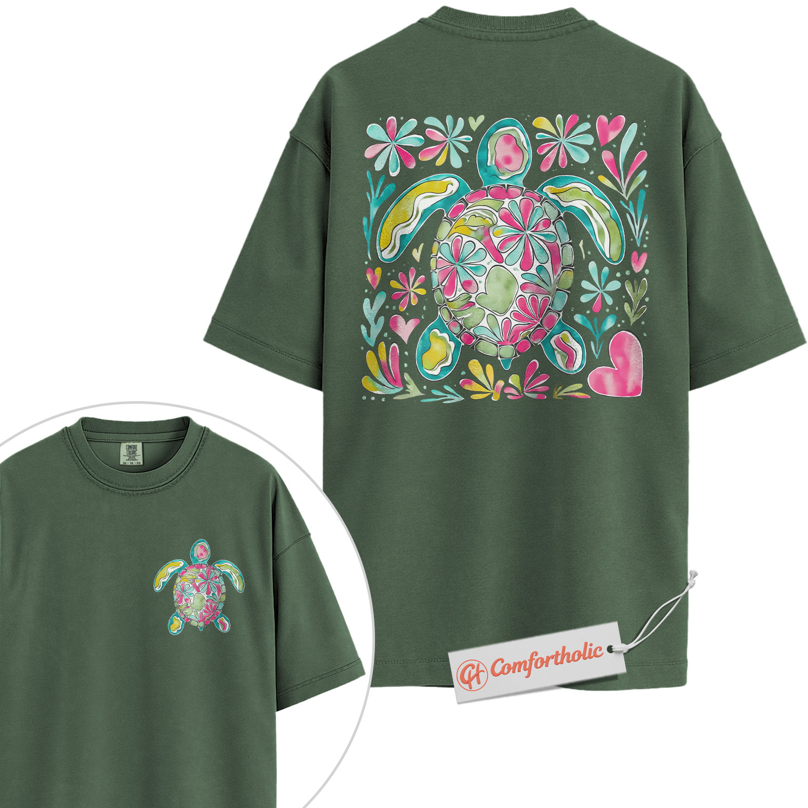 Sea Turtle Shirt, Watercolor Beach Graphic T-Shirt, Cute Ocean Animal Tee, Tropical Summer Gift for Sea Life Lovers, Turtle Comfort Colors Shirt 2-Sided