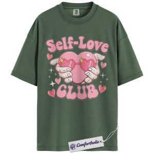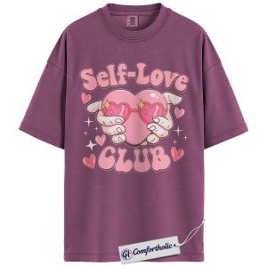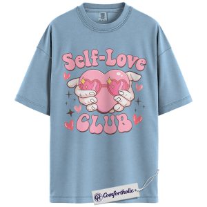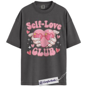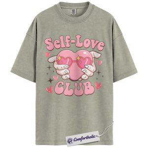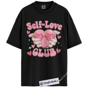 Self Love Club Shirt, Cute Heart Hands Graphic Tee, Positive Mental Health T-Shirt, Valentine’s Day Gift for Women & Girls, Comfort Colors Shirt
