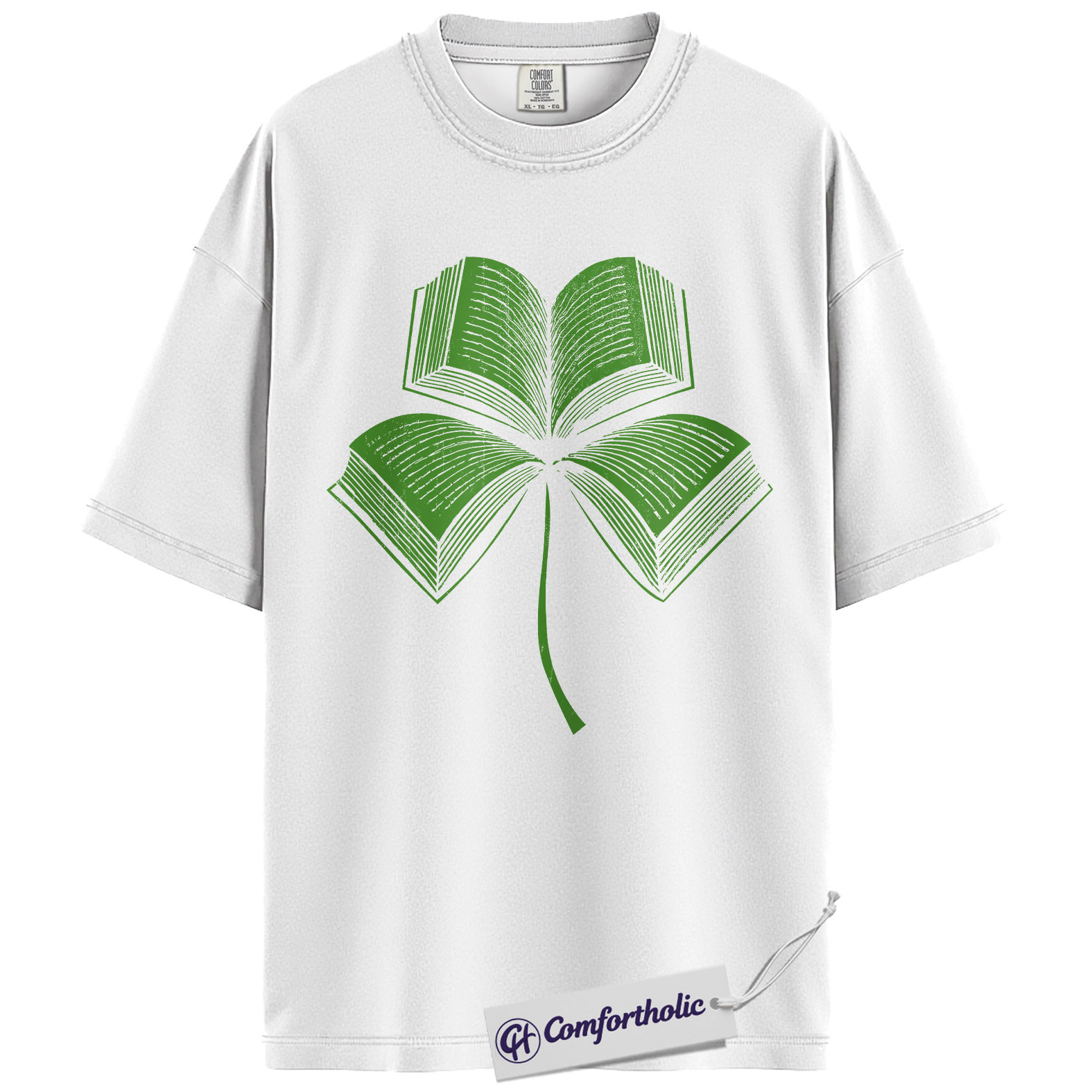 Shamrock Book Shirt, St Patrick’s Day Book Lover Graphic Tee, Lucky Reading T-Shirt, Gift for Book Lovers, Comfort Colors Shirt