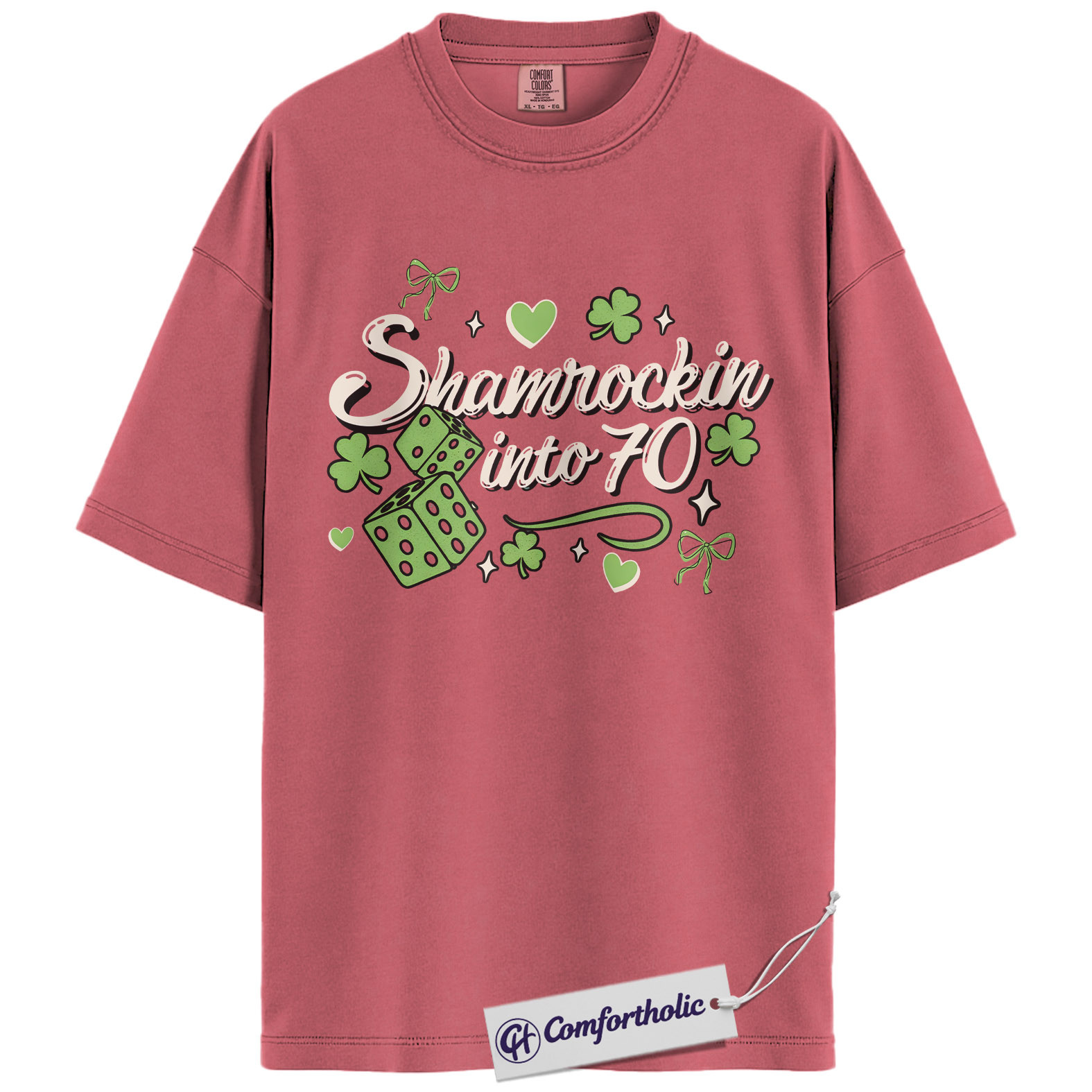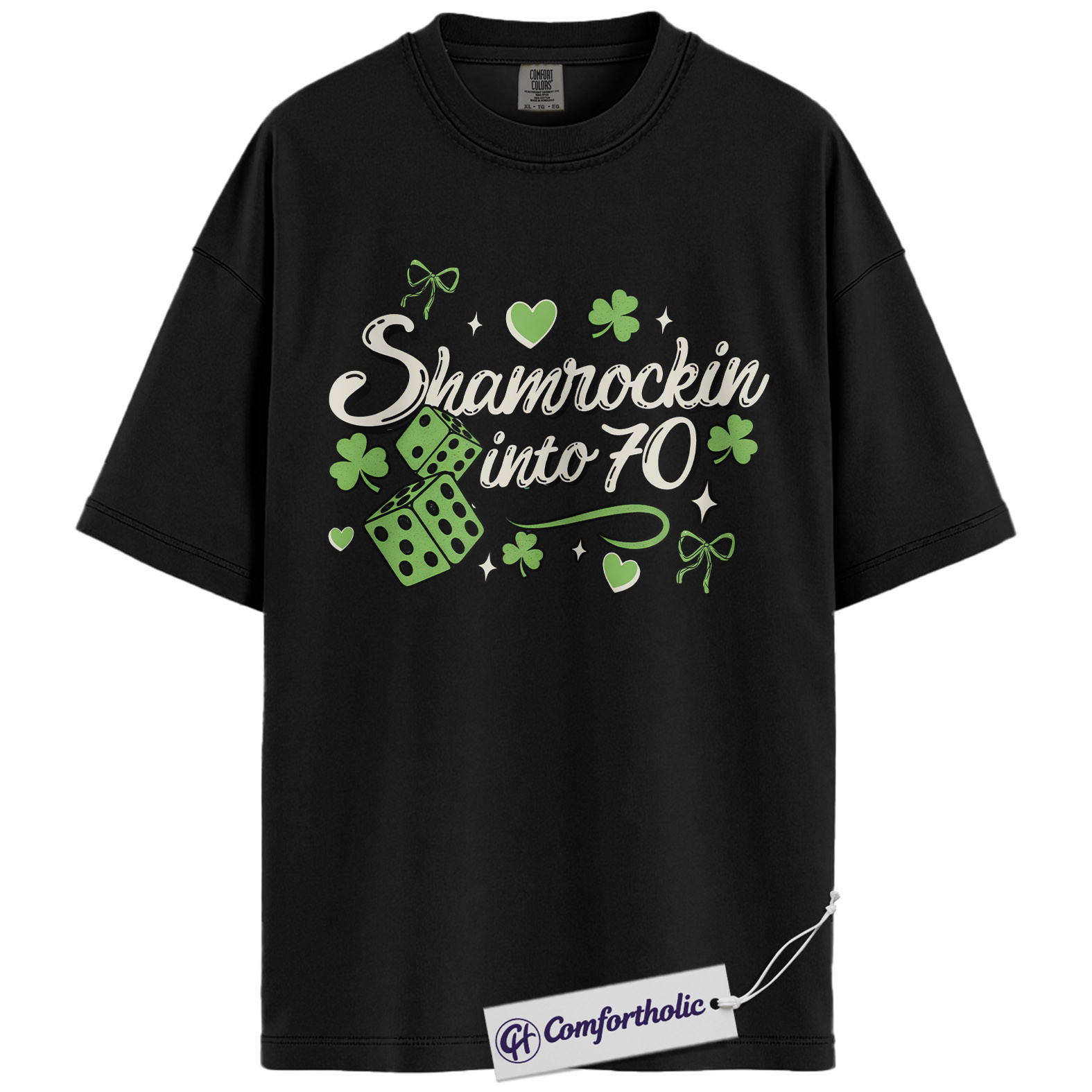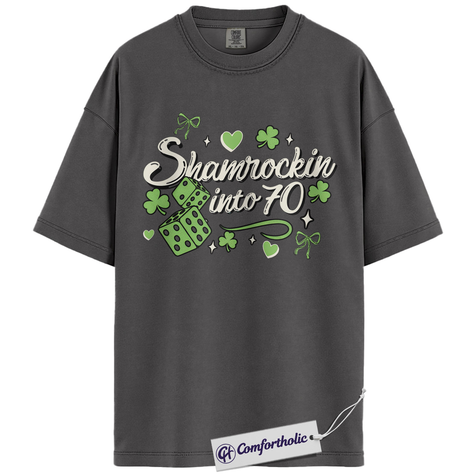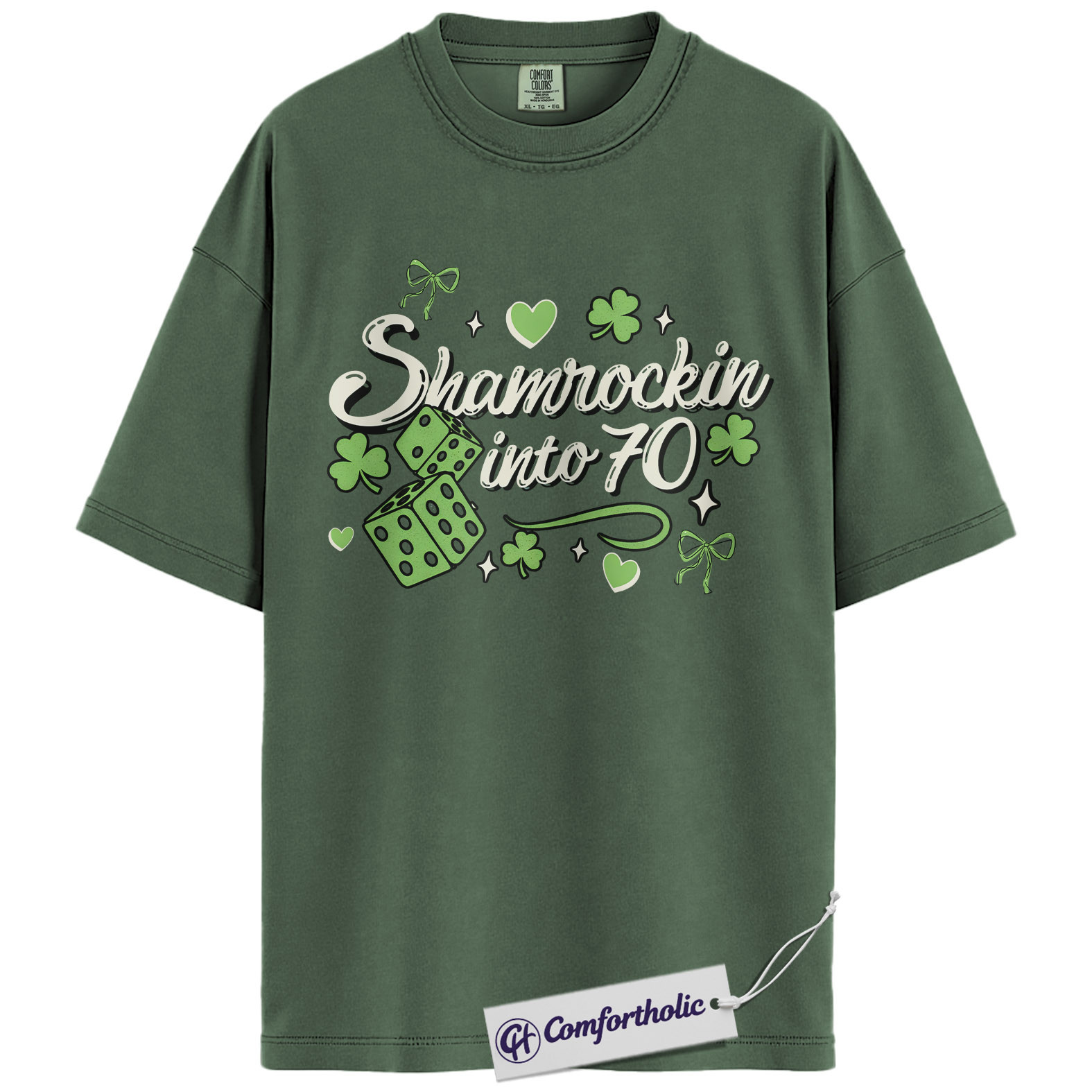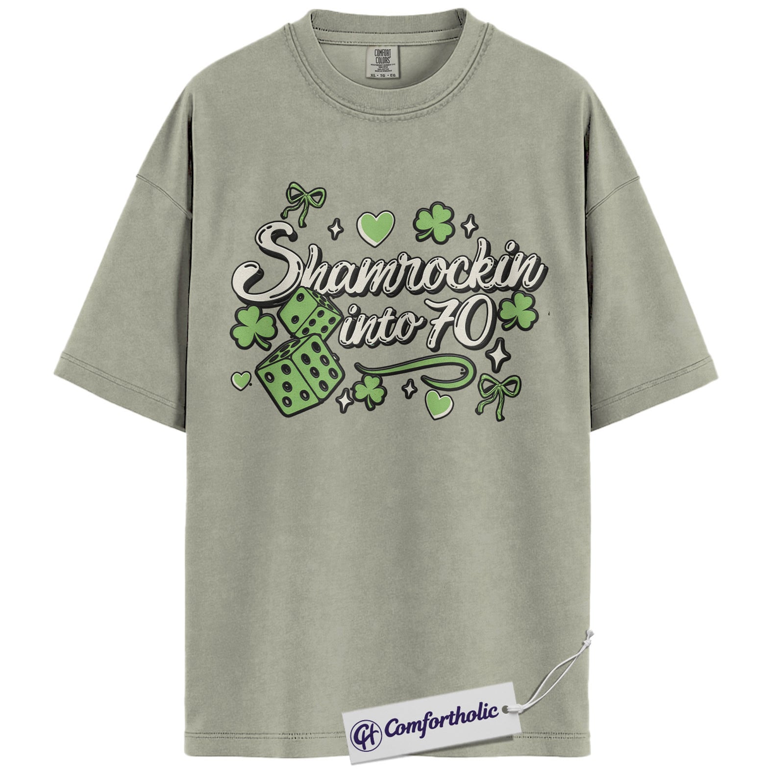 Shamrockin Into 70 Shirt, Funny St Patrick’s Day Graphic Tee, 70th Birthday Irish Shamrock T-Shirt, Gift for Men & Women, Comfort Colors Shirt