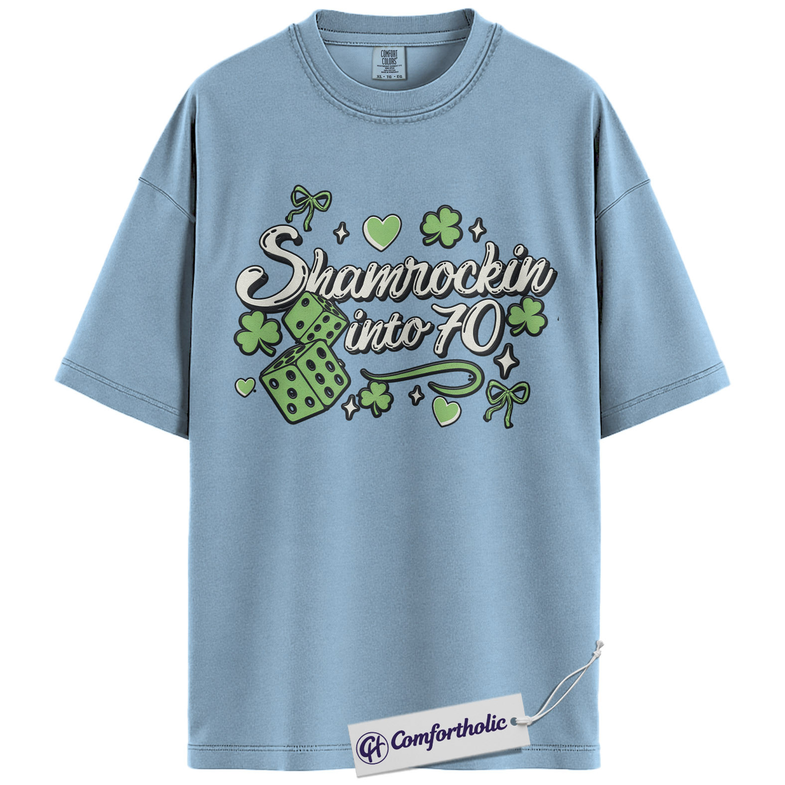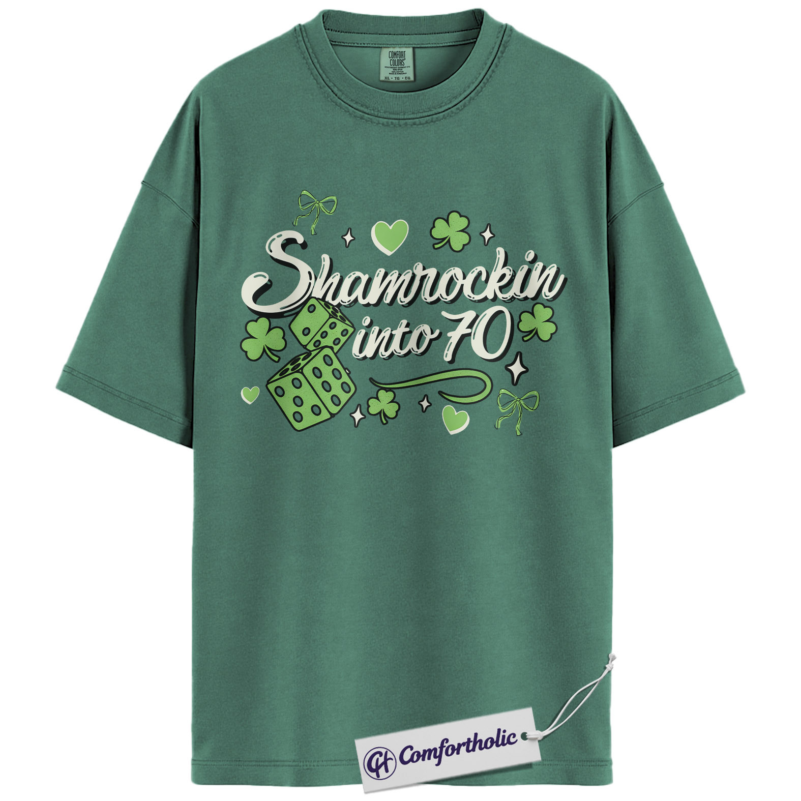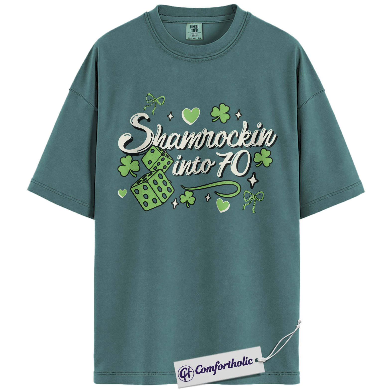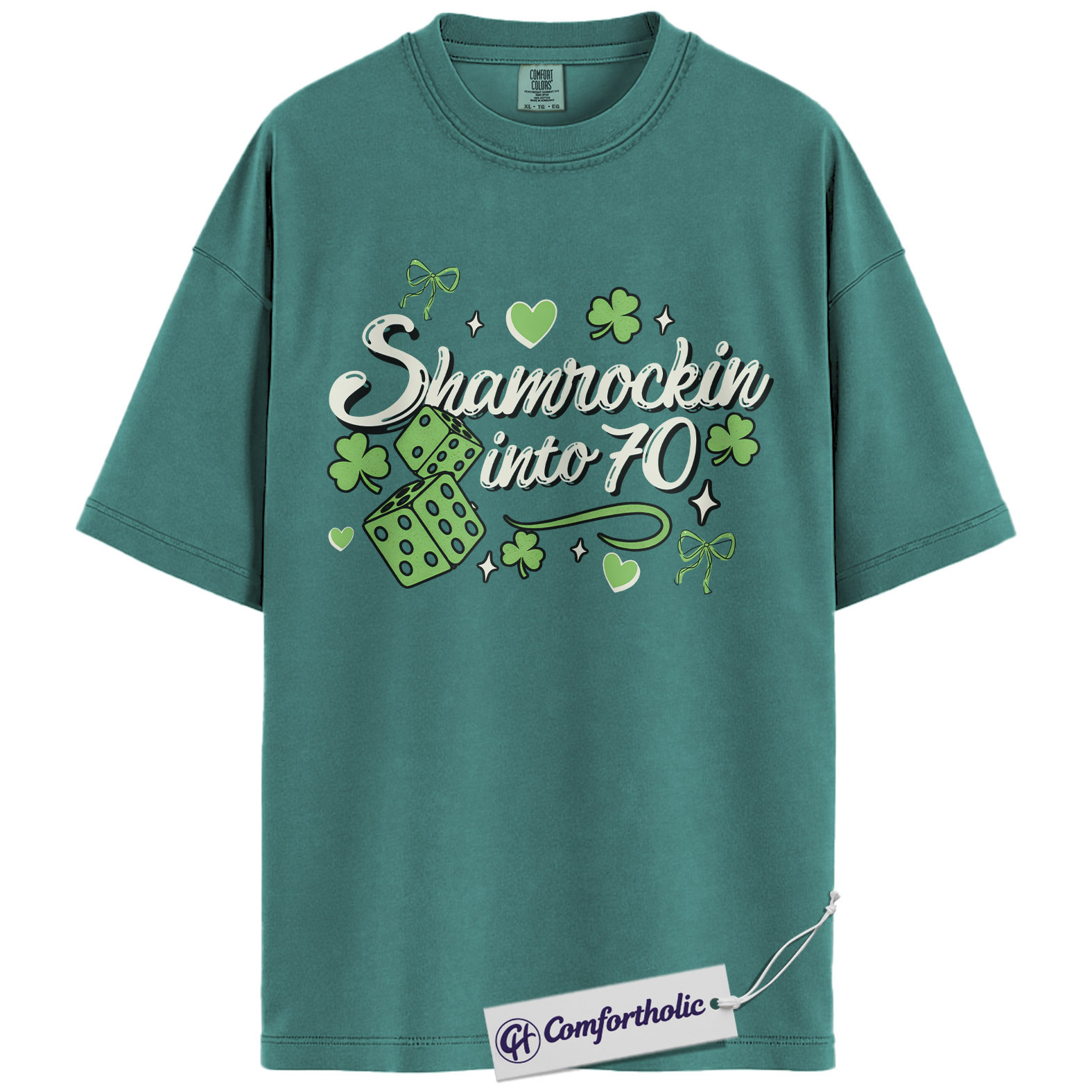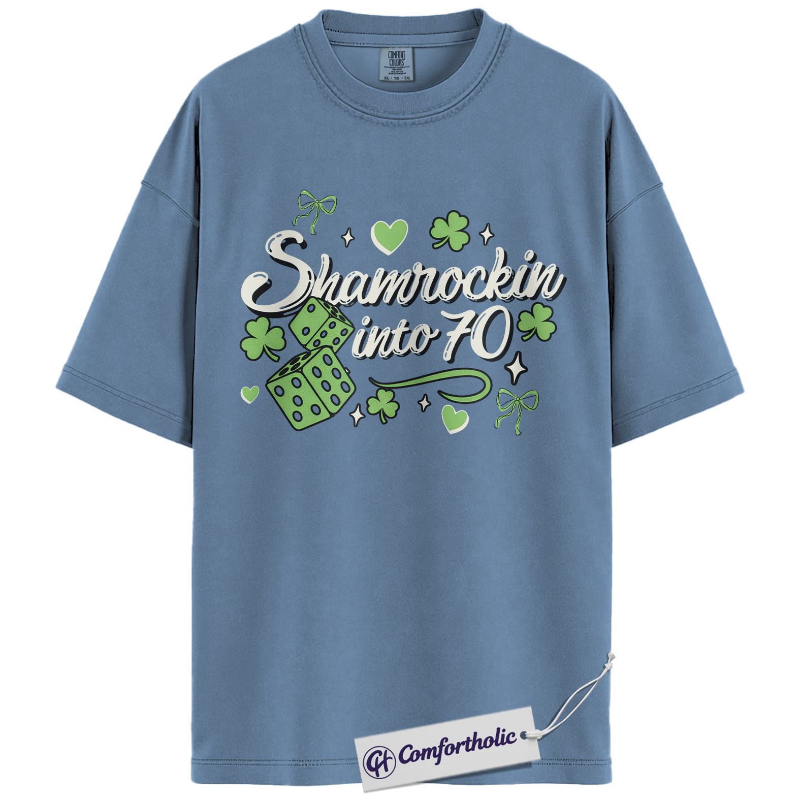 Shamrockin Into 70 Shirt, Funny St Patrick’s Day Graphic Tee, 70th Birthday Irish Shamrock T-Shirt, Gift for Men & Women, Comfort Colors Shirt