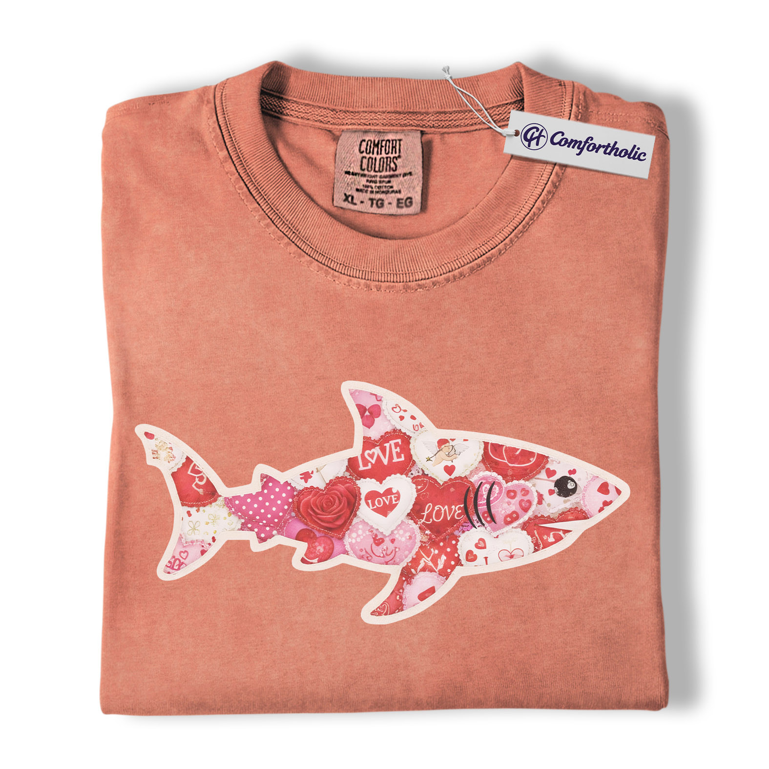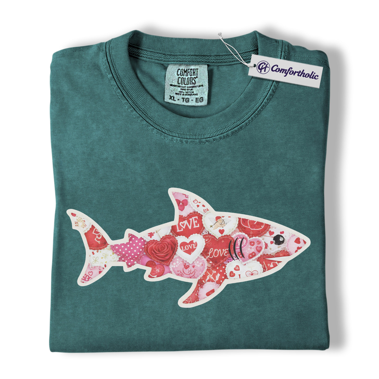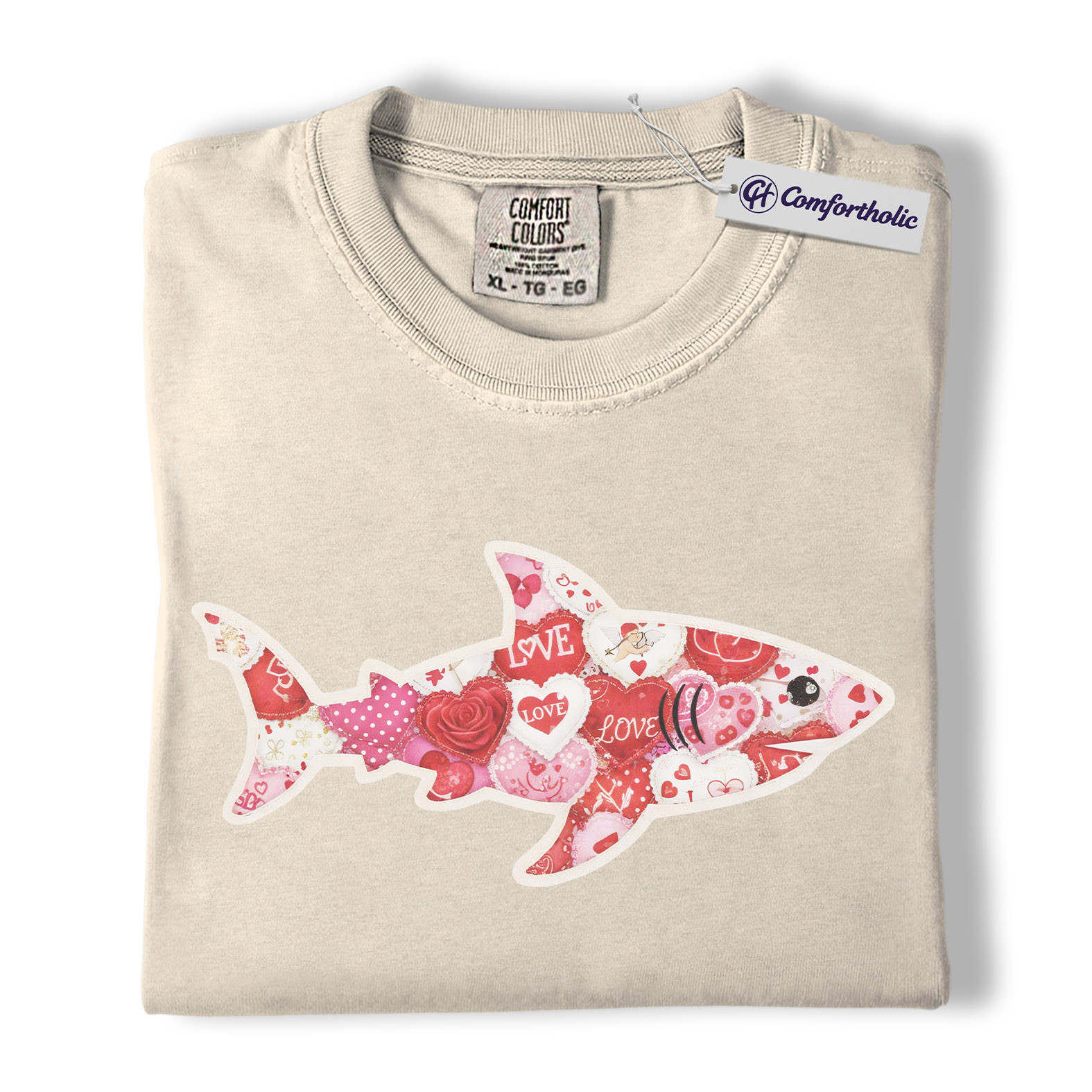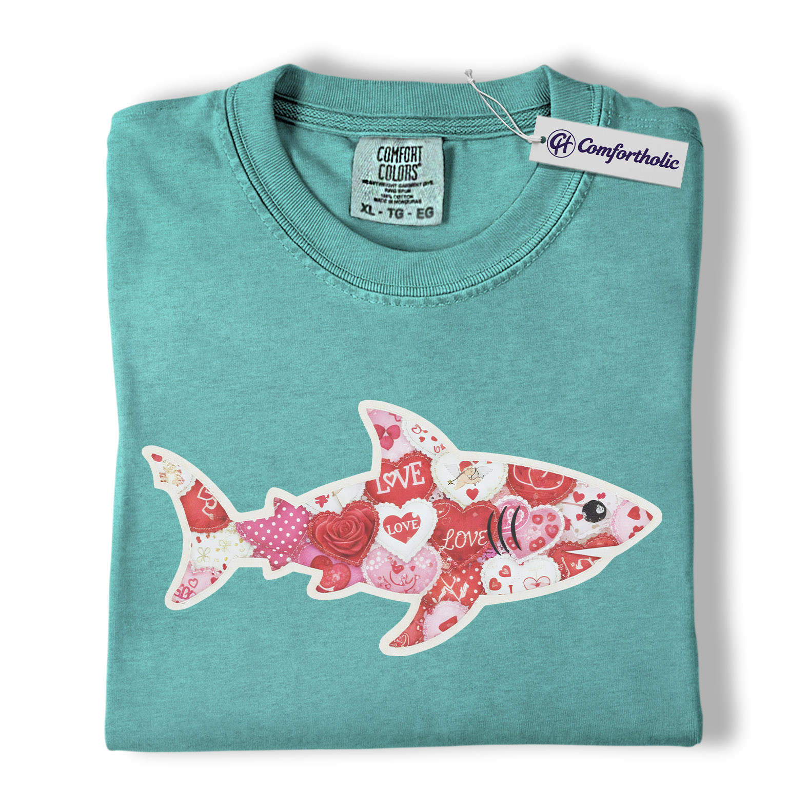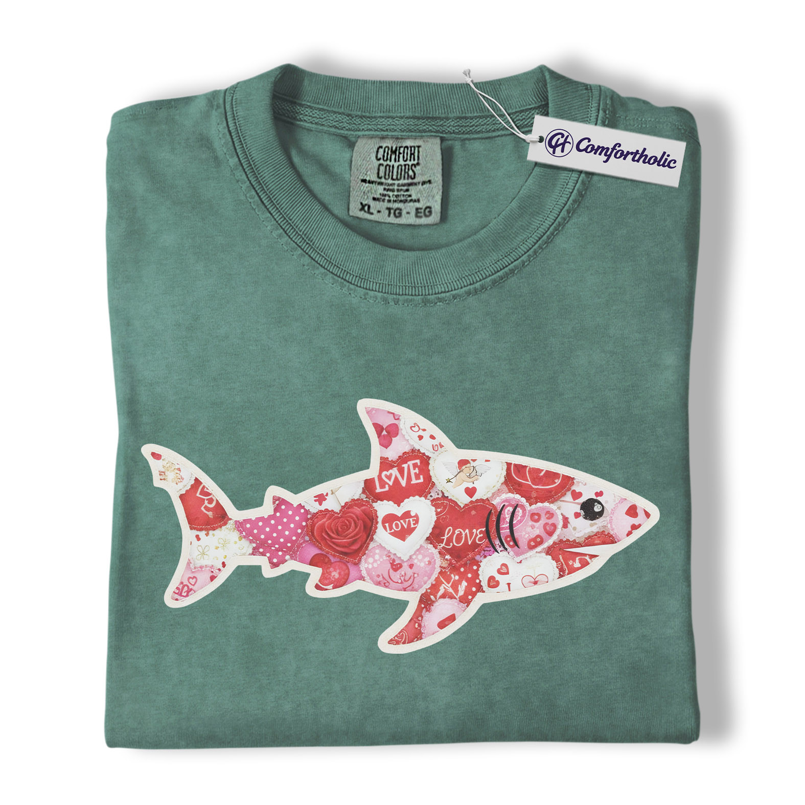 Shark Valentine Shirt, Heart Collage Sea Animal Graphic Tee, Shark Lover T-Shirt, Valentine’s Day Gift for Ocean Lovers, Comfort Colors Shirt