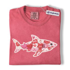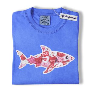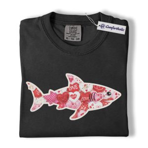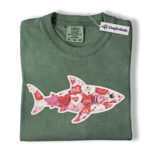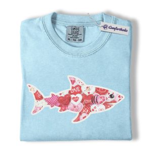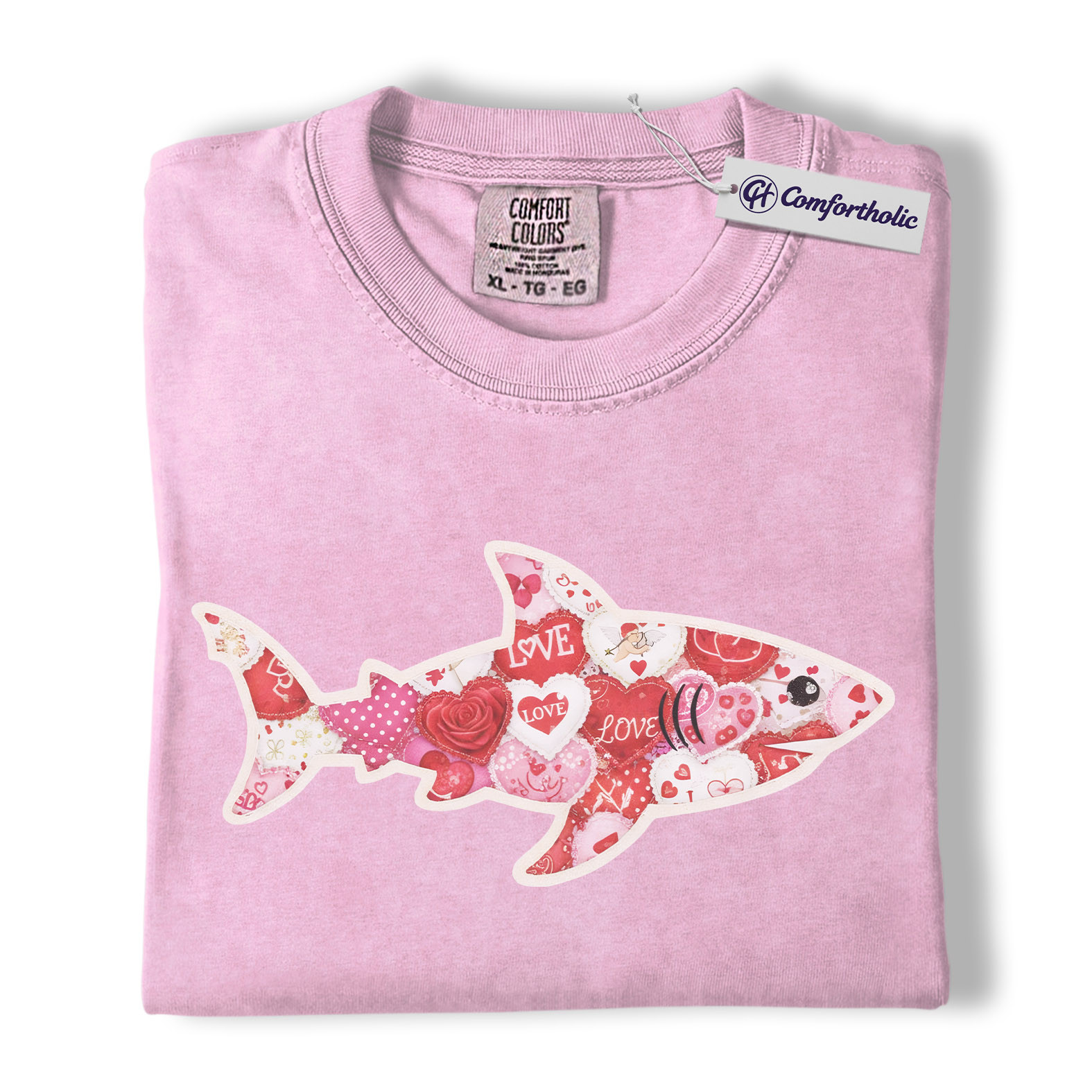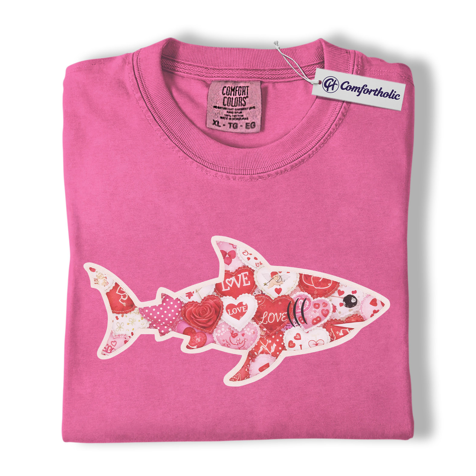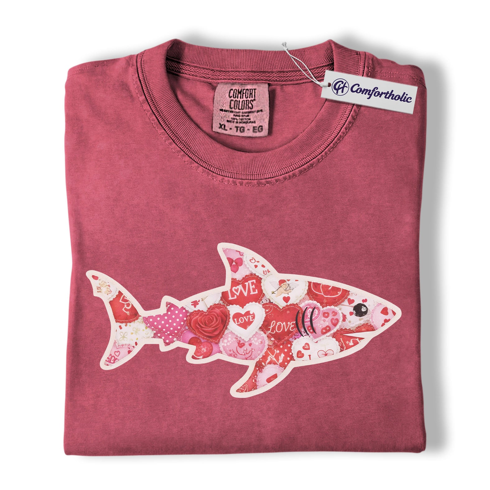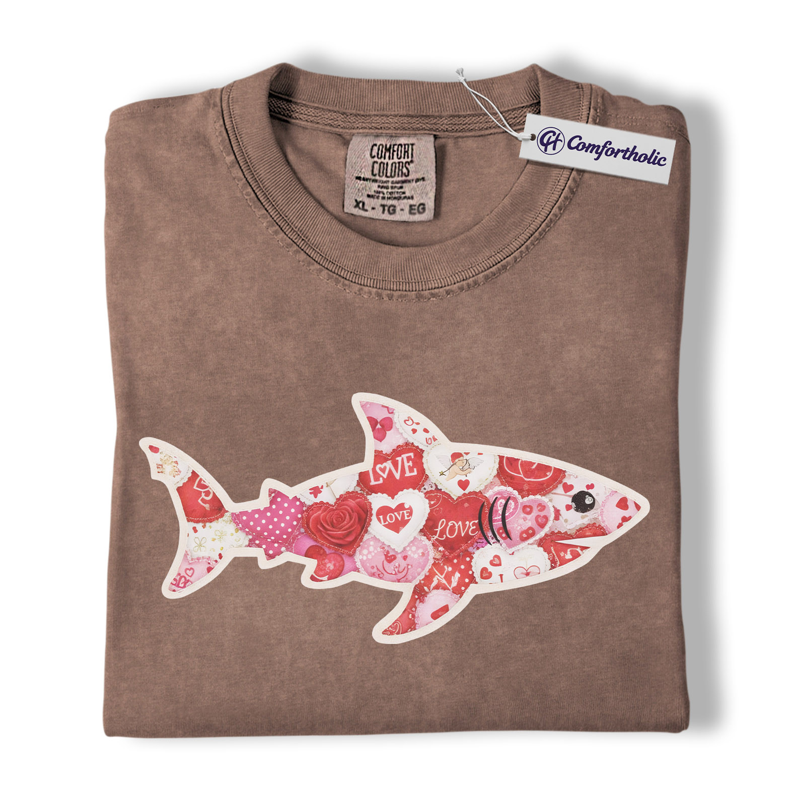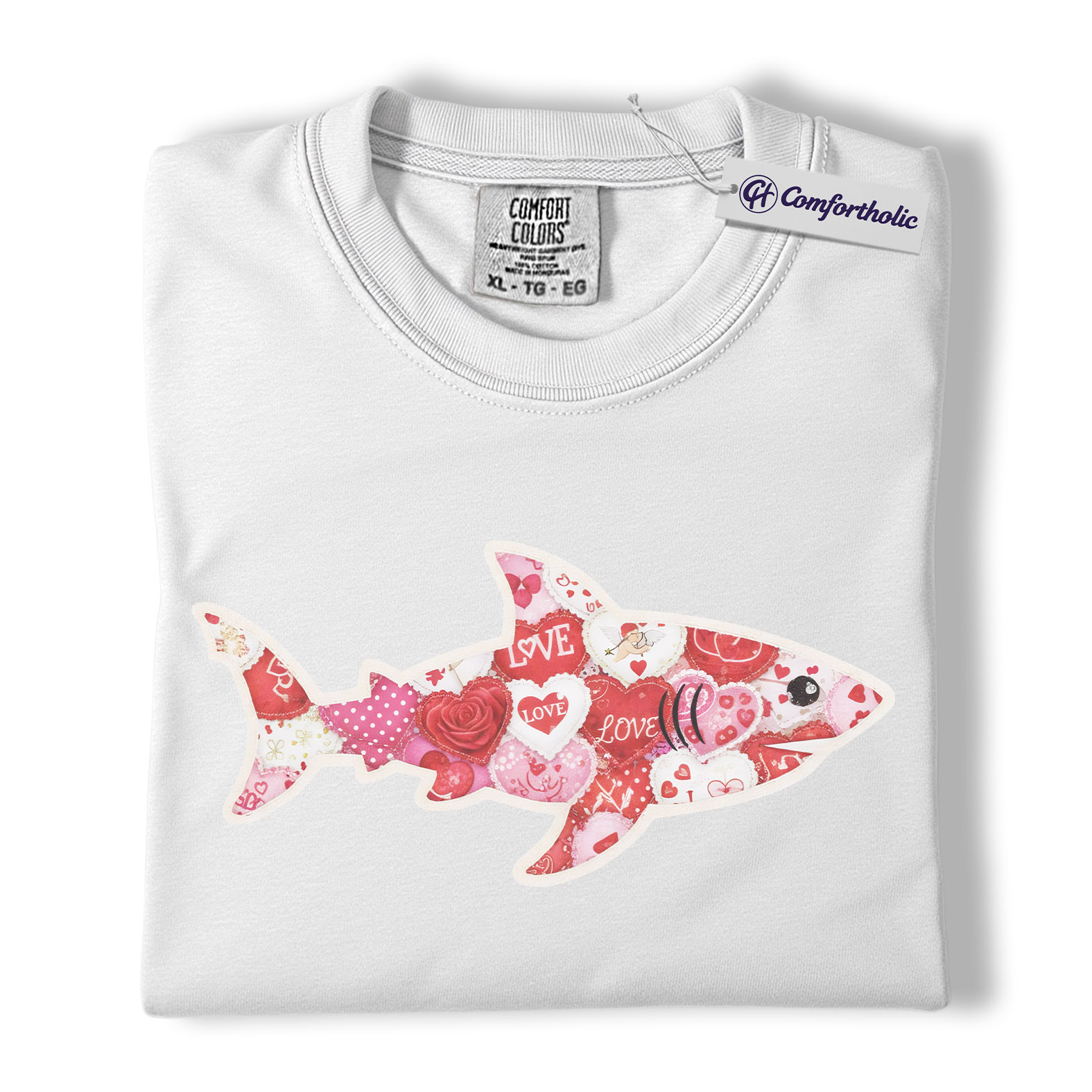Shark Valentine Shirt, Heart Collage Sea Animal Graphic Tee, Shark Lover T-Shirt, Valentine’s Day Gift for Ocean Lovers, Comfort Colors Shirt