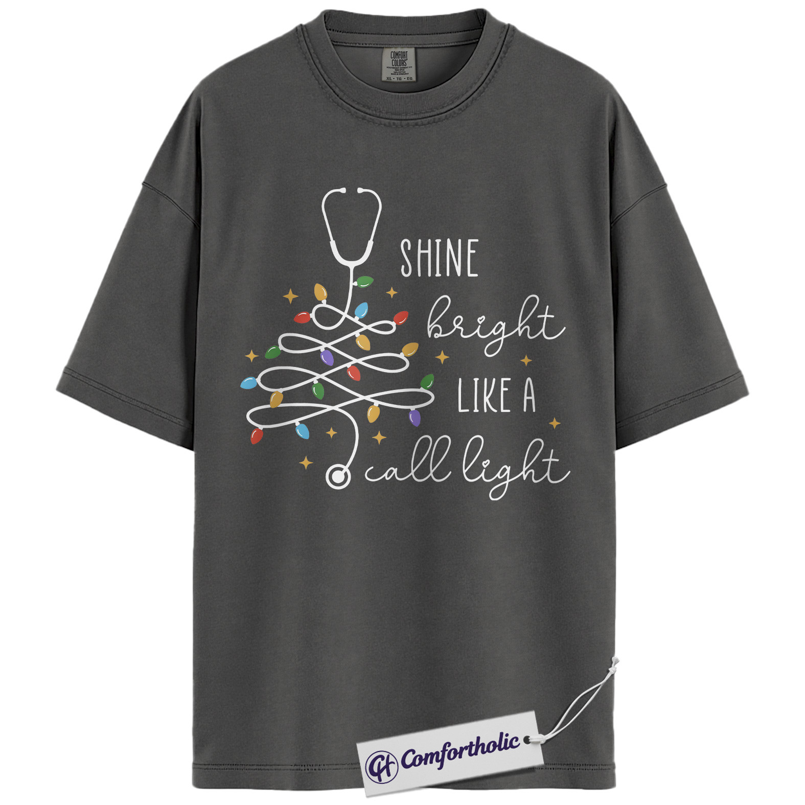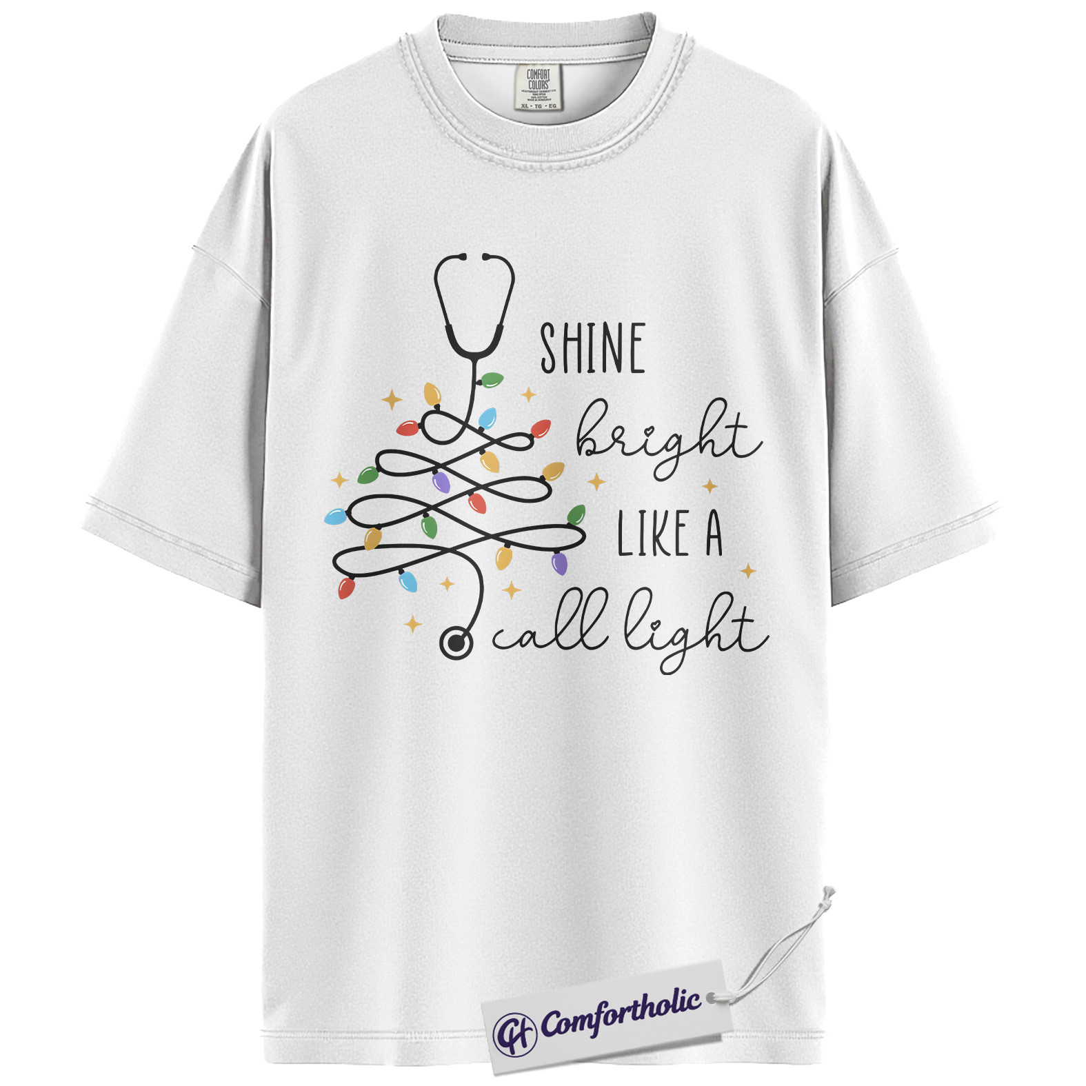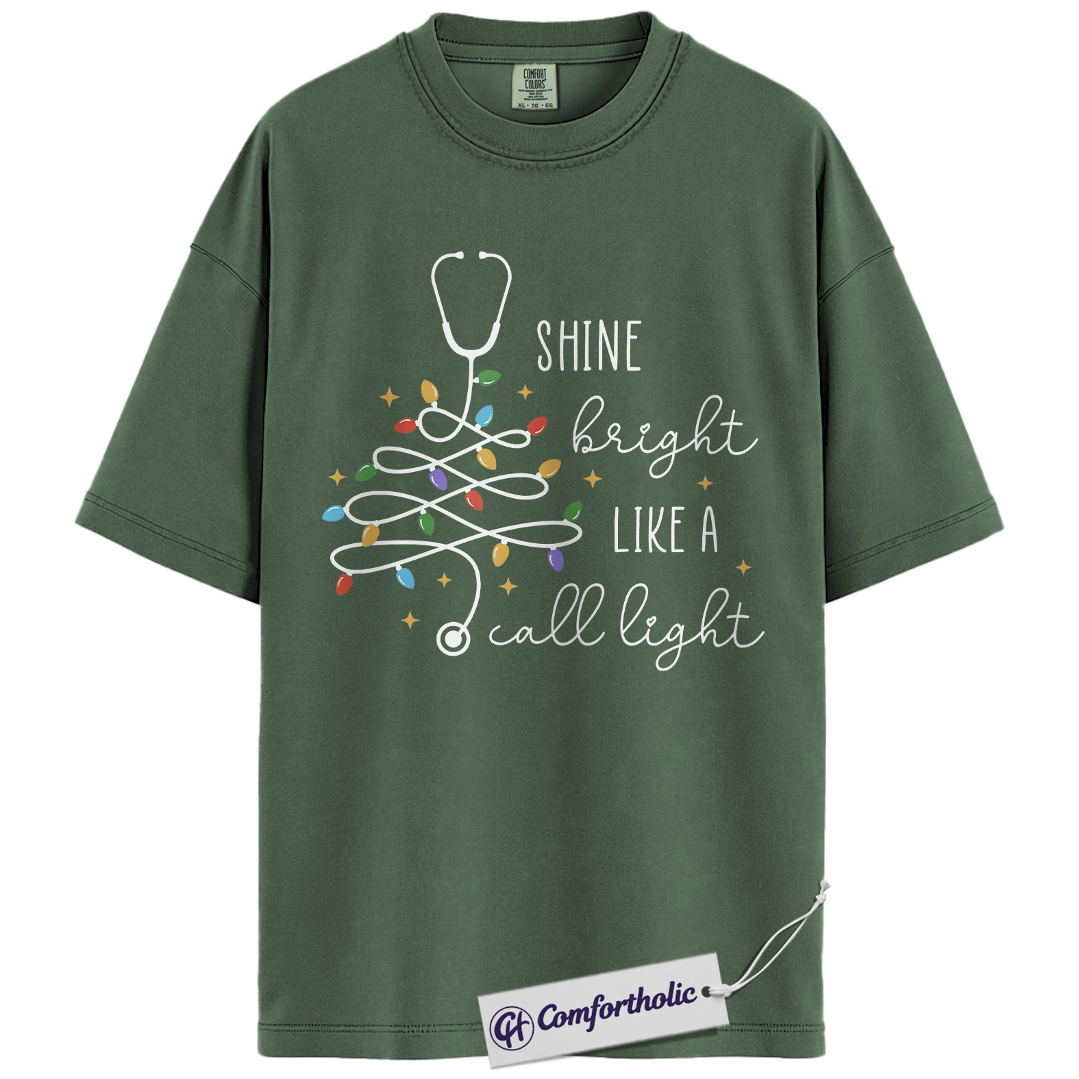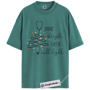 Shine Bright Like a Call Light Shirt, Funny Nurse Christmas T-Shirt, Cute Medical Worker Graphic Tee, Christmas Gift for Nurses and Healthcare Professionals, Christmas Comfort Colors Shirt