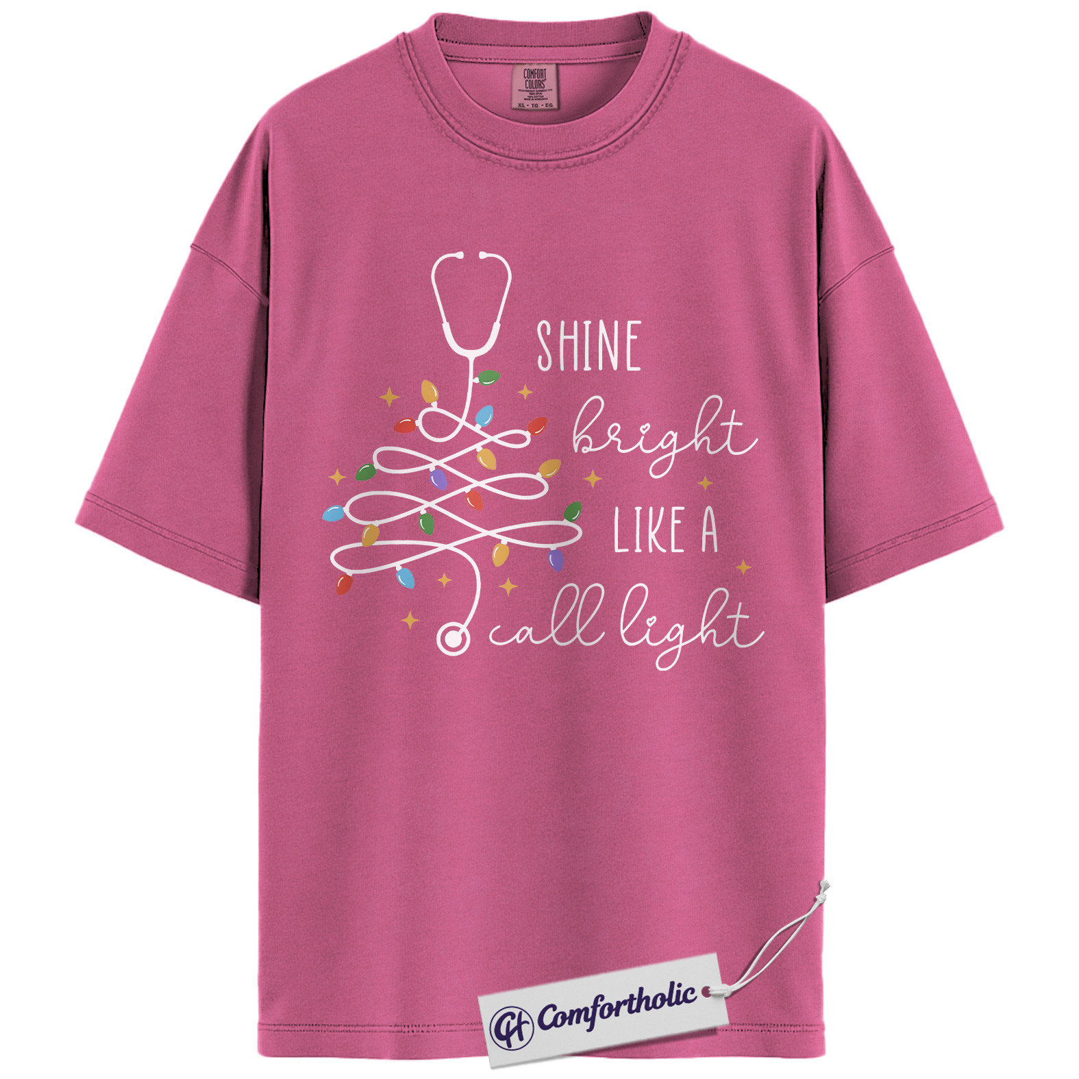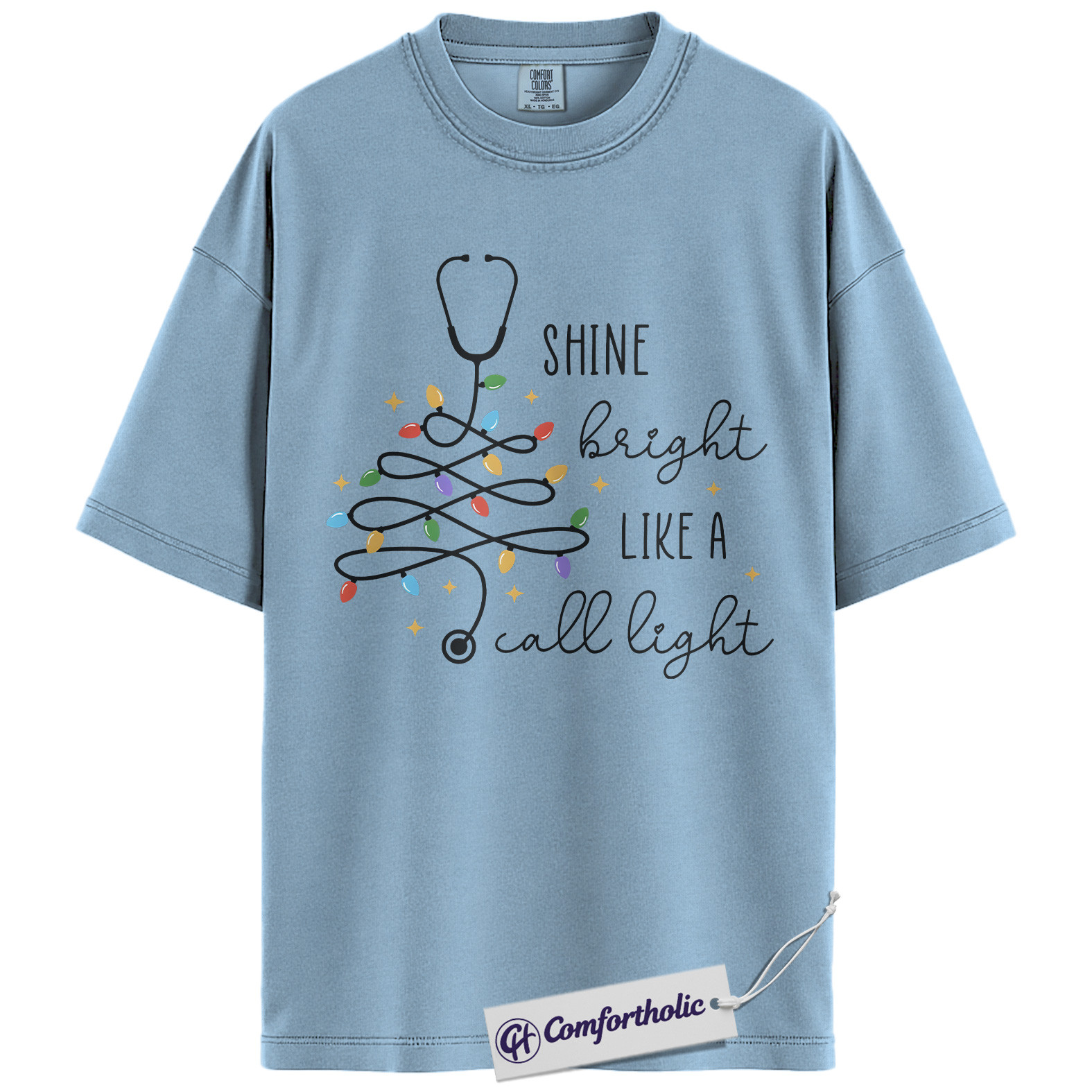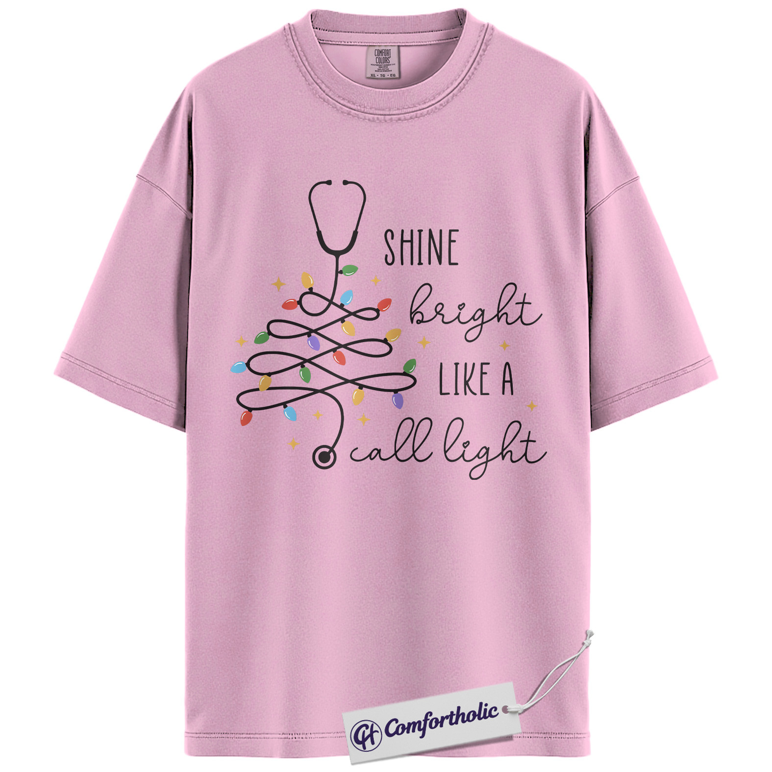 Shine Bright Like a Call Light Shirt, Funny Nurse Christmas T-Shirt, Cute Medical Worker Graphic Tee, Christmas Gift for Nurses and Healthcare Professionals, Christmas Comfort Colors Shirt