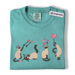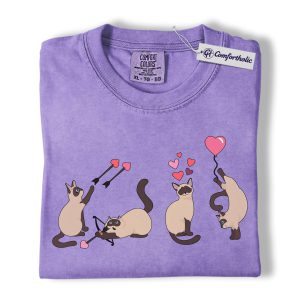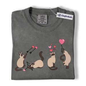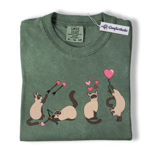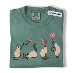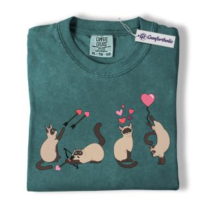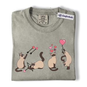 Siamese Cat Valentine Shirt, Cute Cupid Siamese Cat Graphic T-Shirt, Love Illustration Tee, Gift for Cat Lovers, Comfort Colors Shirt
