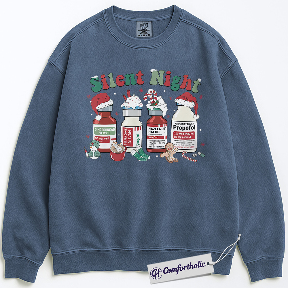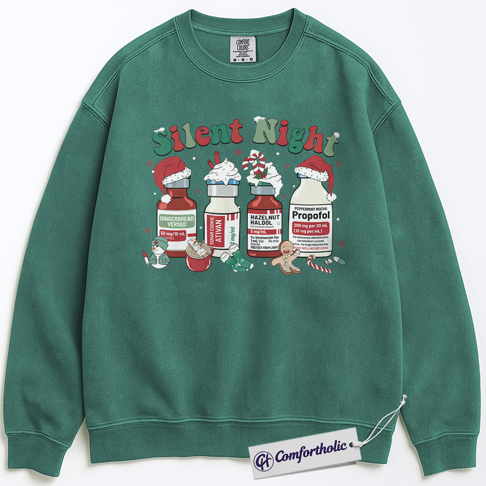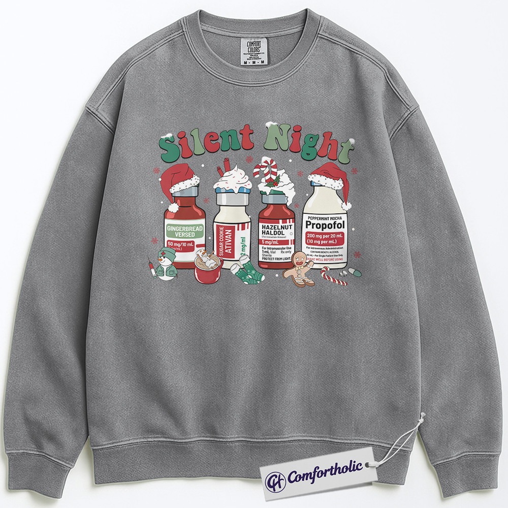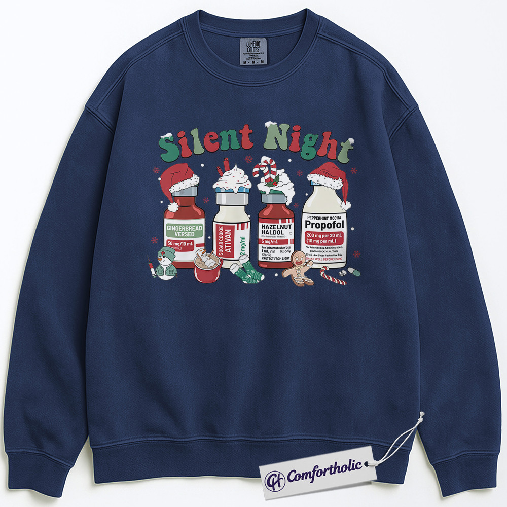 Silent Night Nurse Sweatshirt, Propofol Christmas Crewneck, Funny Medical Holiday Pullover, Festive Gift for Healthcare Workers, Comfort Colors Sweatshirt
