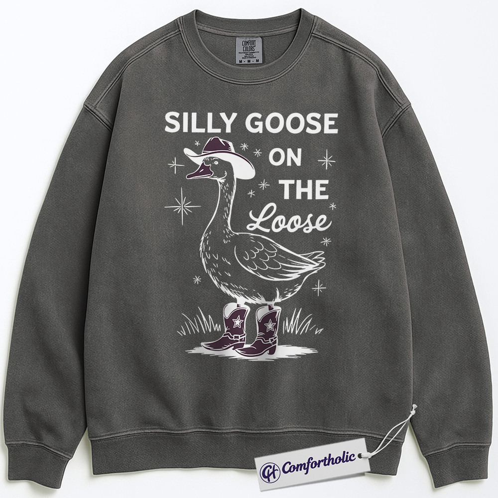 Silly Goose on the Loose Sweatshirt, Funny Cowboy Goose Graphic Pullover, Farm Animal Crewneck Sweatshirt, Western Humor Gift, Comfort Colors Sweatshirt