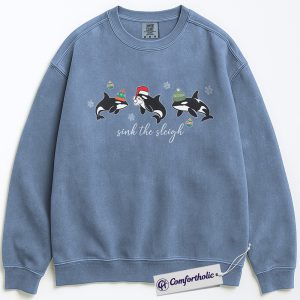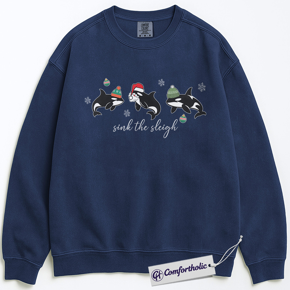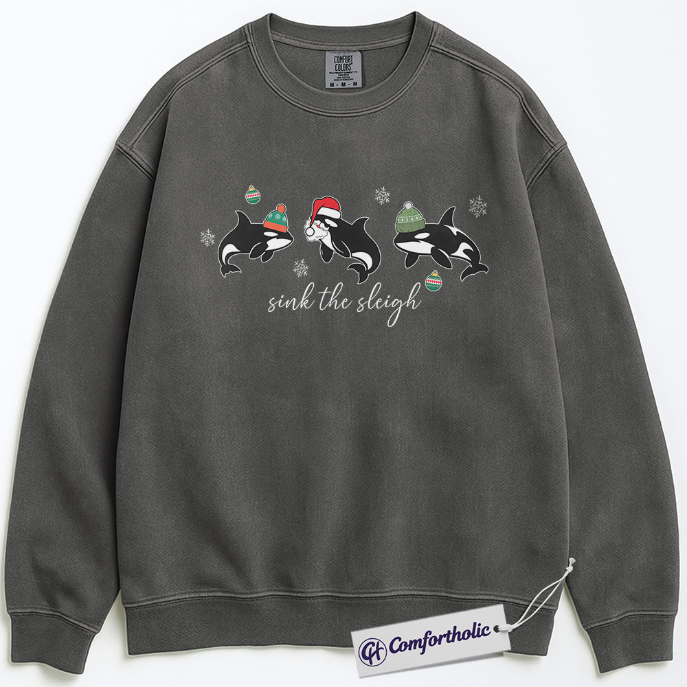 Sink the Sleigh Sweatshirt, Funny Orca Whale Christmas Pullover, Cute Ocean Animal Holiday Graphic Sweatshirt, Marine Life Christmas Gift for Ocean Lovers, Christmas Comfort Colors Sweatshirt
