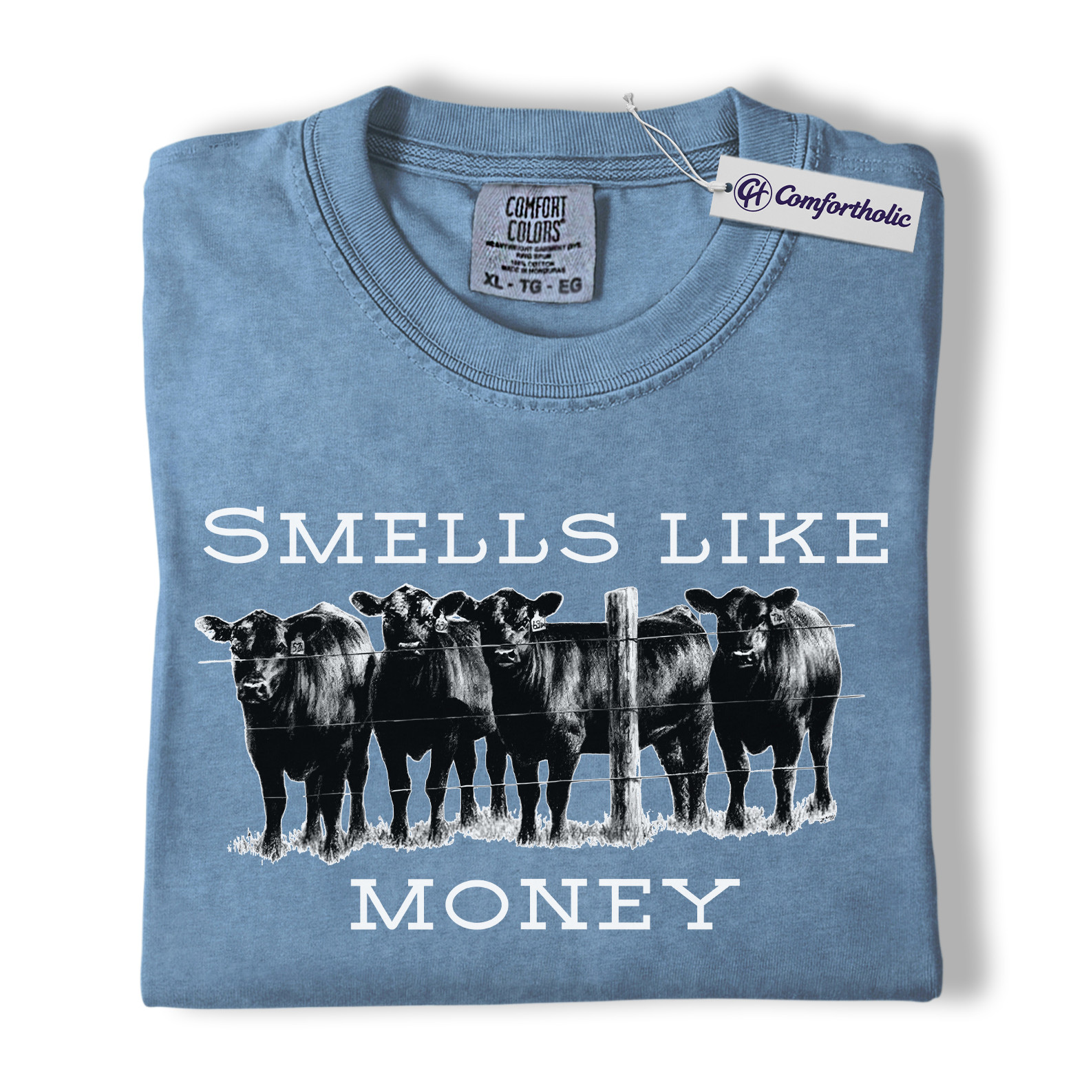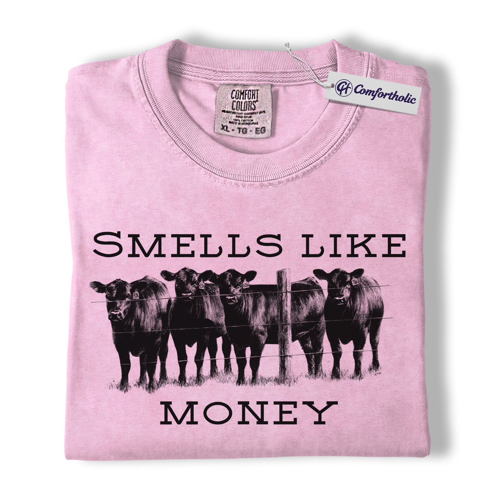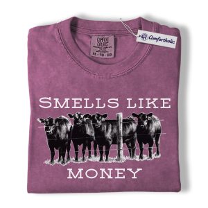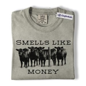 Smells Like Money Cow Shirt, Western Cattle Rancher Graphic Tee, Funny Farm Cow Lover T-Shirt, Livestock Gift for Country Girls & Beef Producers, Comfort Colors Shirt