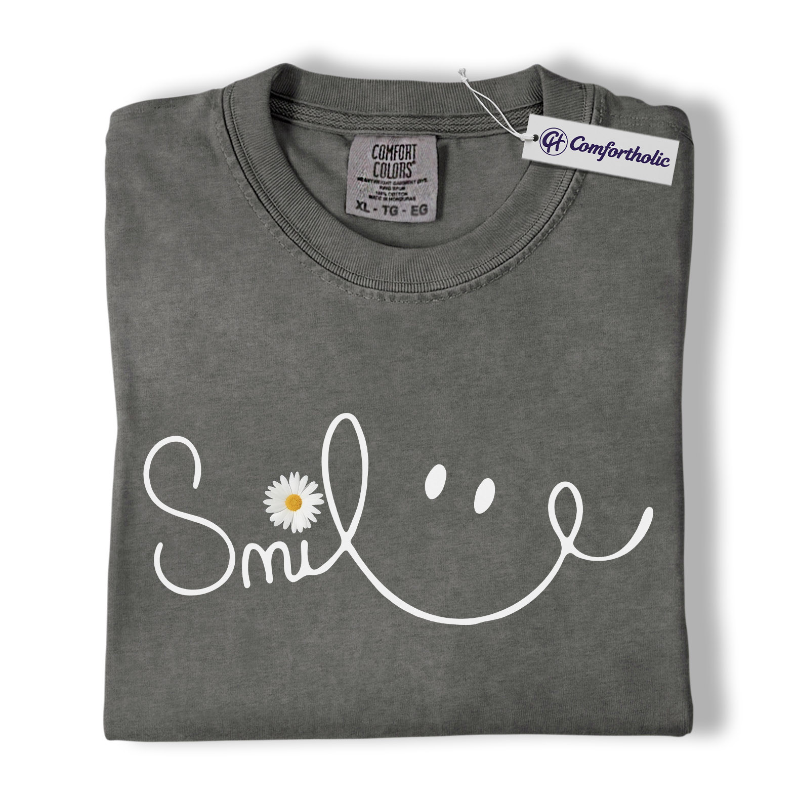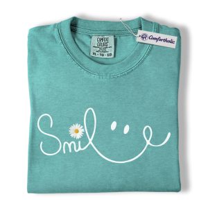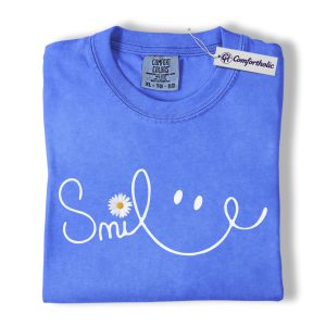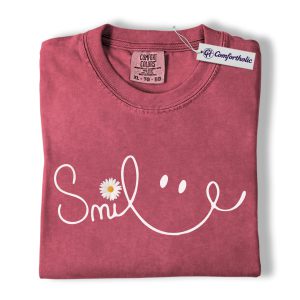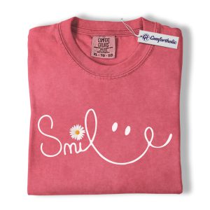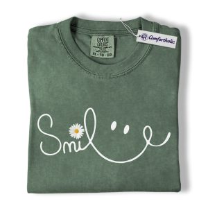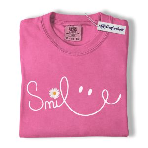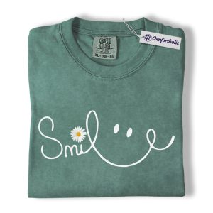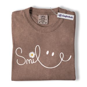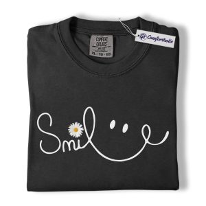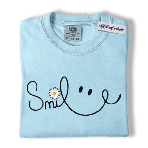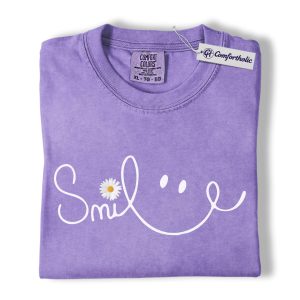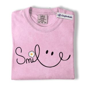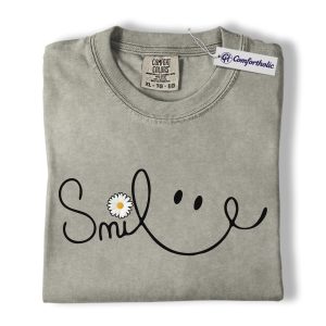 Smile Daisy Shirt, Minimal Happy Face Graphic Tee, Cute Positive Quote T-Shirt, Funny Gift for Women, Comfort Colors Shirt