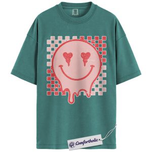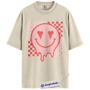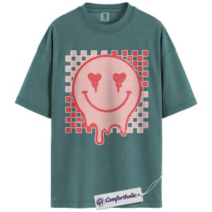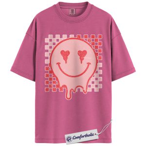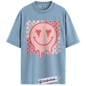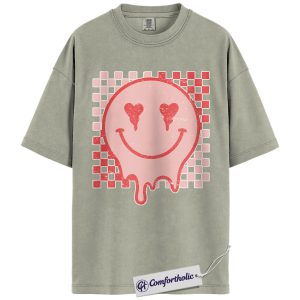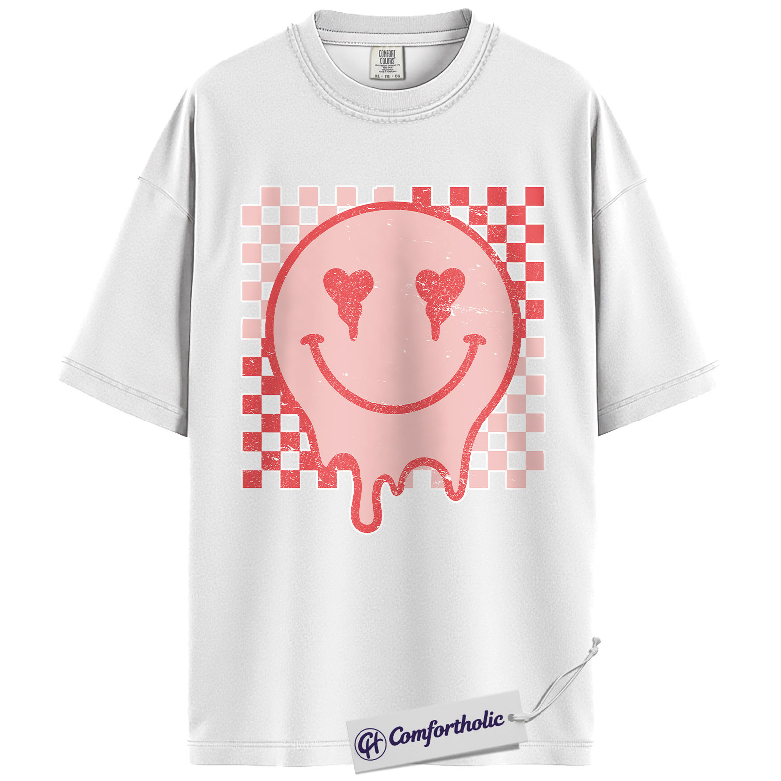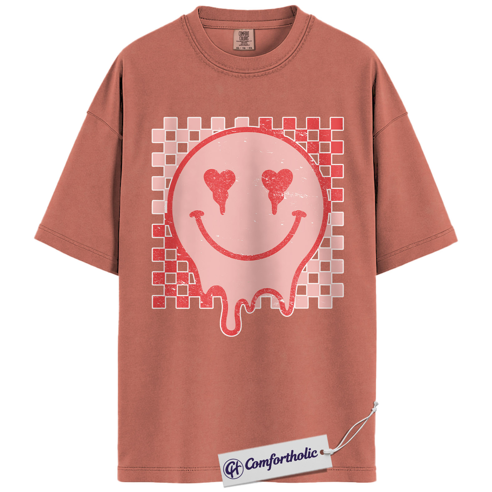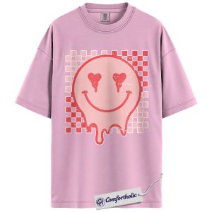 Smiley Heart Shirt, Valentine Smiley Graphic Tee, Cute Retro Aesthetic T-Shirt, Valentine’s Day Outfit & Gift for Women, Comfort Colors Shirt