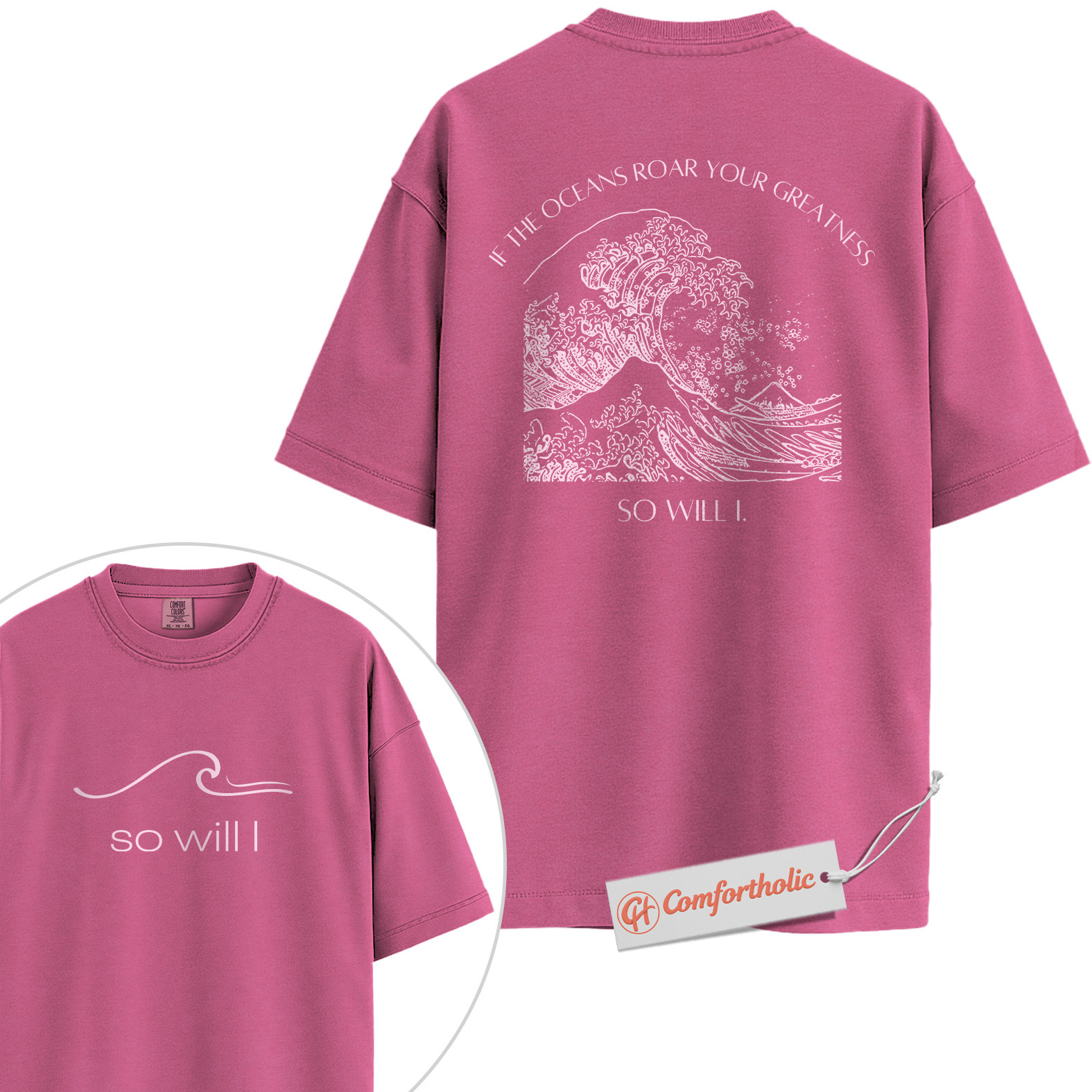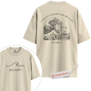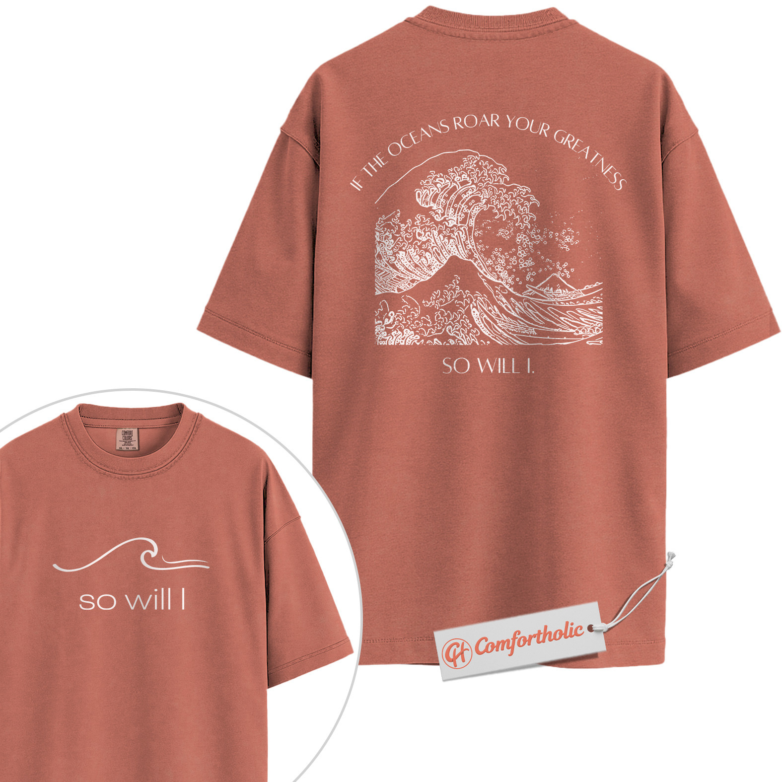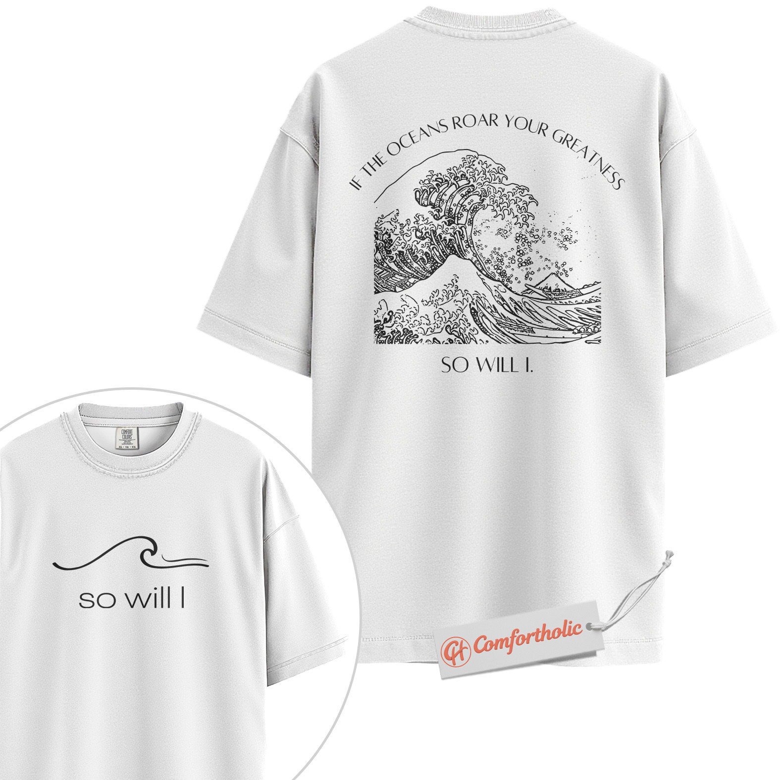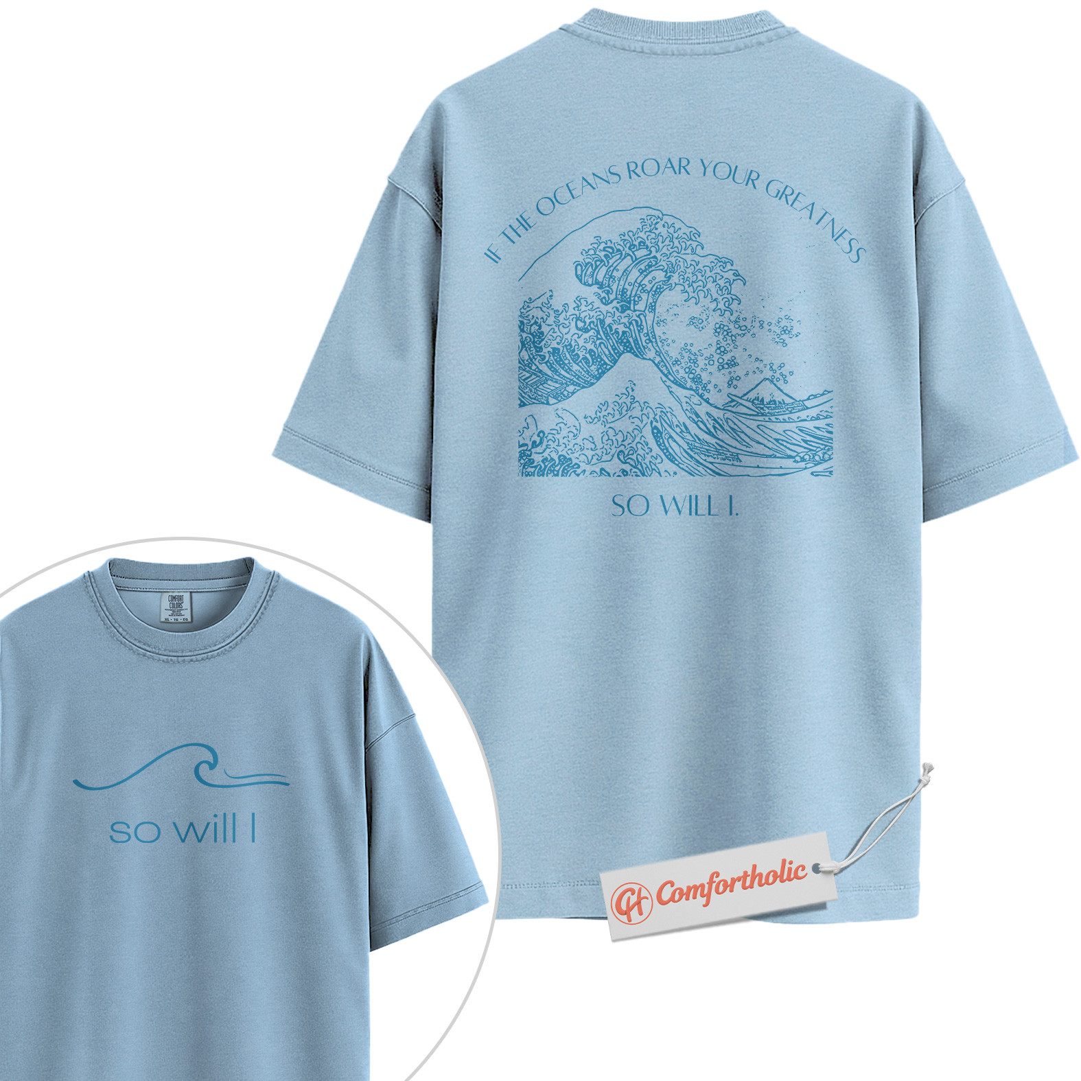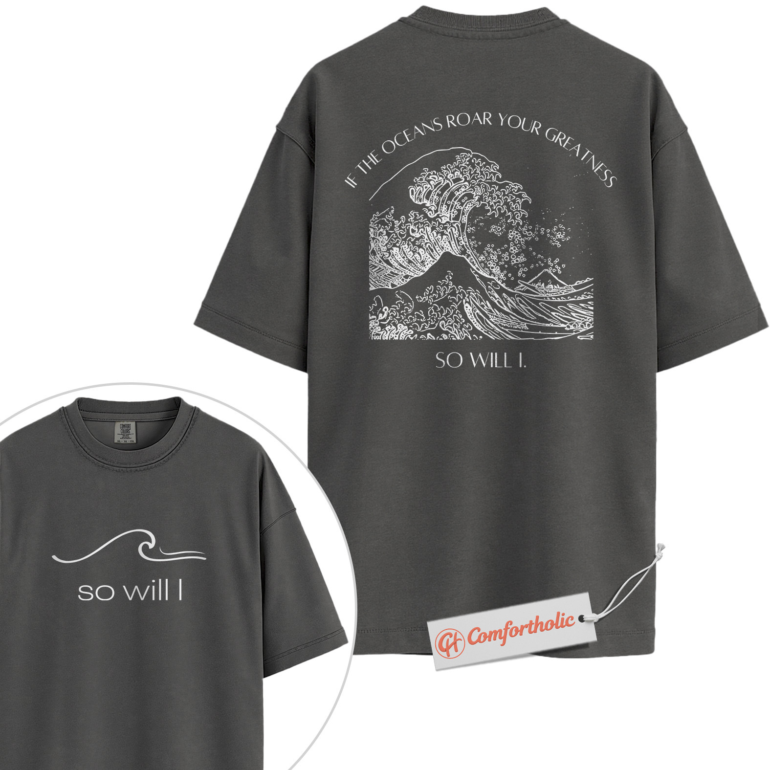 So Will I Shirt, Ocean Wave Christian Shirt, Worship Song Quote Shirt, Faith-Based Shirt, Bible Verse Shirt, Comfort Colors T-Shirt 2-Sided