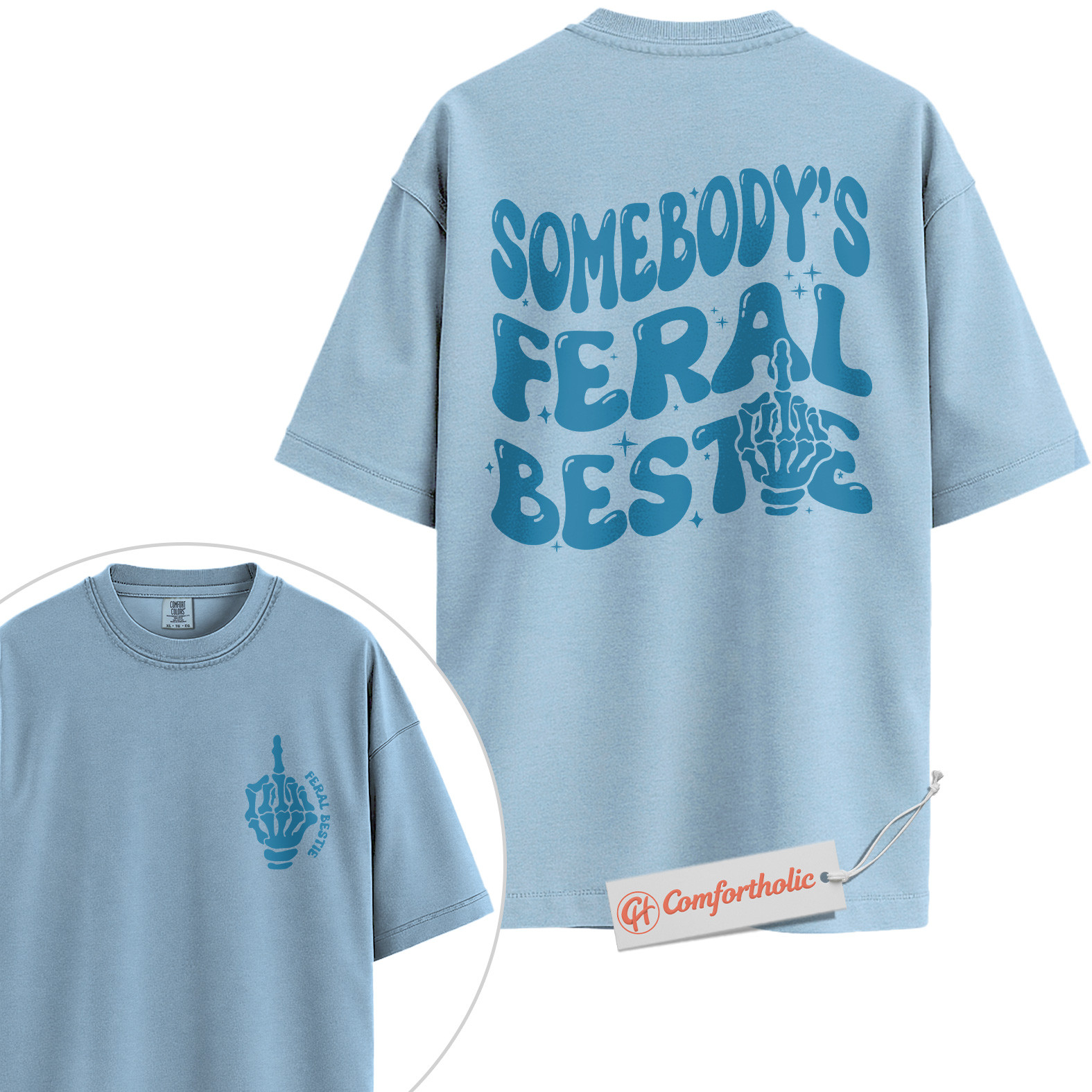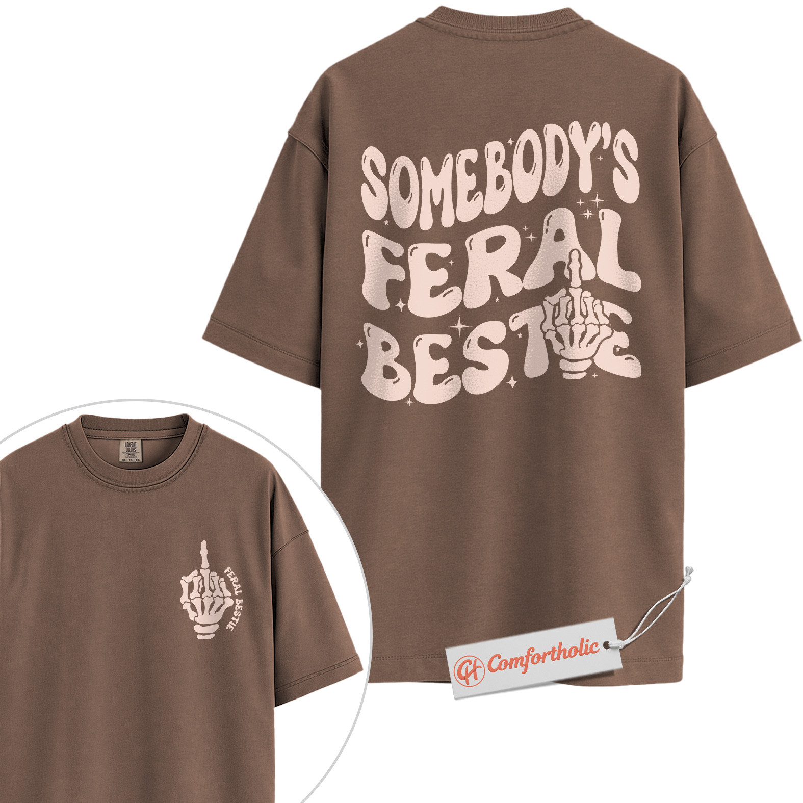 Somebody’s Feral Bestie Shirt, Funny Best Friend T-Shirt, Sassy Skeleton Middle Finger Tee, Bold Friendship Graphic Comfort Colors Shirt 2-Sided