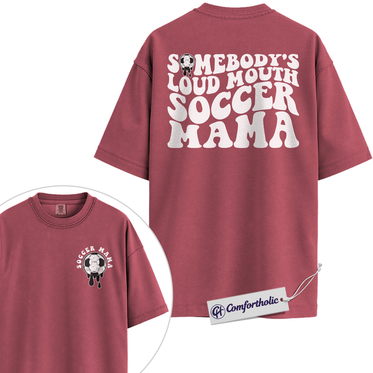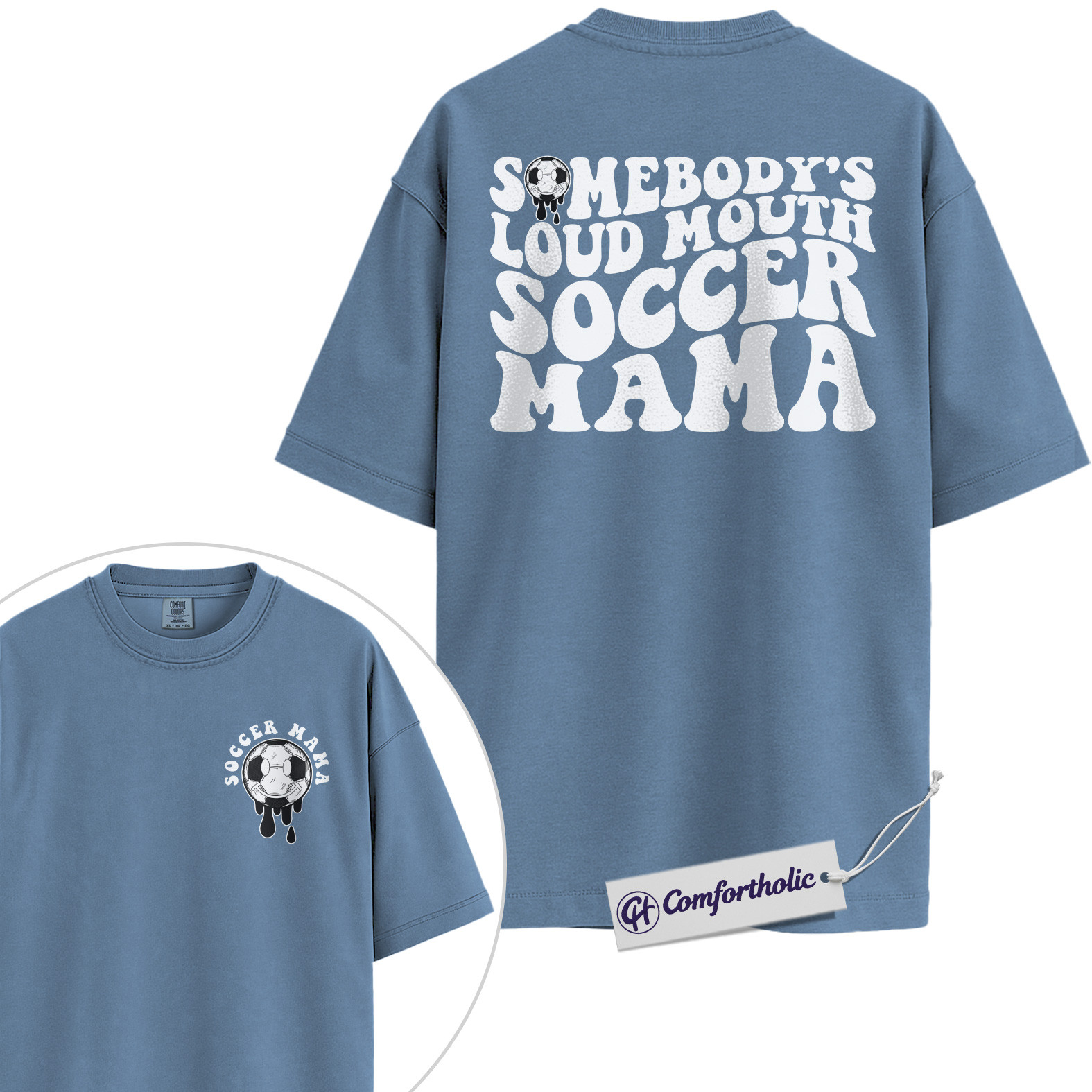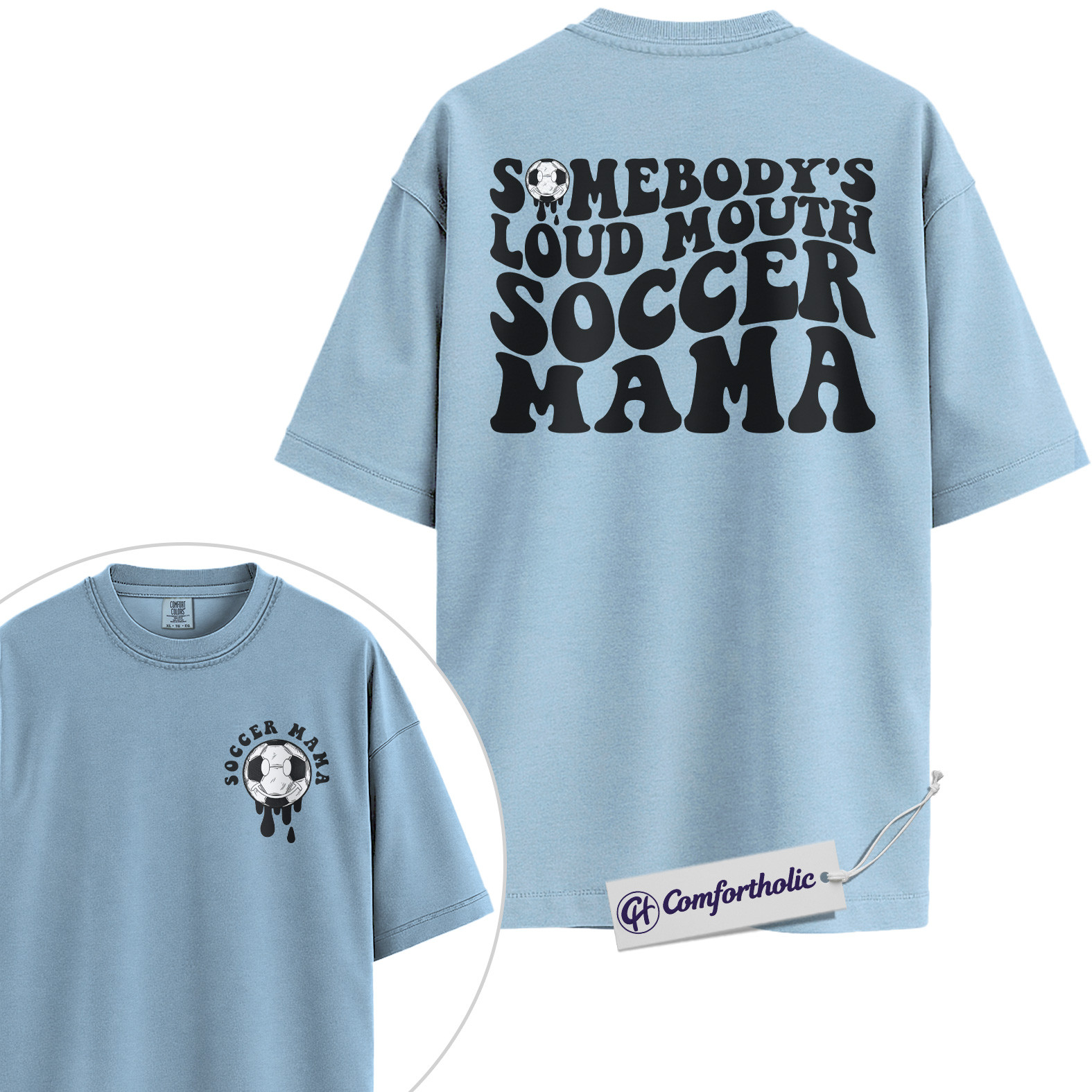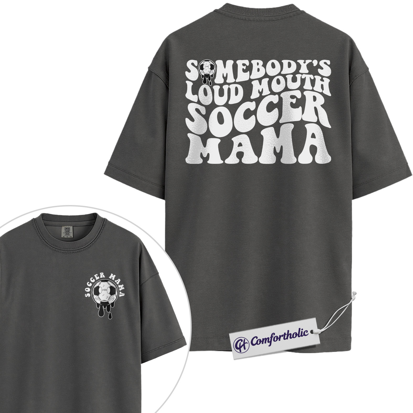 Somebody’s Loud Mouth Soccer Mama Graphic Tee, Soccer Mom Shirt, Sports Mom T-Shirt, Game Day Gift for Soccer Moms, Comfort Colors Shirt 2-Sided