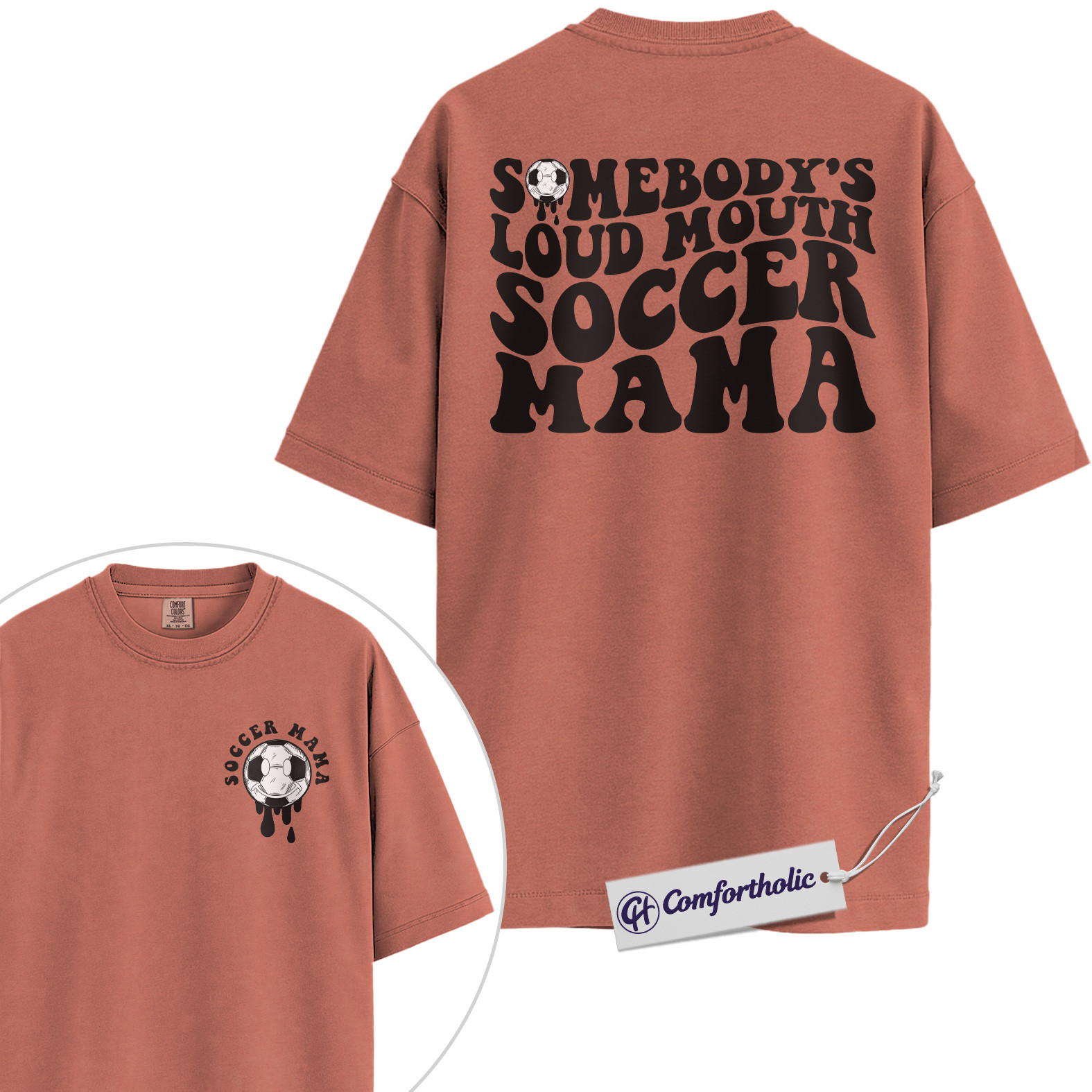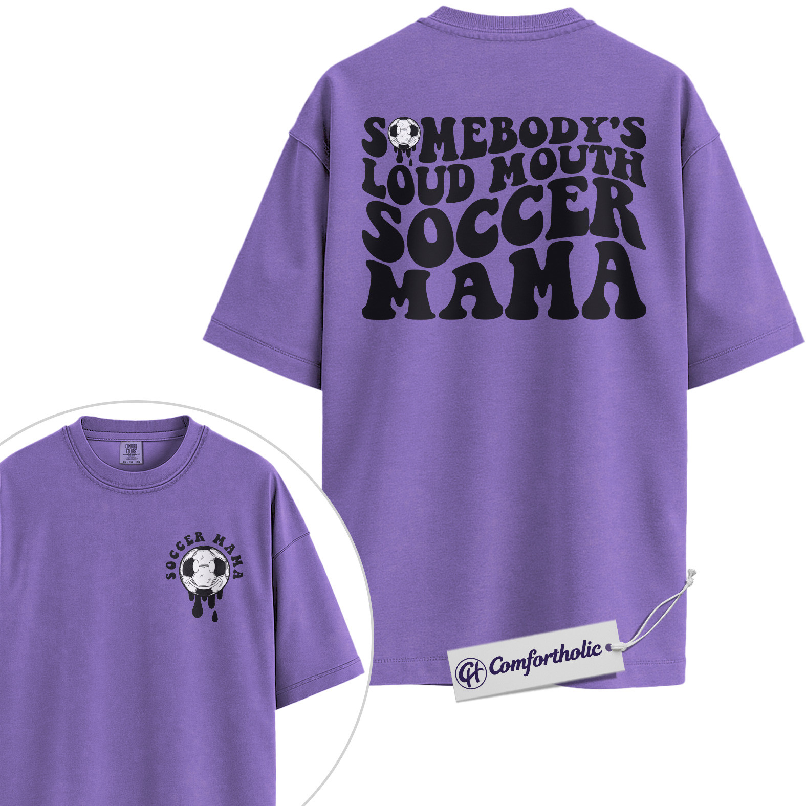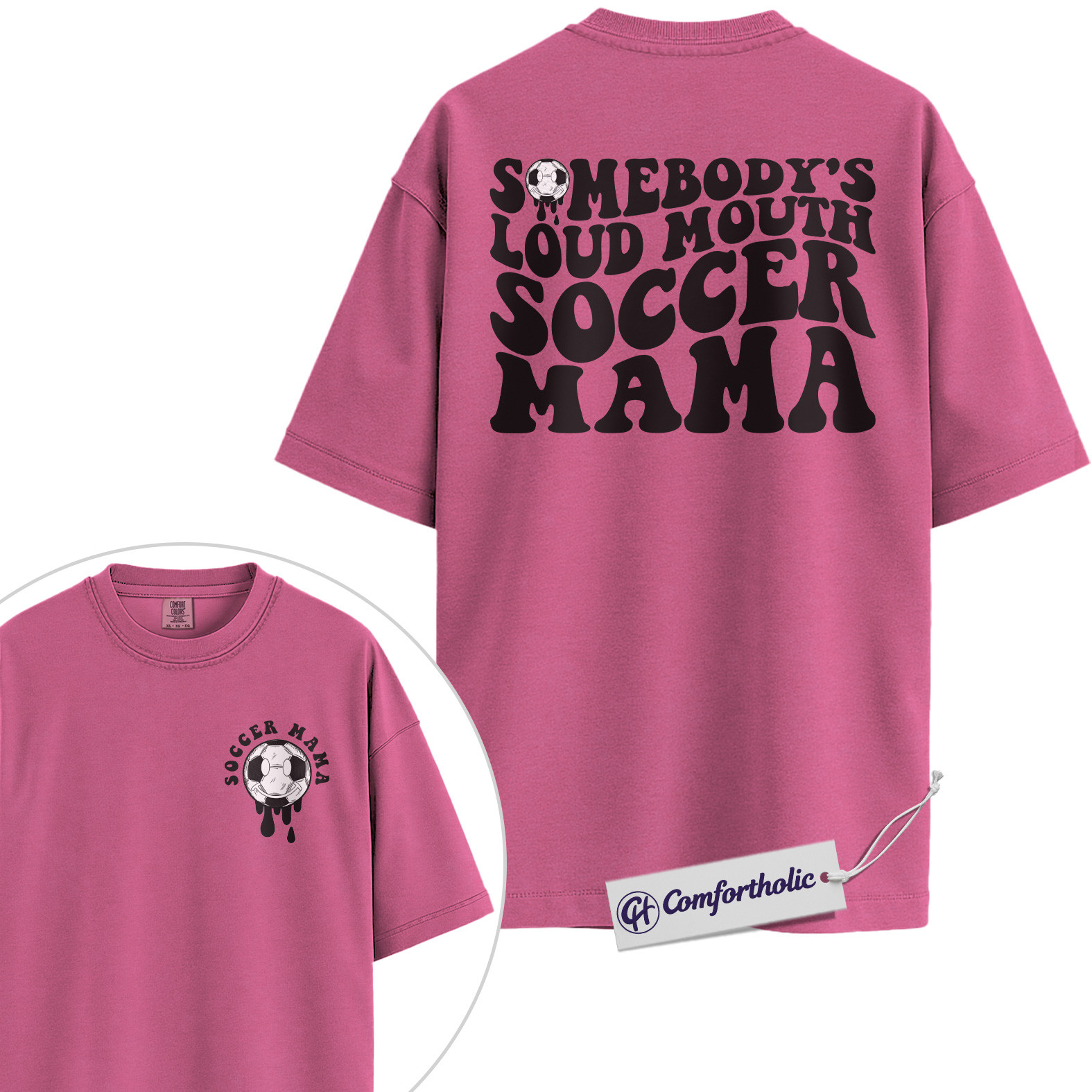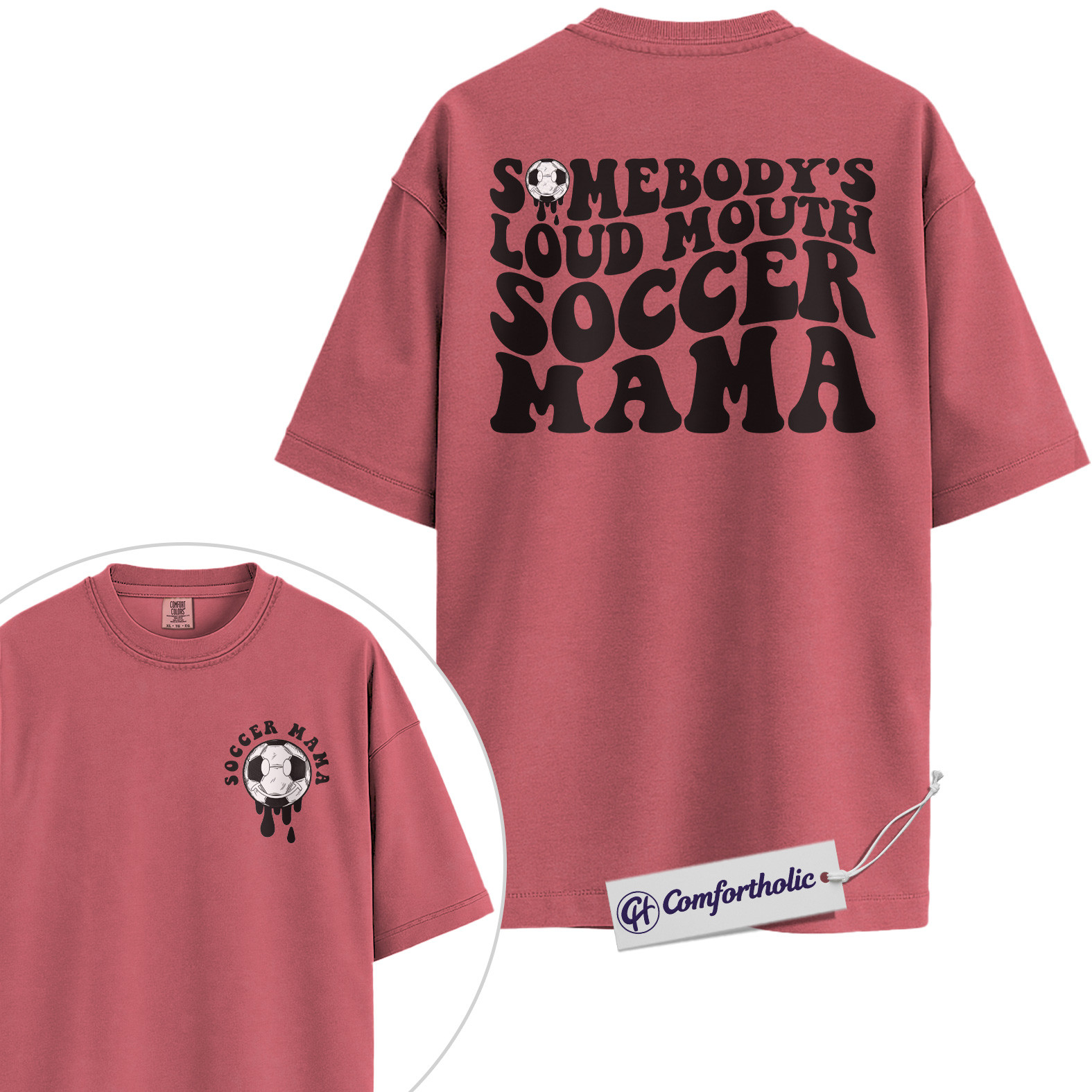 Somebody’s Loud Mouth Soccer Mama Graphic Tee, Soccer Mom Shirt, Sports Mom T-Shirt, Game Day Gift for Soccer Moms, Comfort Colors Shirt 2-Sided