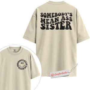 Somebody’s Mean Ass Sister Shirt, Funny Sibling Graphic Shirt, Savage Sister Quote Shirt, Retro Humor Comfort Colors T-Shirt 2-Sided