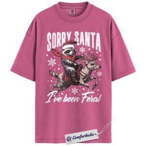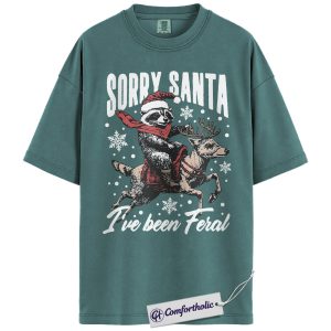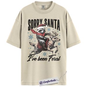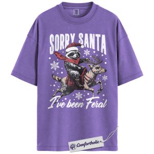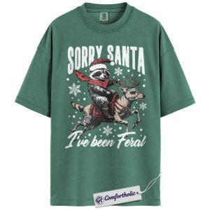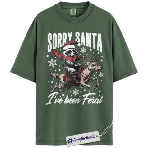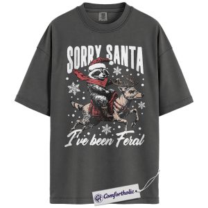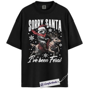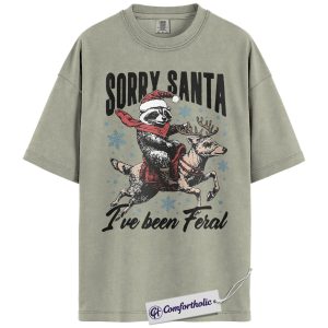 Sorry Santa I’ve Been Feral Shirt, Funny Christmas Raccoon T-Shirt, Holiday Humor Graphic Tee, Cute Animal Christmas Gift, Trash Panda Comfort Colors Shirt