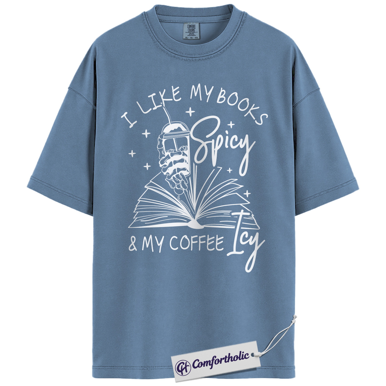 Spicy Books and Iced Coffee Shirt, Funny Book Lover Graphic T-Shirt, Cozy Reader Tee, Gift for Coffee Lovers and Bookworms, Comfort Colors Shirt