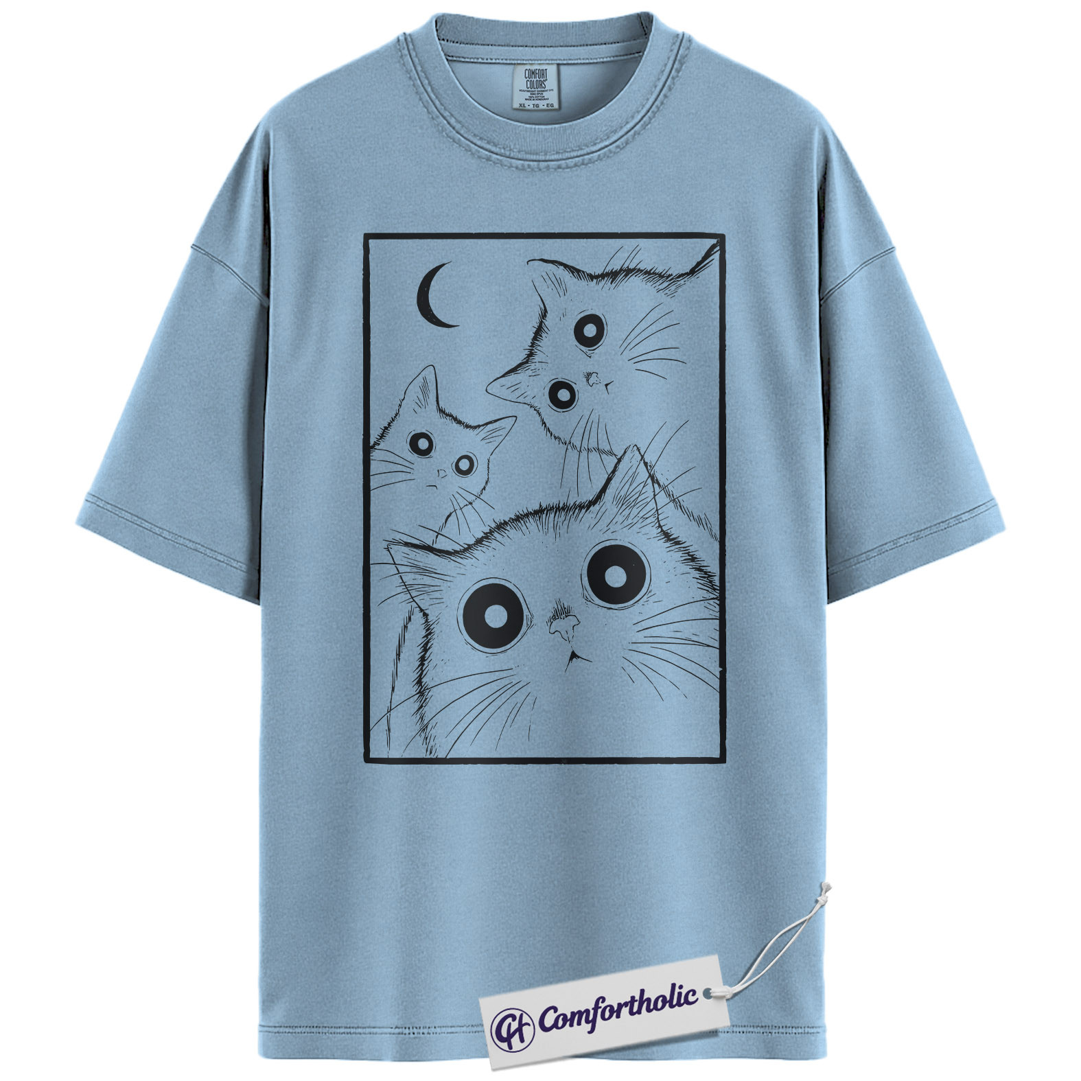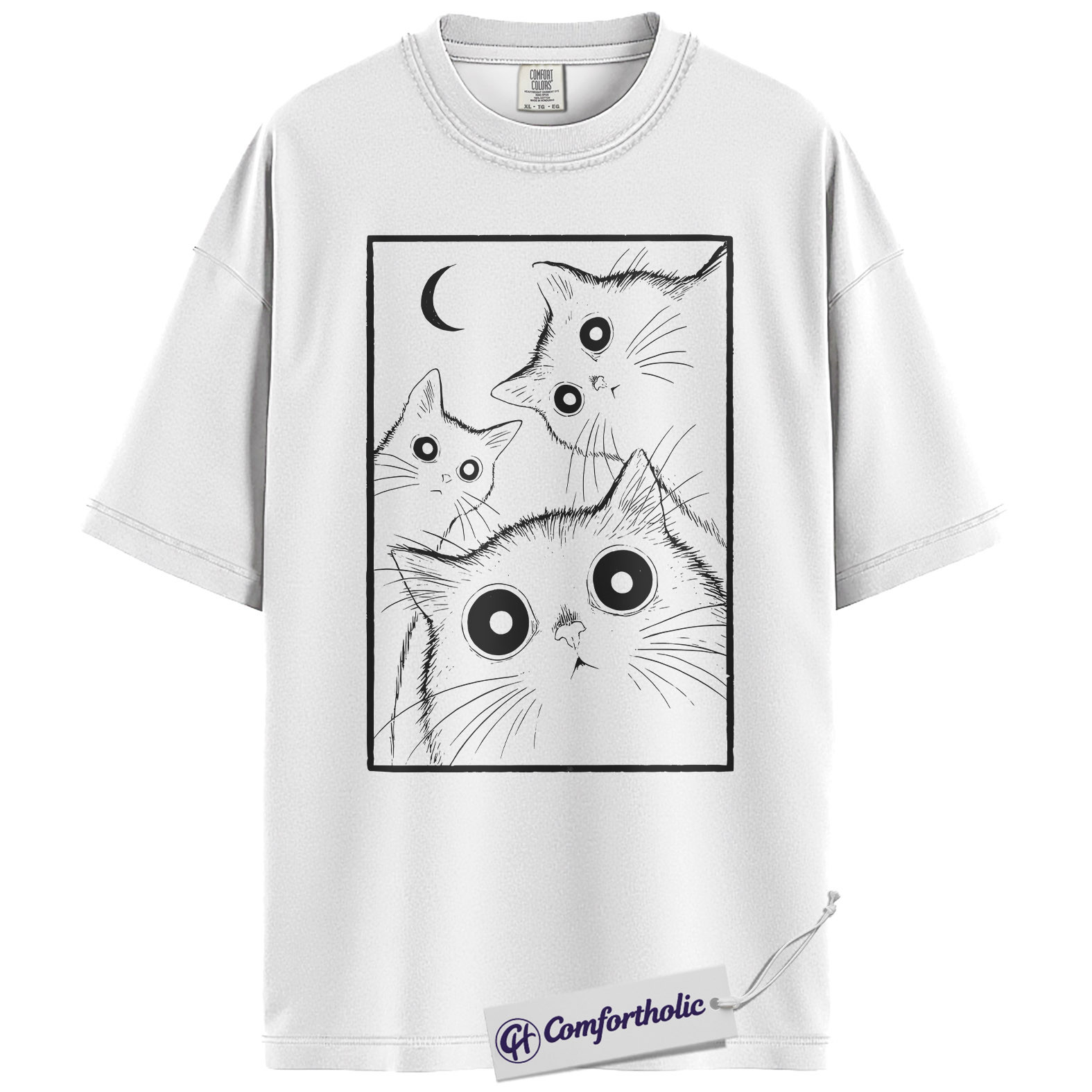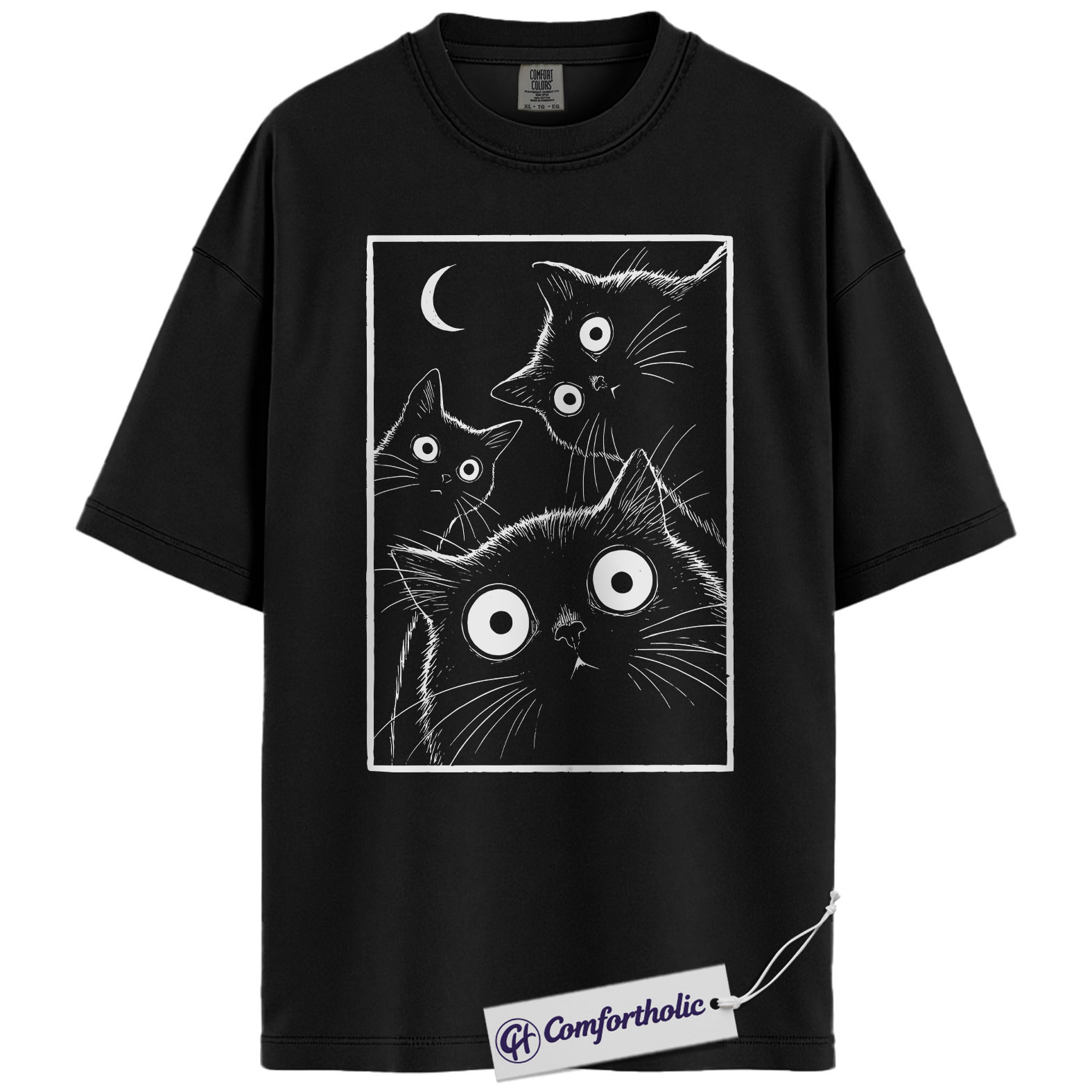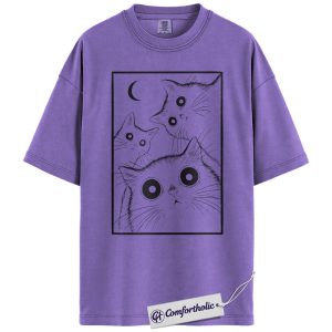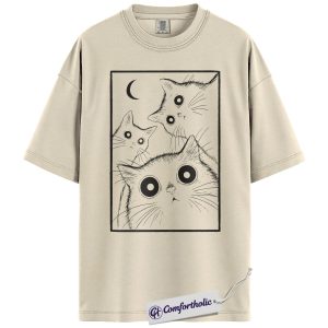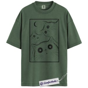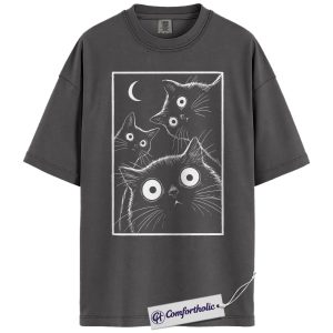 Spooky Black Cat Shirt, Moonlight Cat Graphic Tee, Goth Pet Lover T-Shirt, Gift for Cat Moms, Comfort Colors Shirt