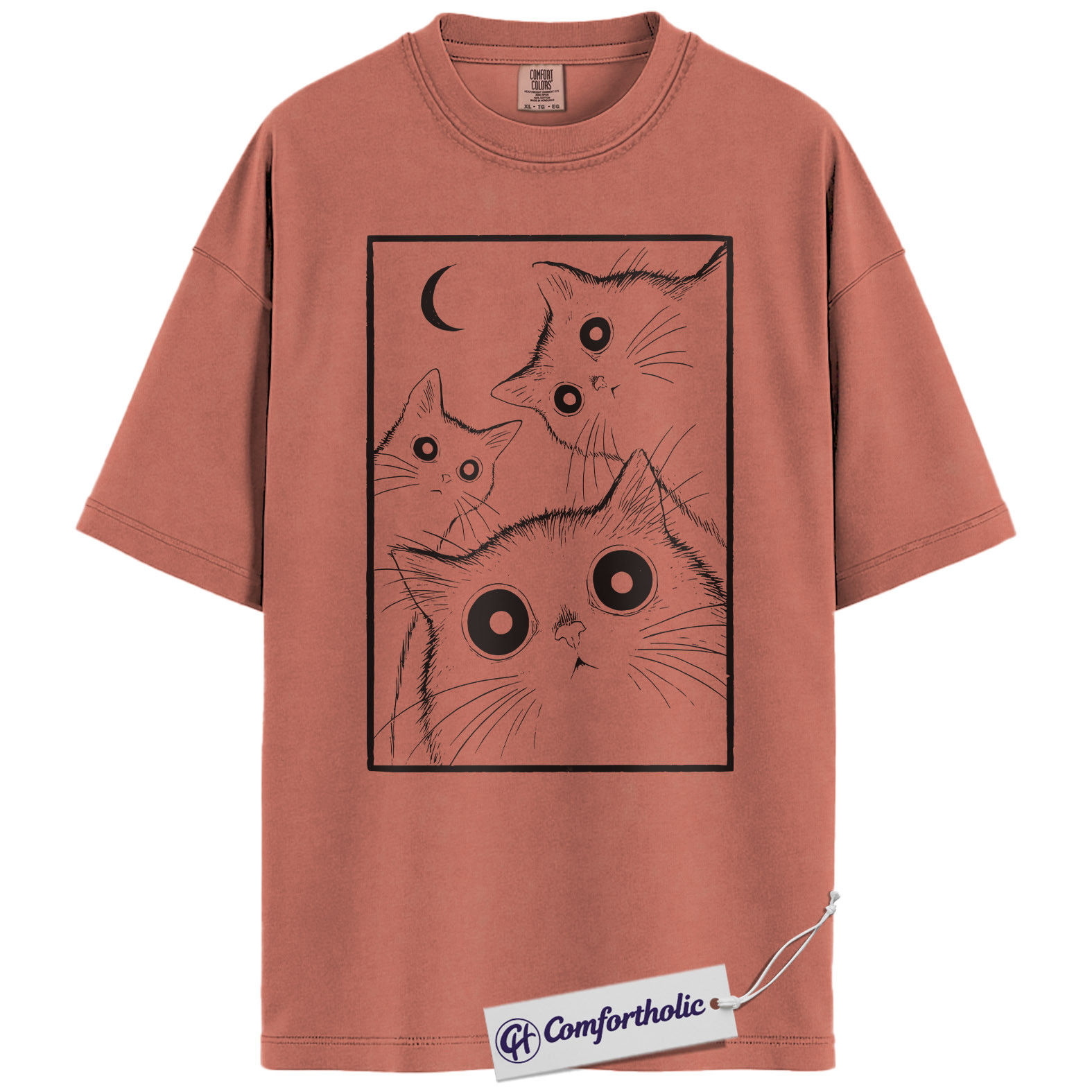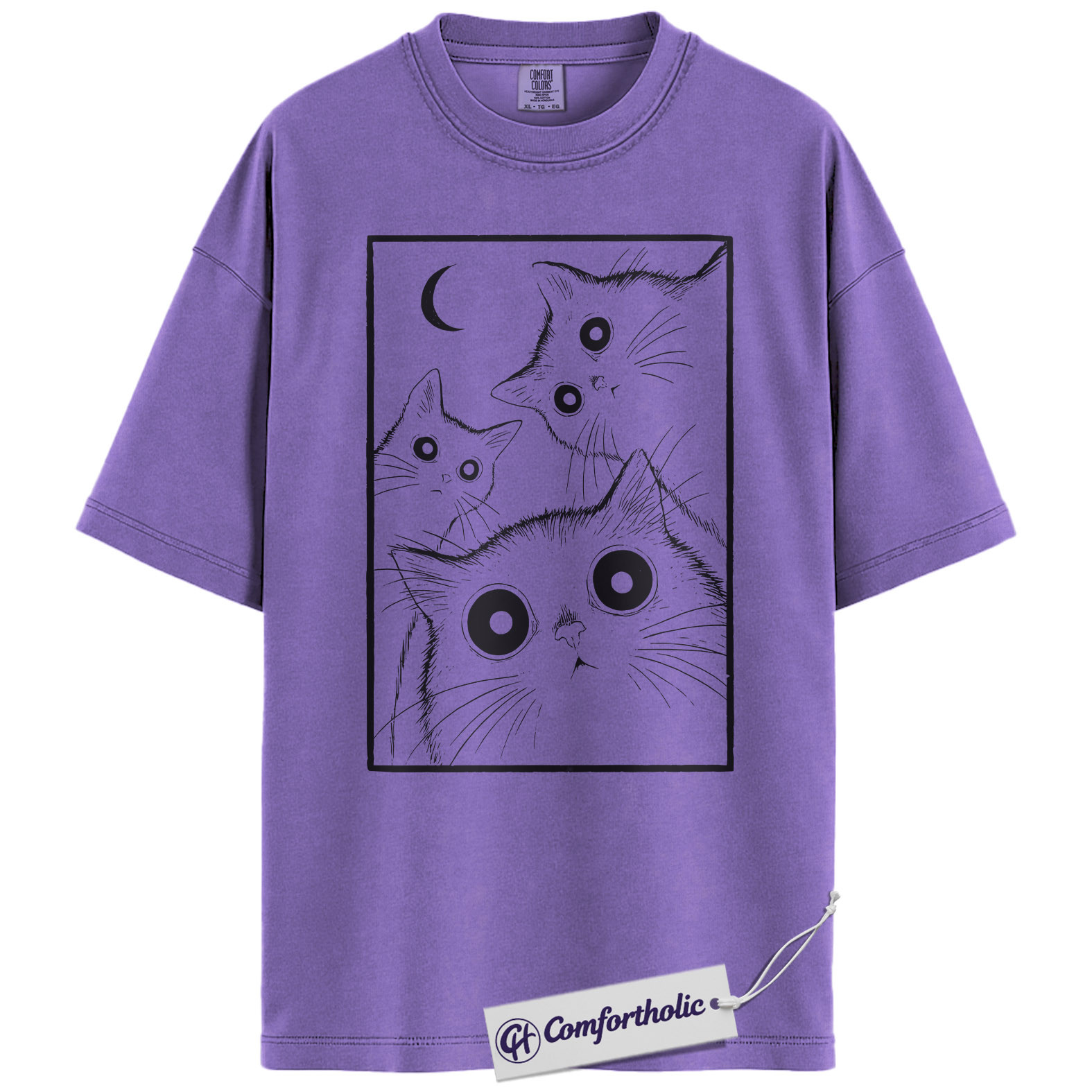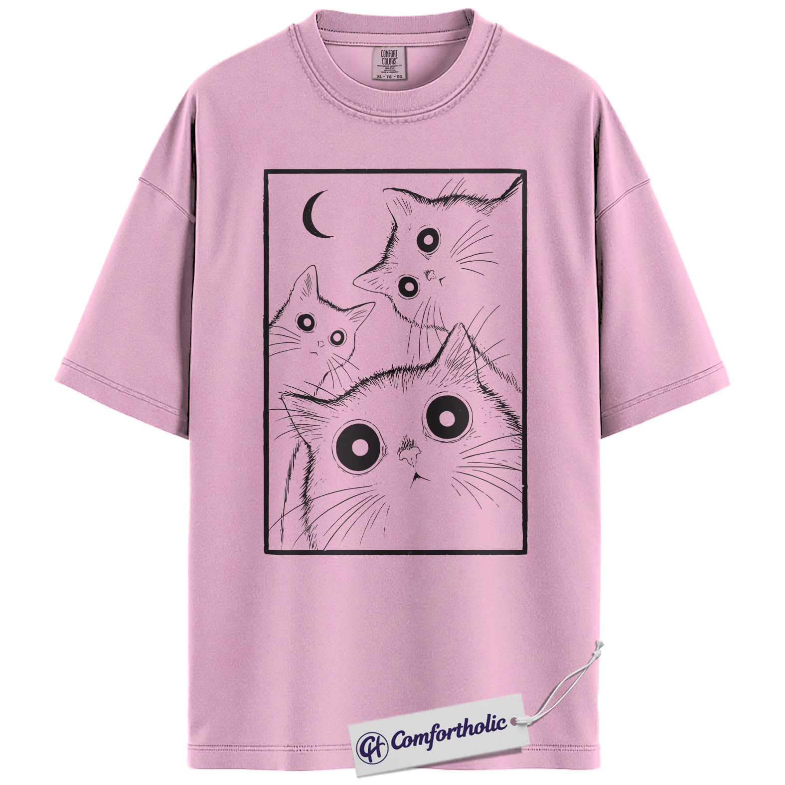Spooky Black Cat Shirt, Moonlight Cat Graphic Tee, Goth Pet Lover T-Shirt, Gift for Cat Moms, Comfort Colors Shirt