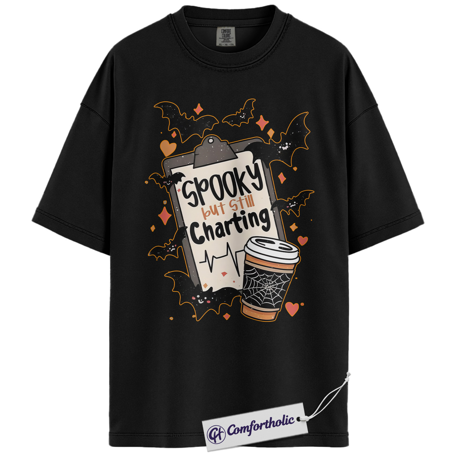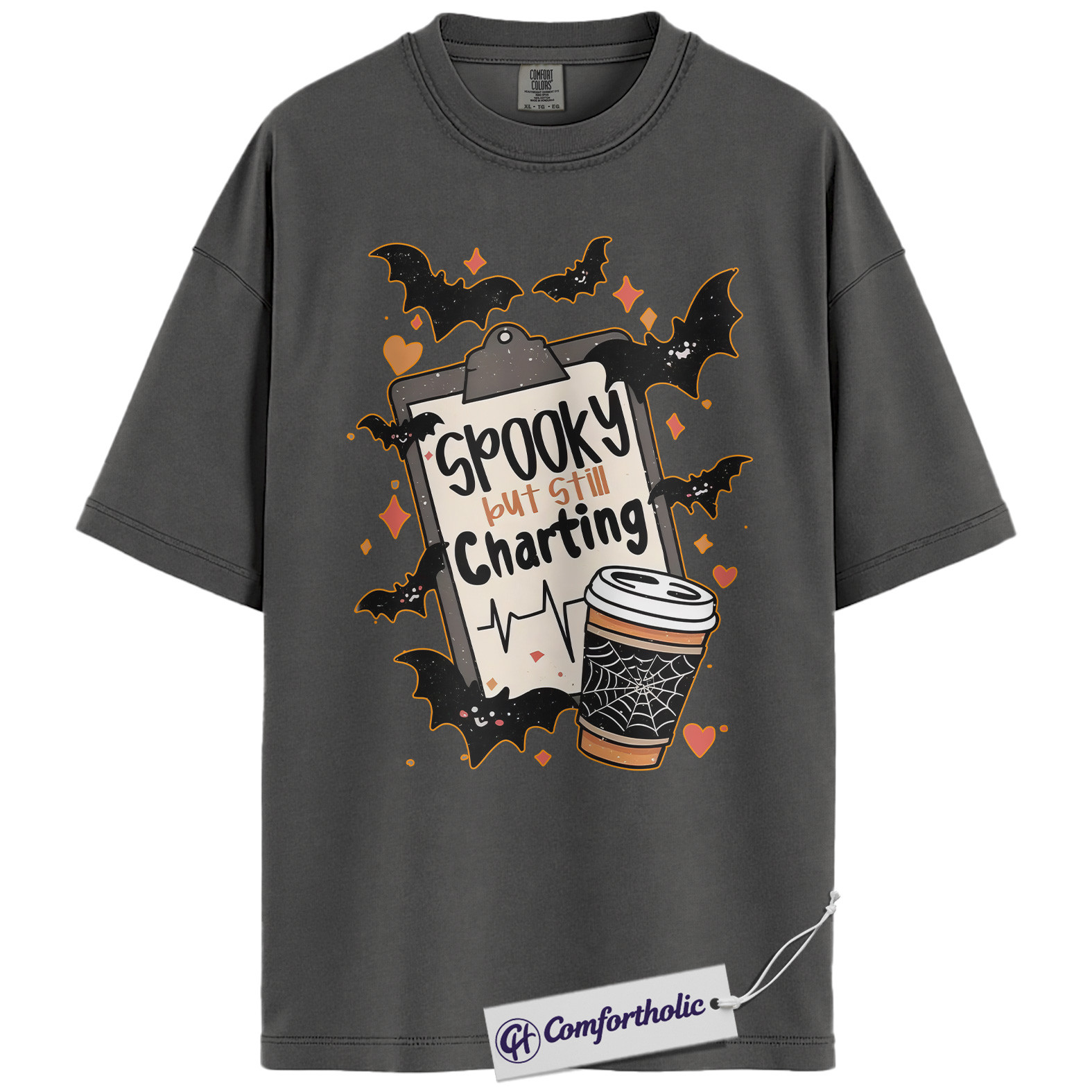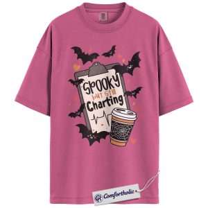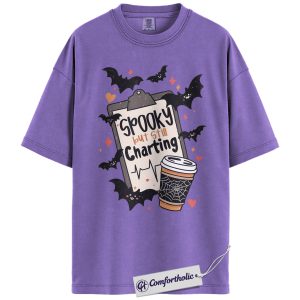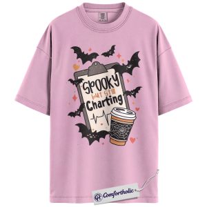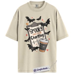 Spooky But Still Charting Shirt, Funny Nurse Halloween T-Shirt, Medical Worker Graphic Tee, Healthcare Coffee Lover Gift, Comfort Colors Shirt