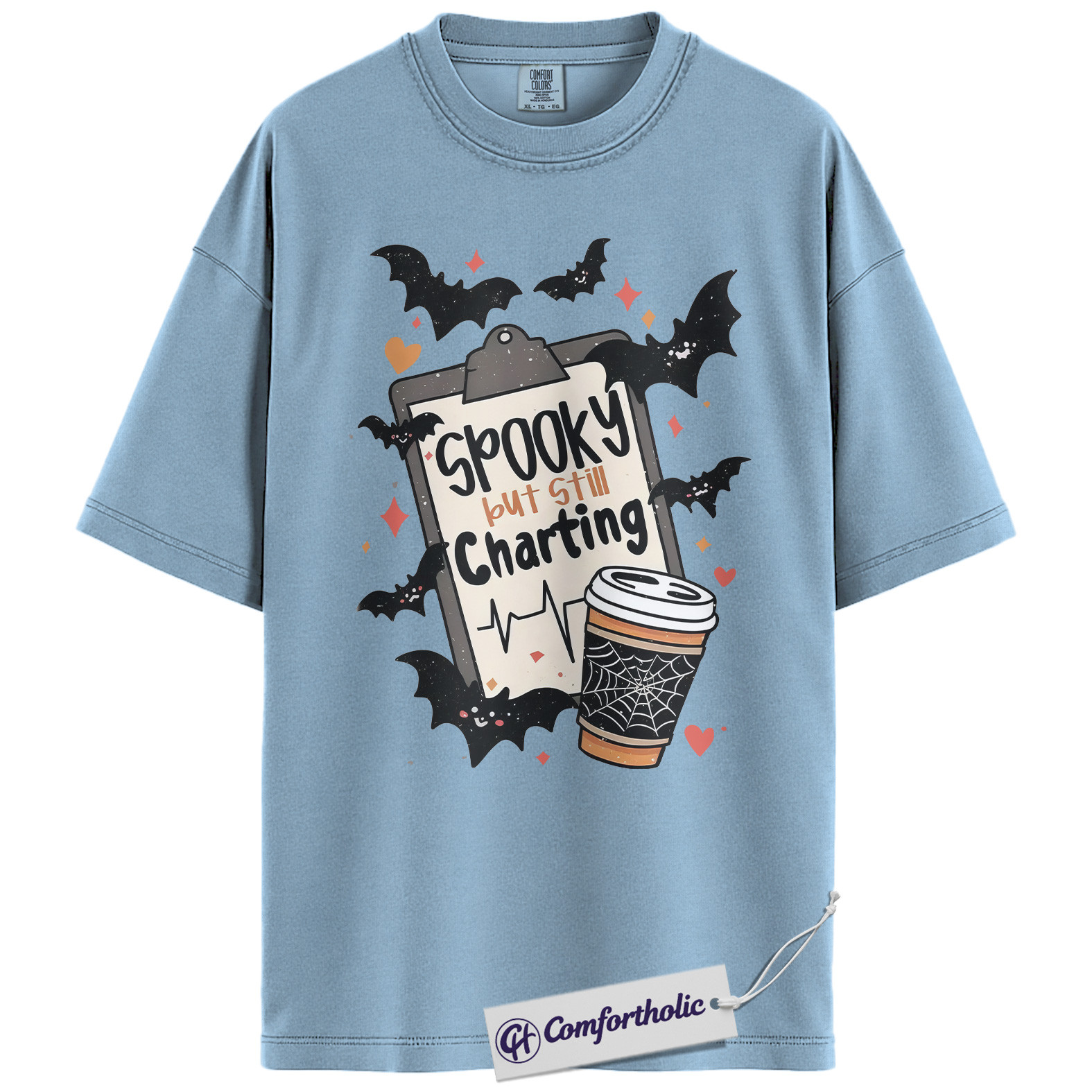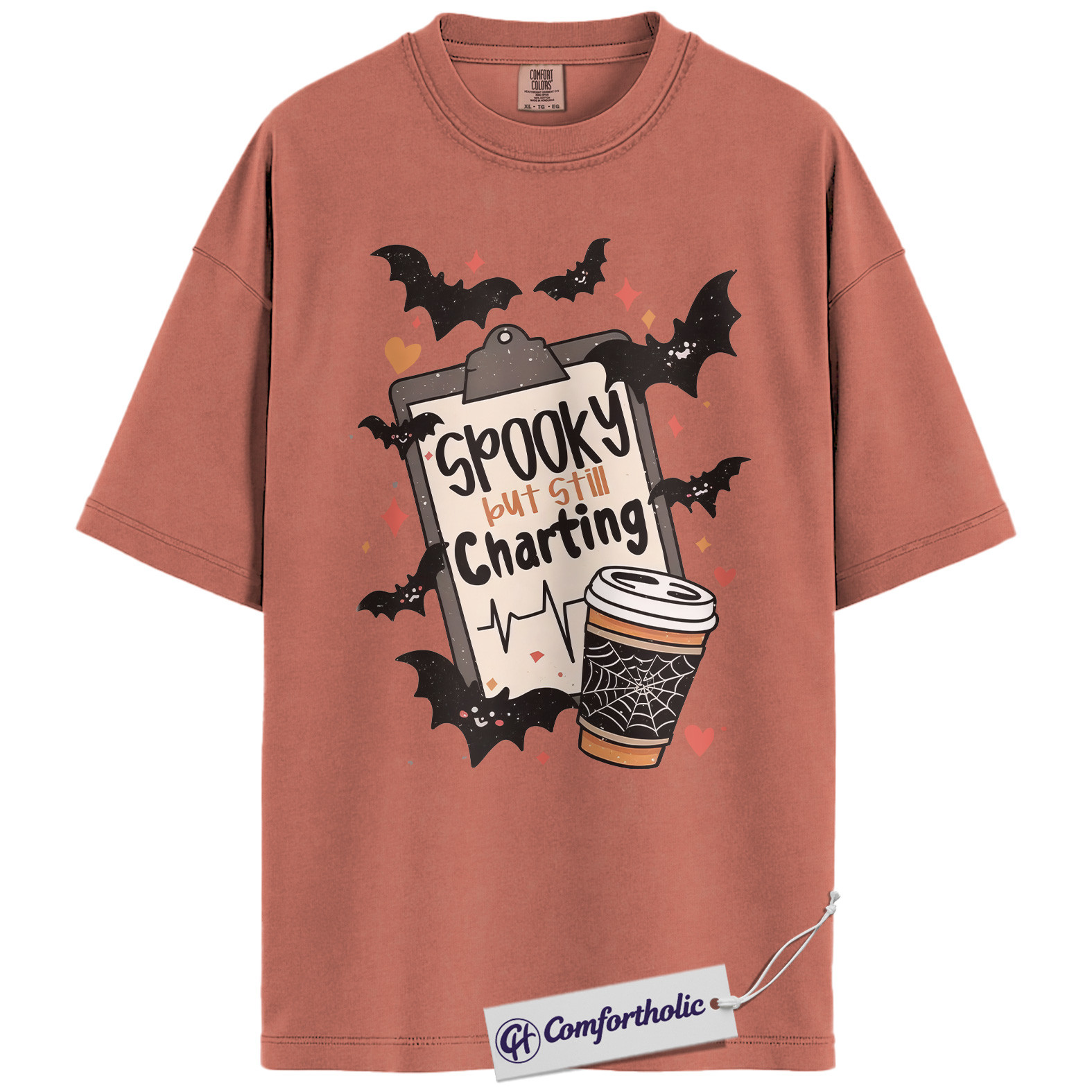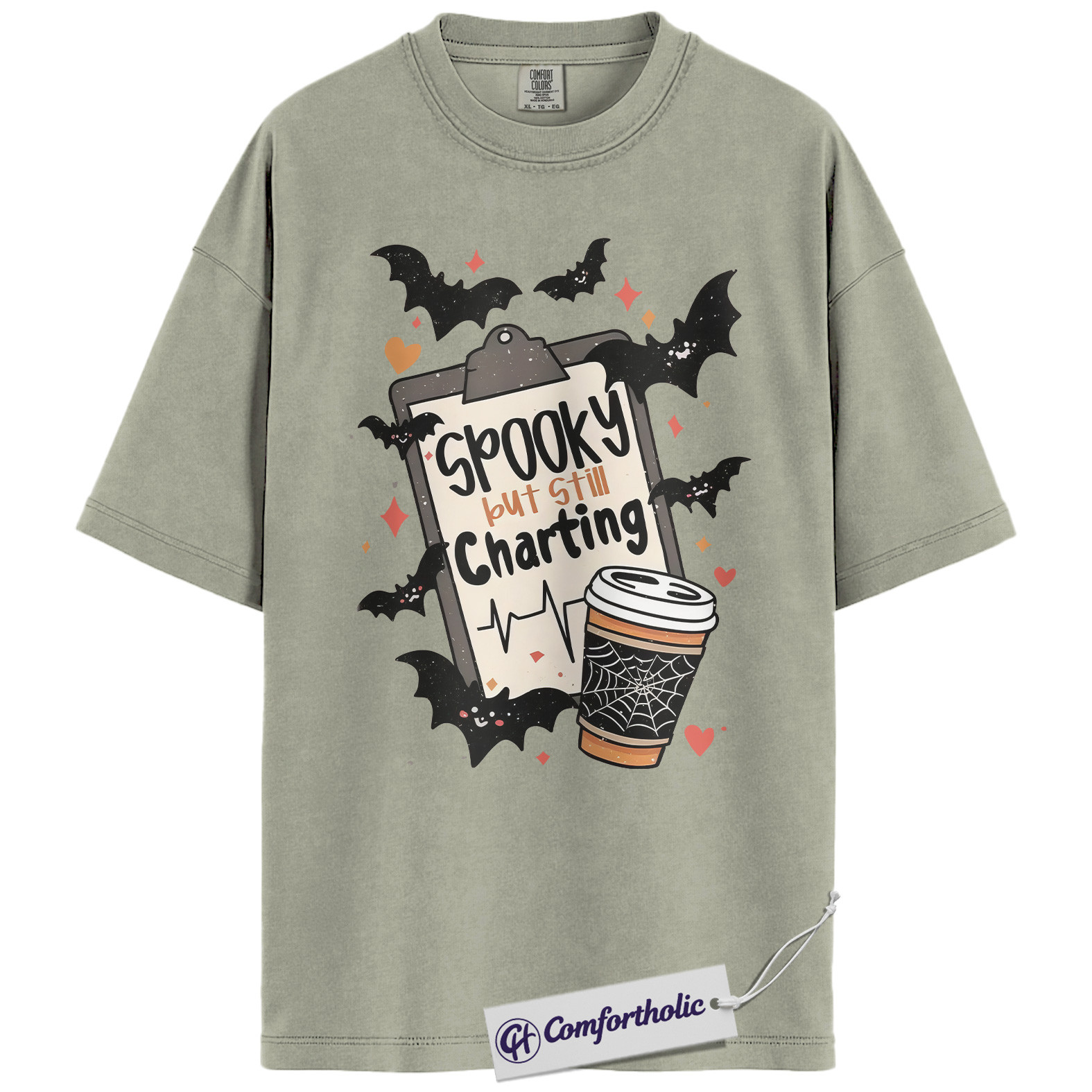 Spooky But Still Charting Shirt, Funny Nurse Halloween T-Shirt, Medical Worker Graphic Tee, Healthcare Coffee Lover Gift, Comfort Colors Shirt