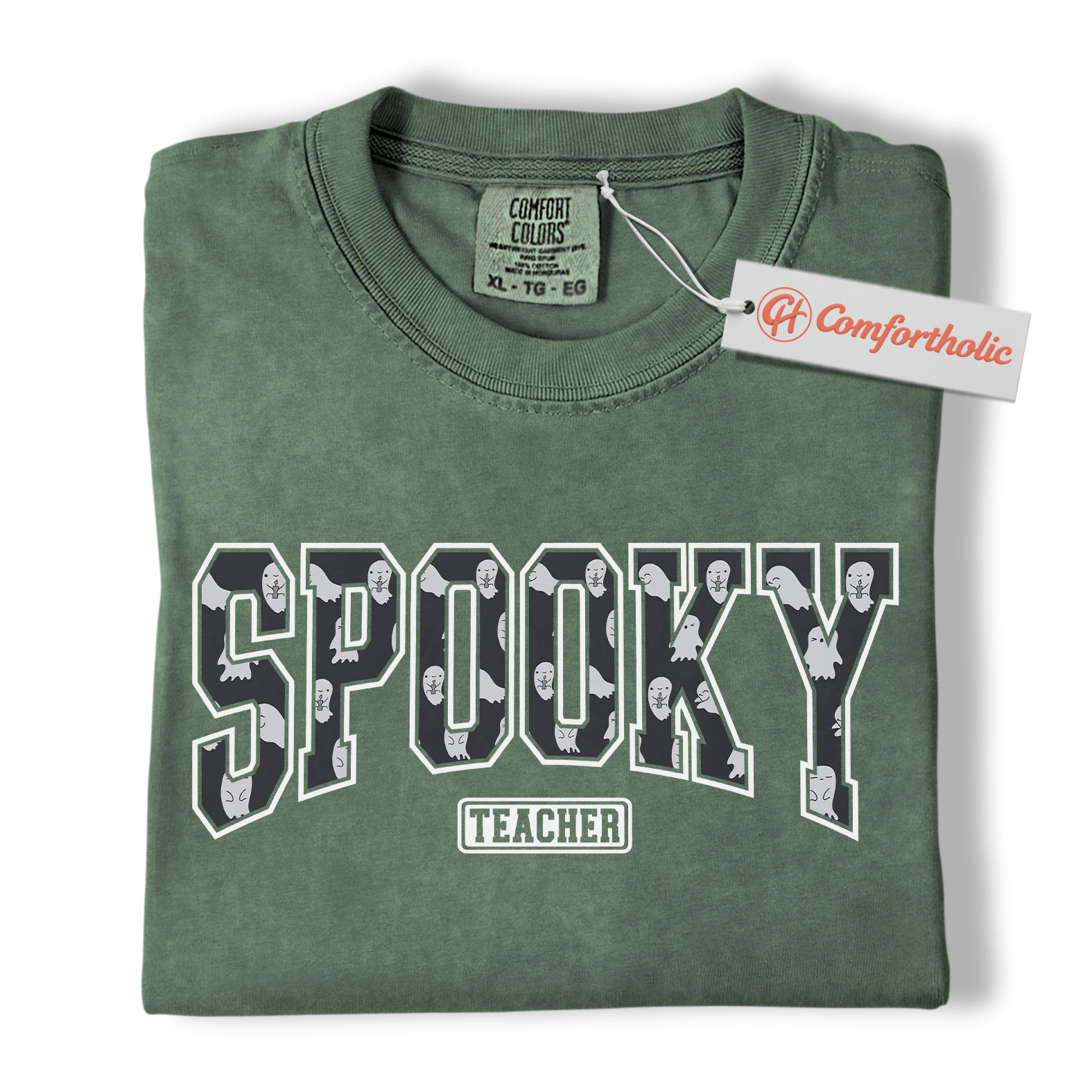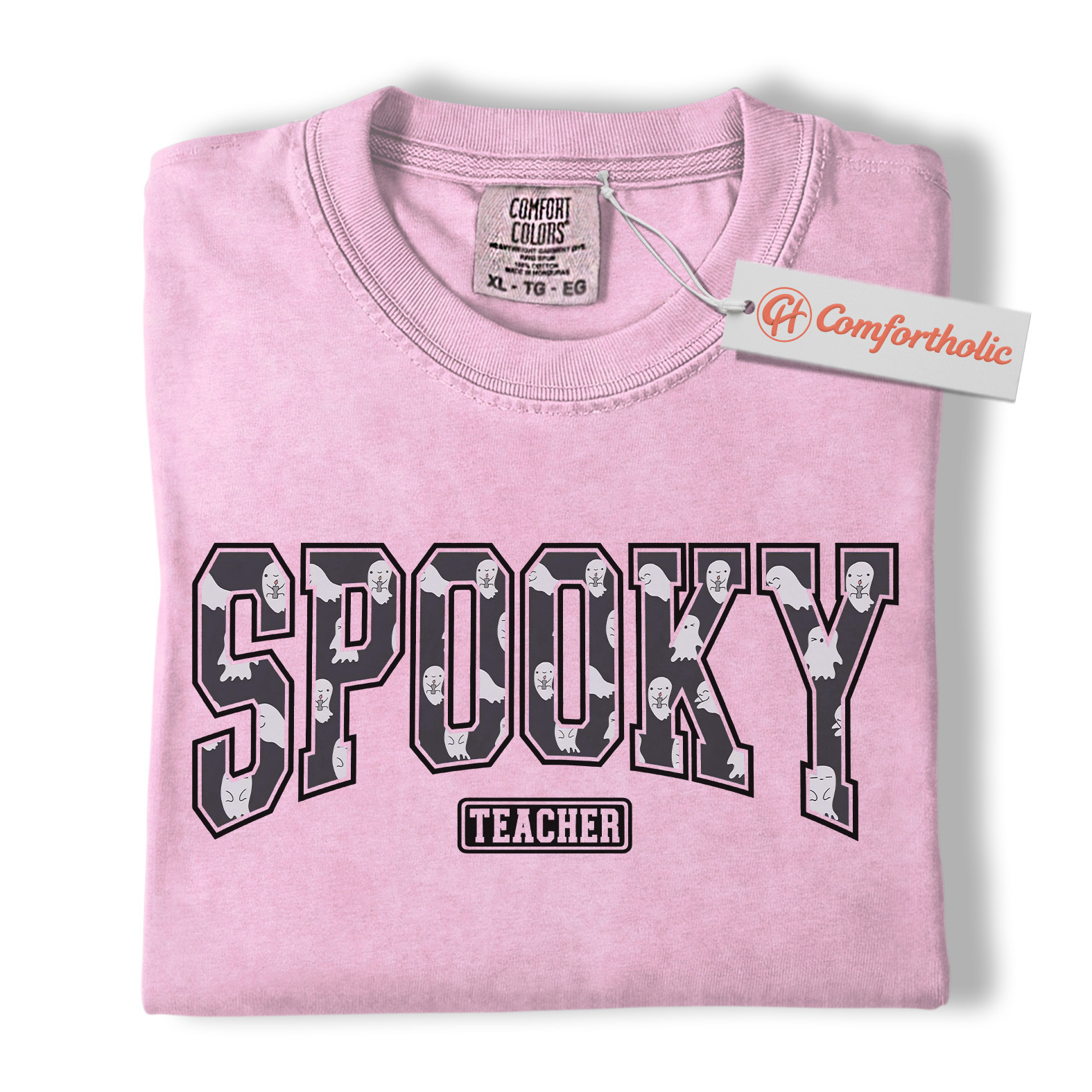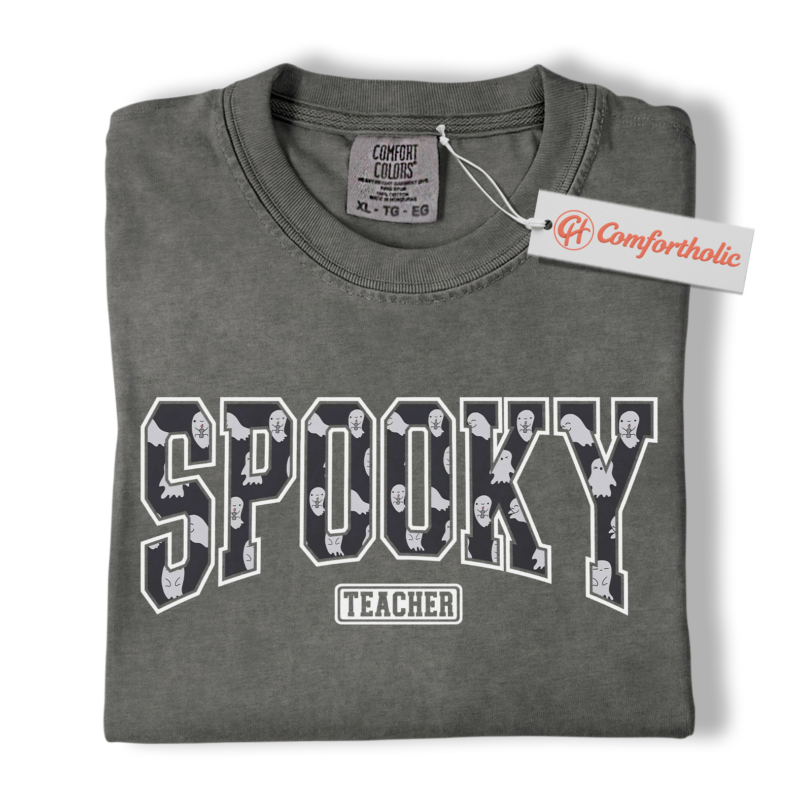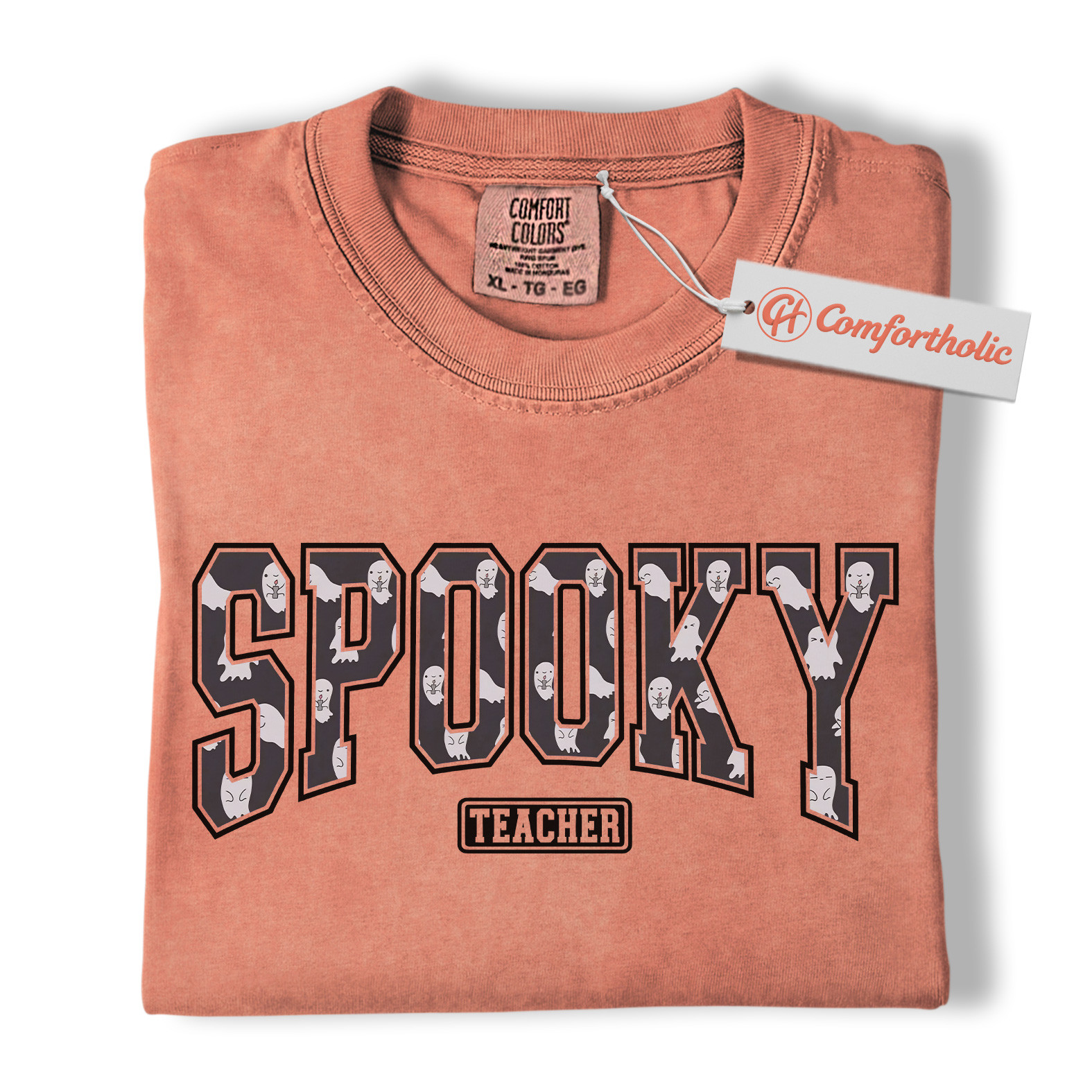 Spooky Teacher Shirt, Funny Halloween Educator T-Shirt, Cute Ghost Graphic Tee, Fall Gift for Teachers, Classroom Comfort Colors Shirt