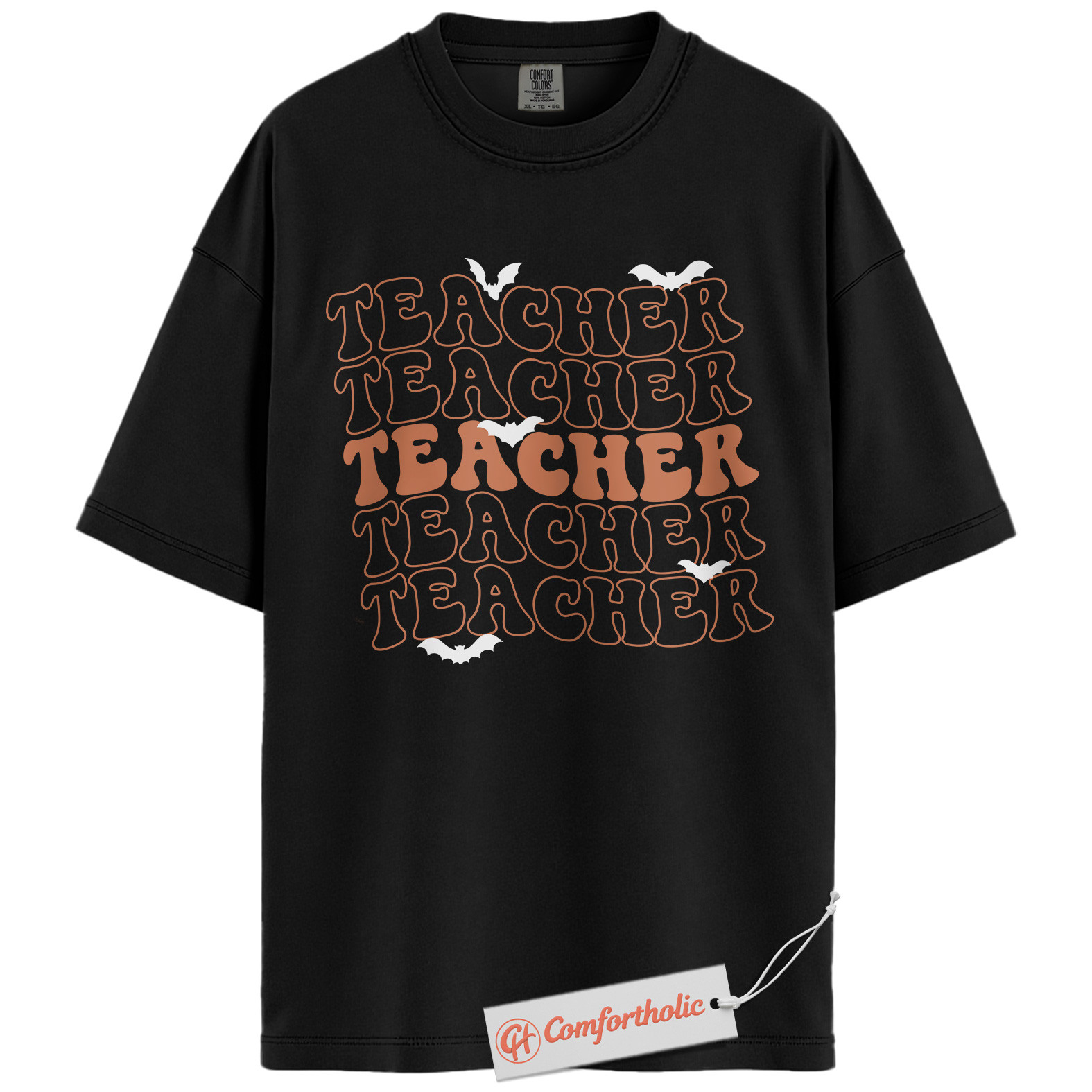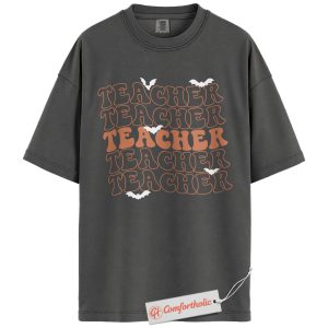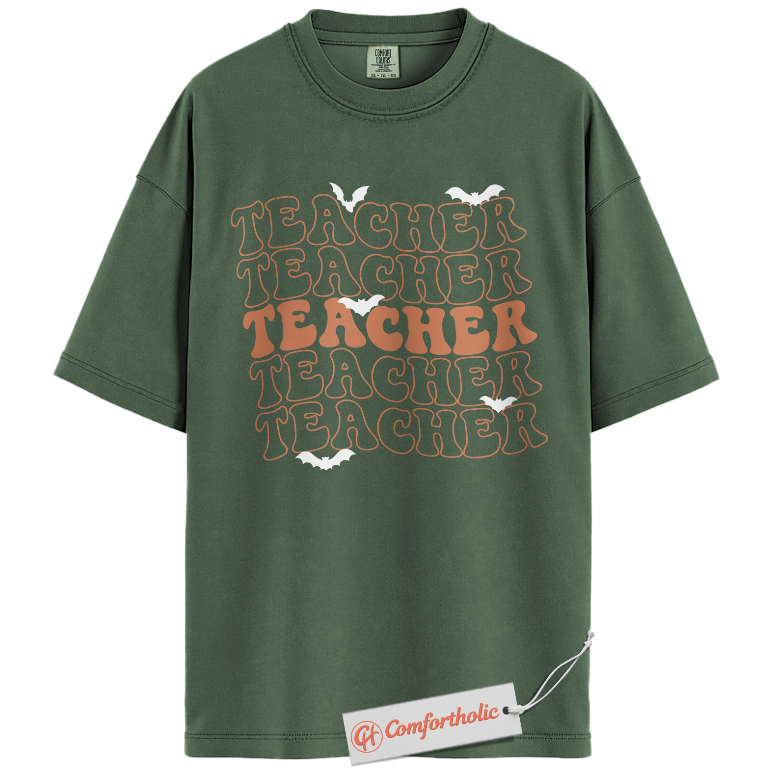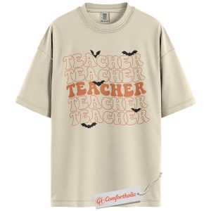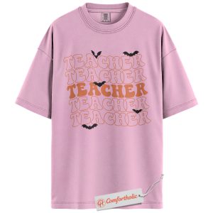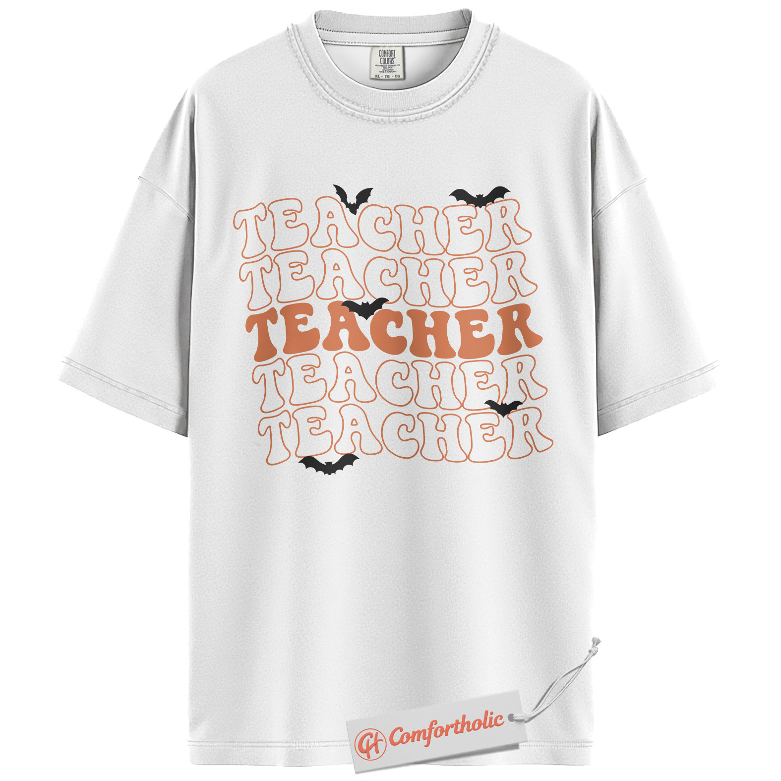 Spooky Teacher Shirt, Halloween Teacher T-Shirt, Retro Bat Graphic Tee, Cute Fall Gift for Educators, Teacher Comfort Colors Shirt
