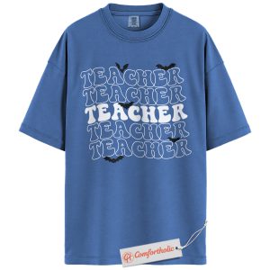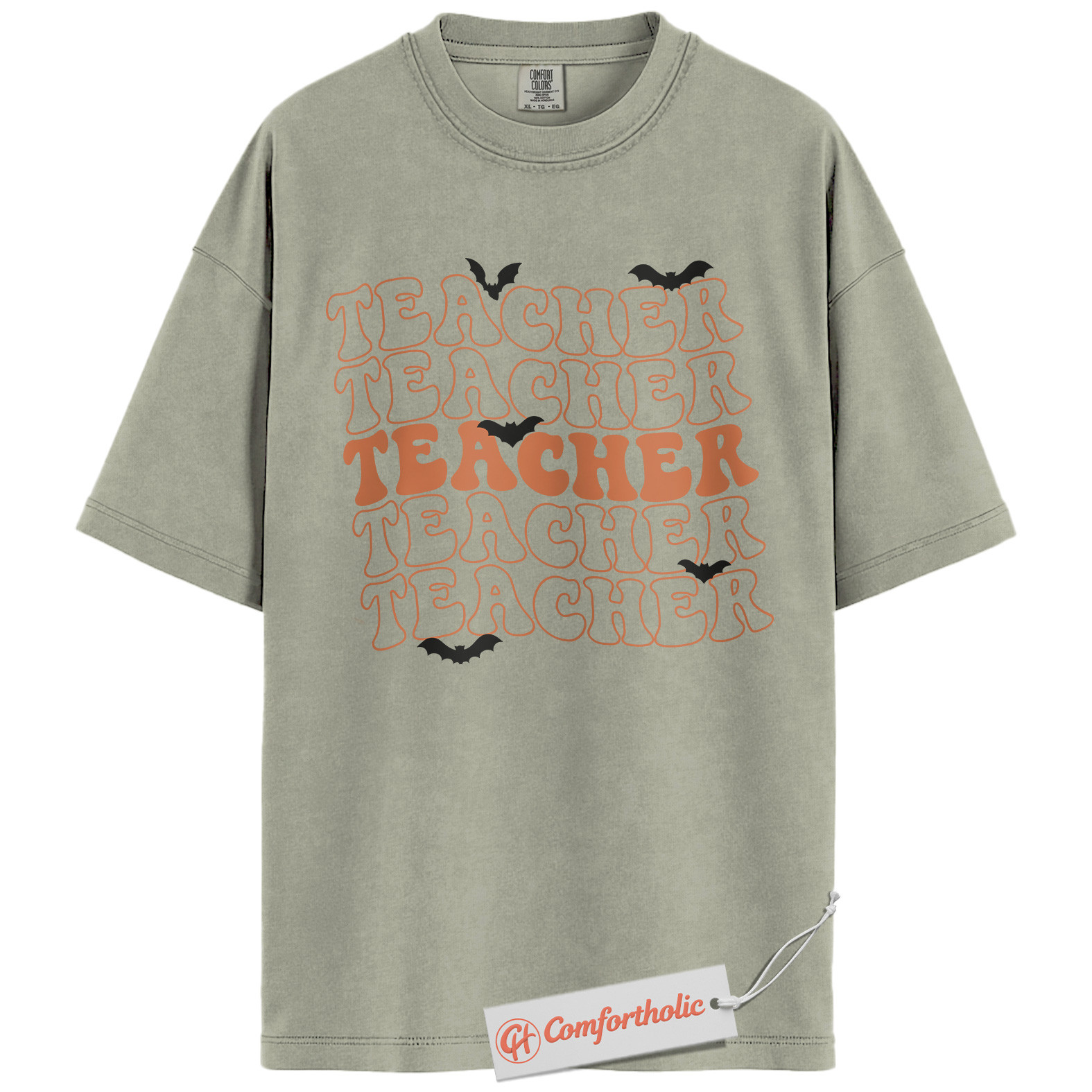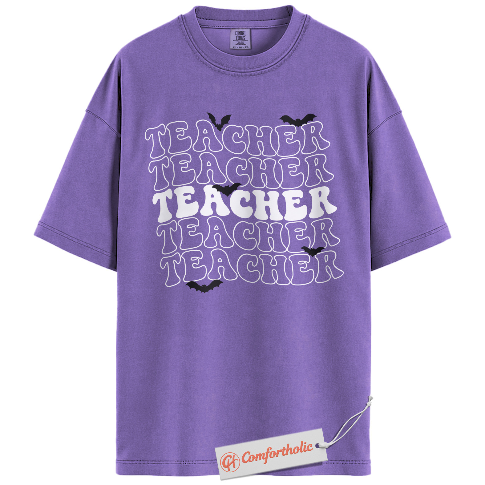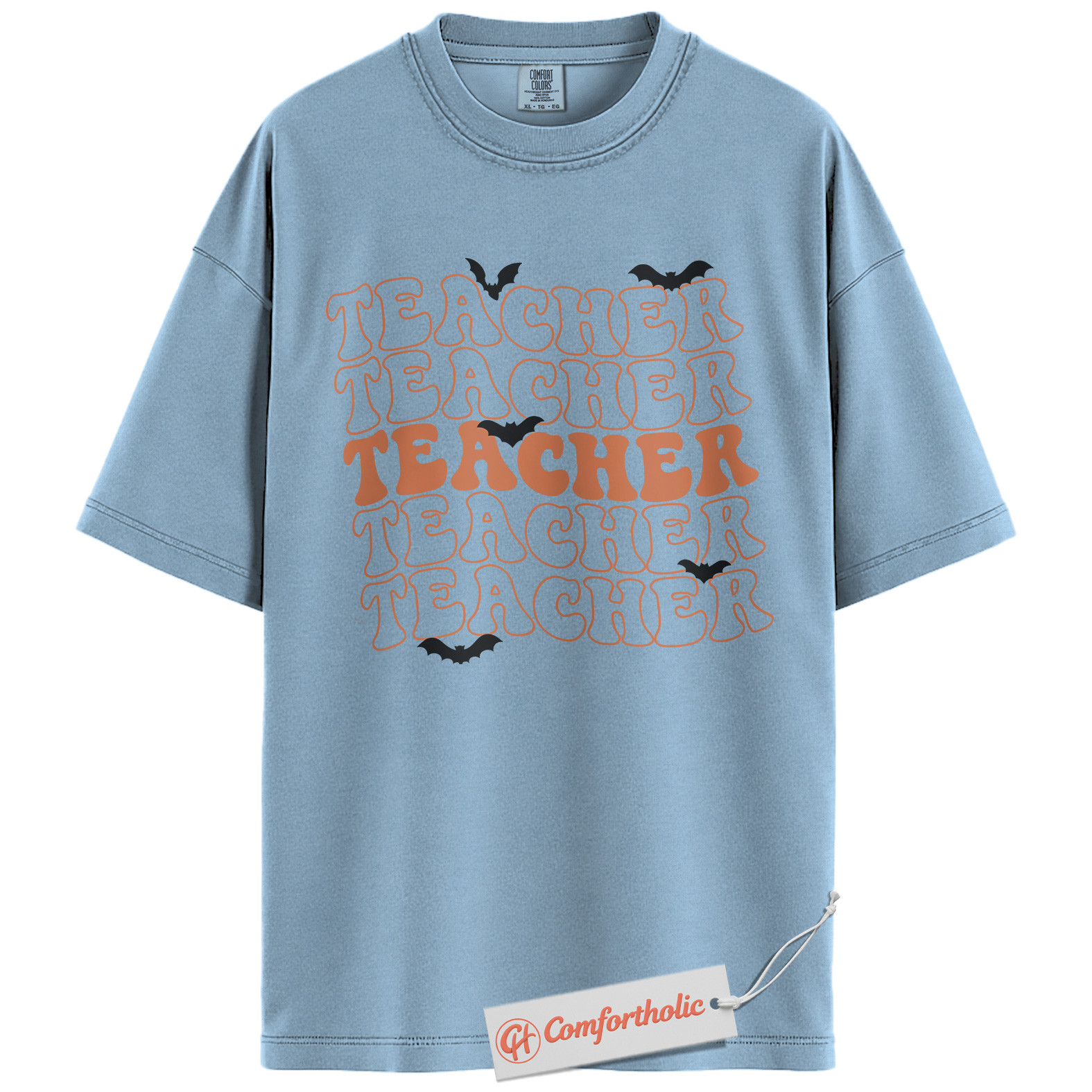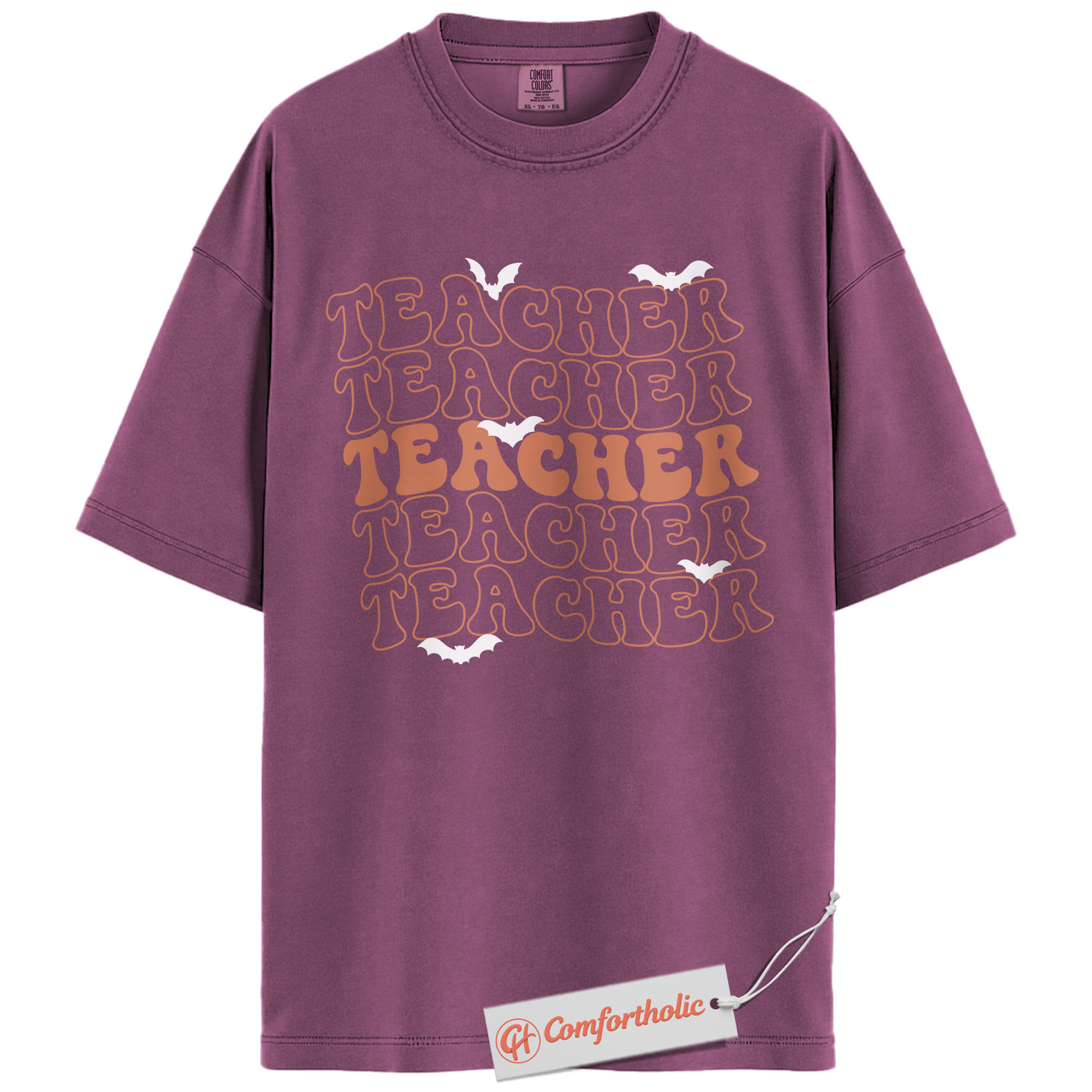 Spooky Teacher Shirt, Halloween Teacher T-Shirt, Retro Bat Graphic Tee, Cute Fall Gift for Educators, Teacher Comfort Colors Shirt