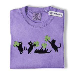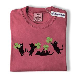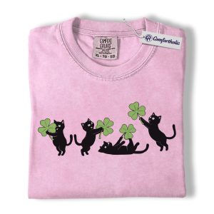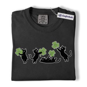 St Patrick’s Day Black Cat Shirt, Cute Shamrock Cats Graphic Tee, Irish Pet Lover T-Shirt, Funny St Paddy’s Day Gift for Cat Moms & Animal Lovers, Comfort Colors Shirt