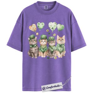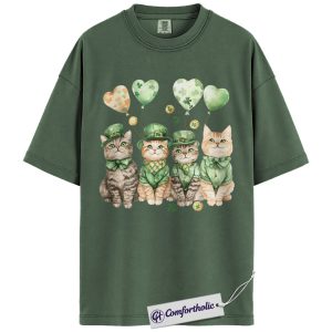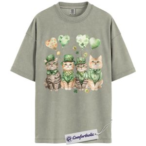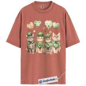 St Patrick’s Day Cat Shirt, Cute Leprechaun Graphic Tee, Irish Cat Lover T-Shirt, Funny St Paddy’s Day Gift, Comfort Colors Shirt