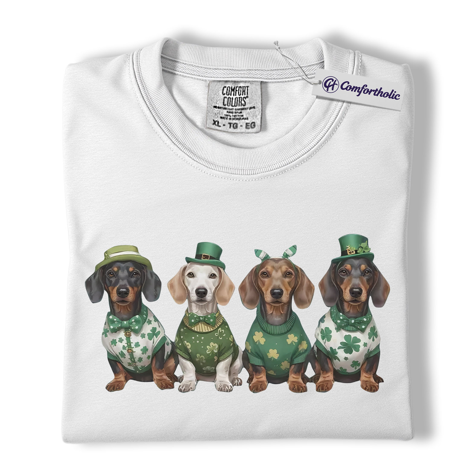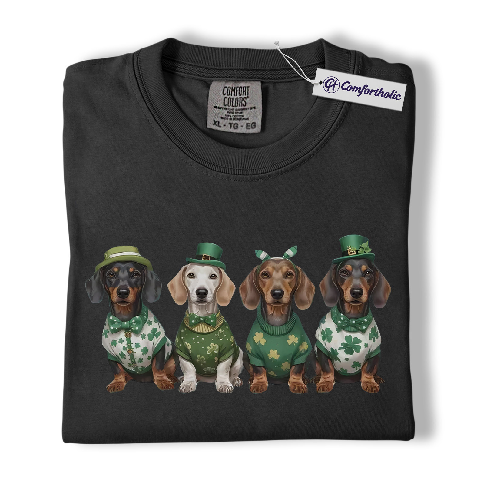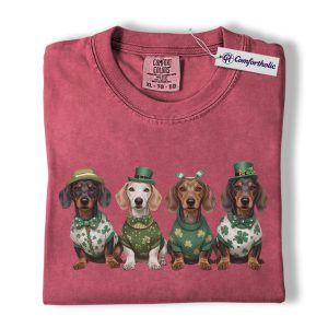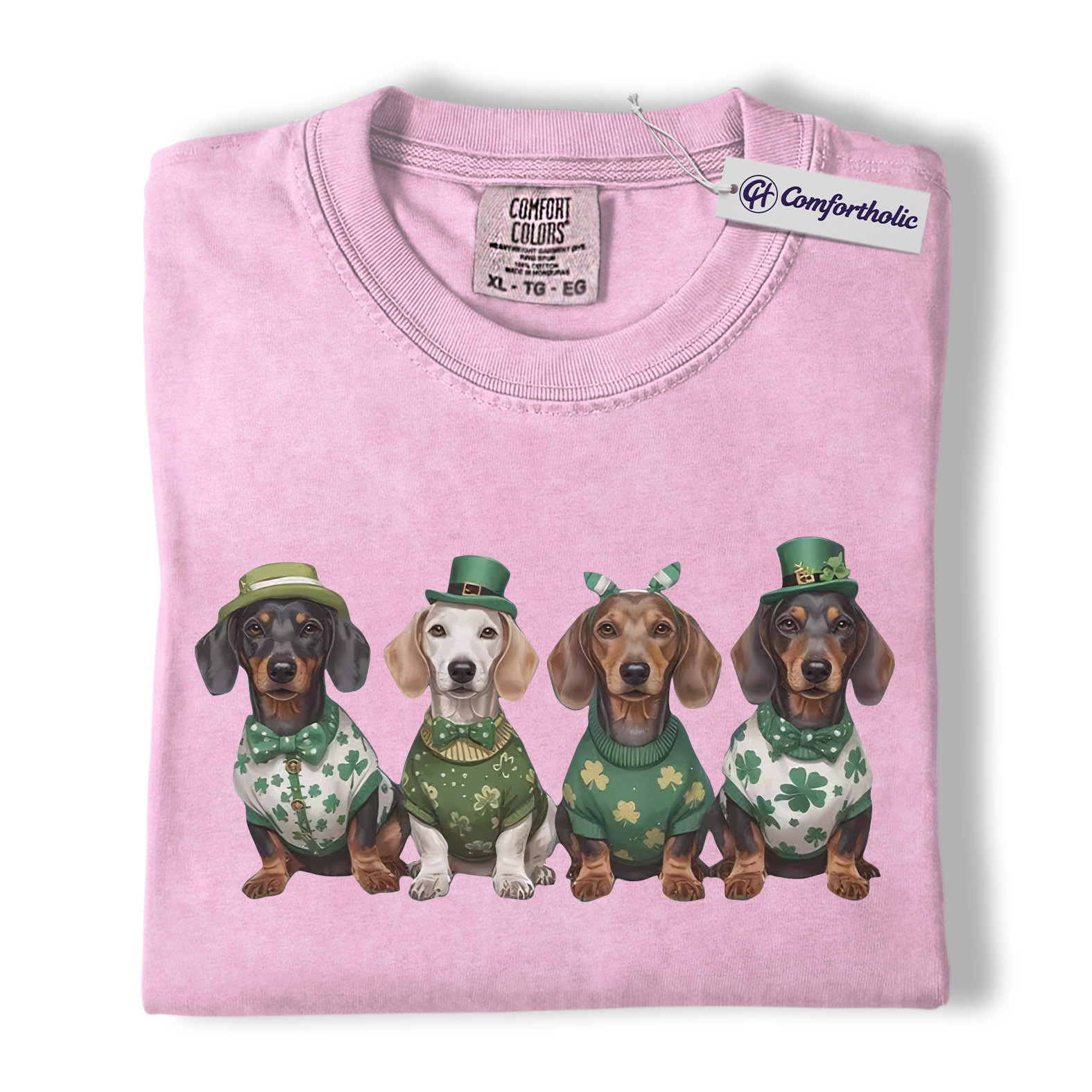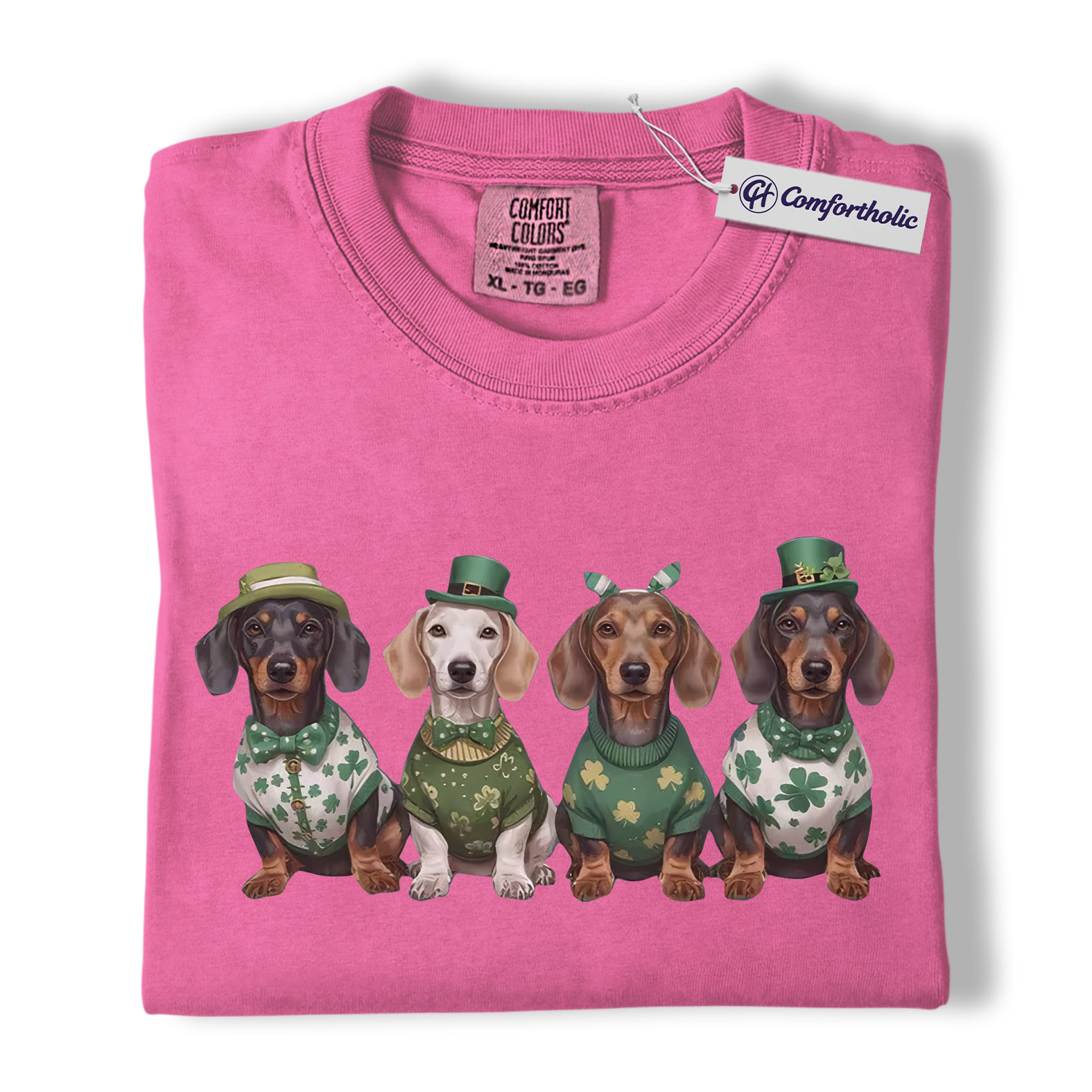 St Patrick’s Day Dachshund Shirt, Shamrock Doxie Dogs Graphic Tee, Irish Dog Mom T-Shirt, Funny St Paddy’s Day Gift for Dachshund Lovers, Comfort Colors Shirt