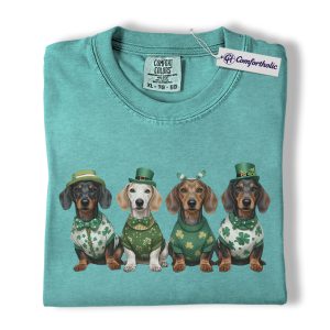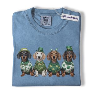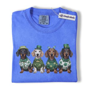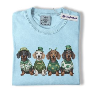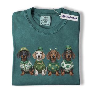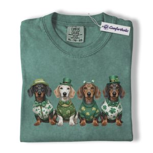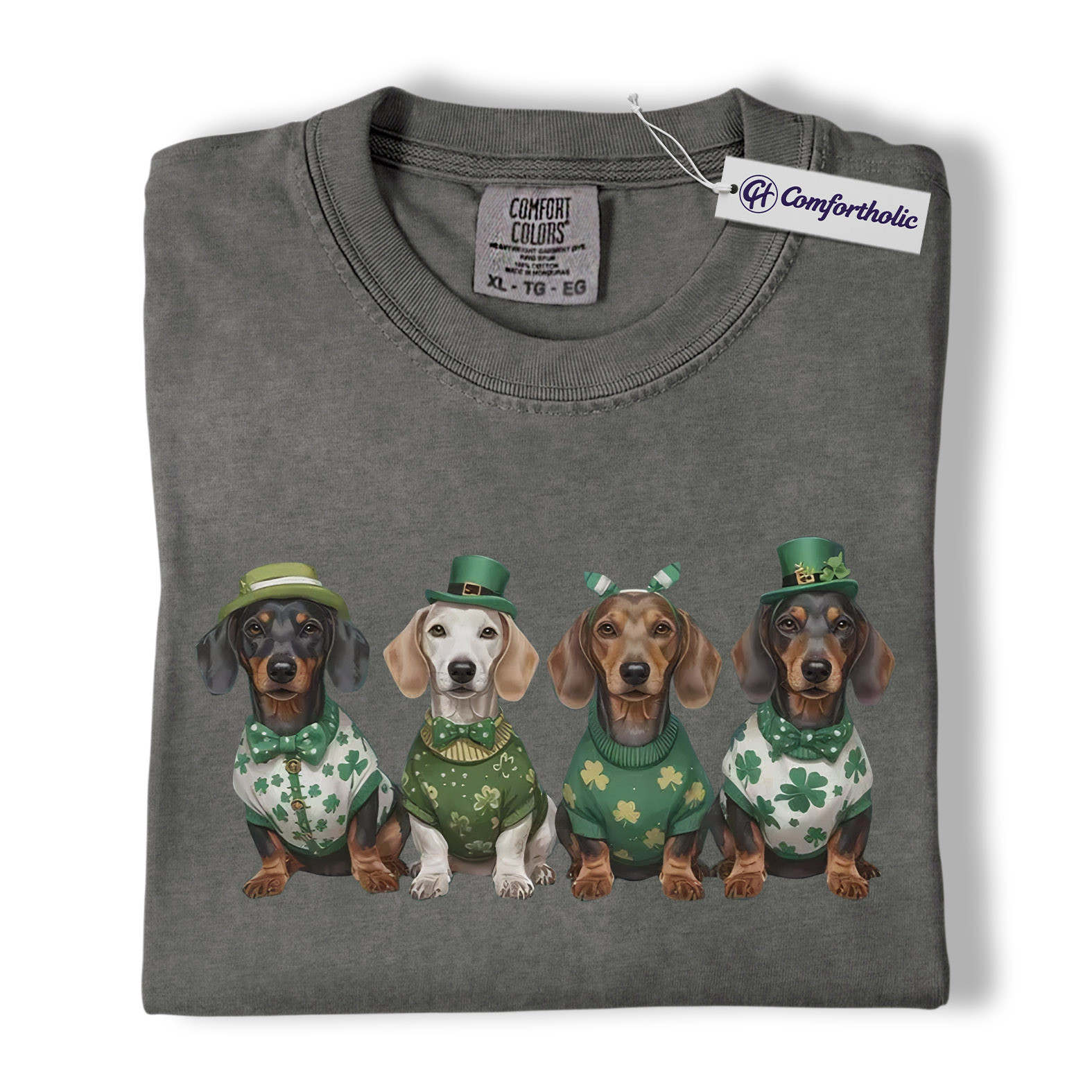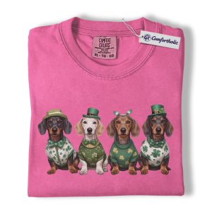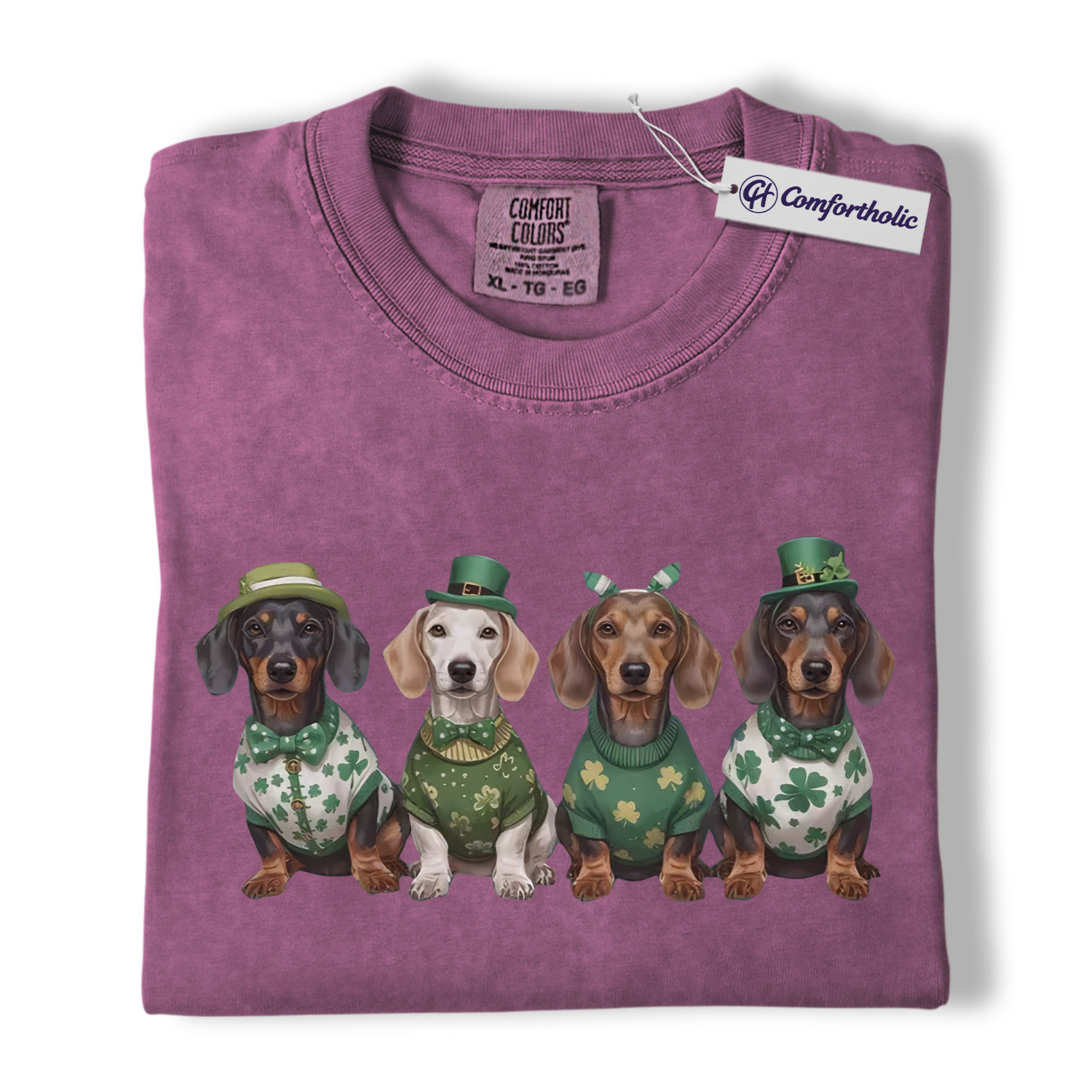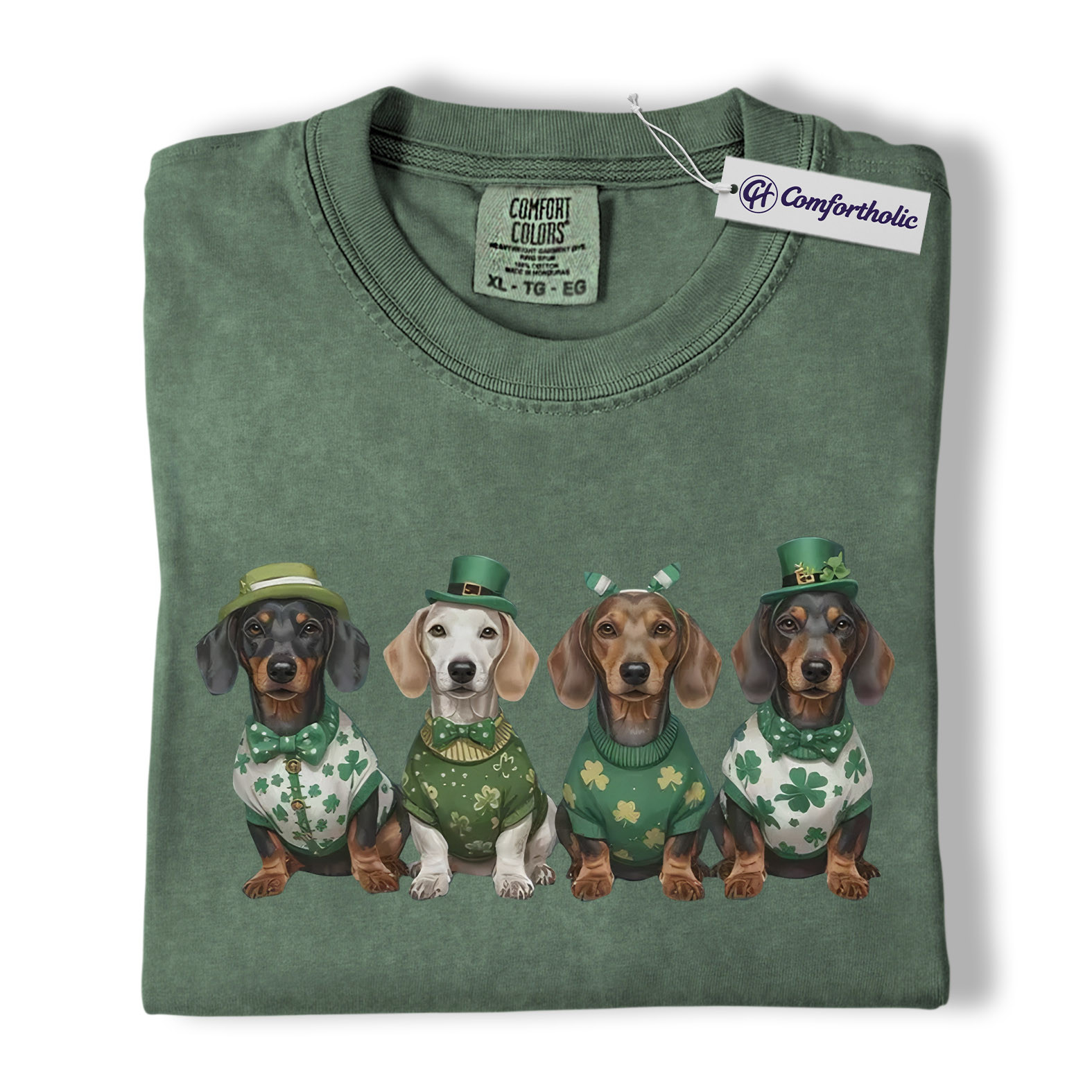 St Patrick’s Day Dachshund Shirt, Shamrock Doxie Dogs Graphic Tee, Irish Dog Mom T-Shirt, Funny St Paddy’s Day Gift for Dachshund Lovers, Comfort Colors Shirt