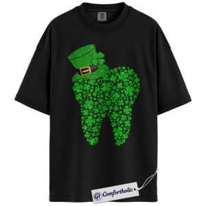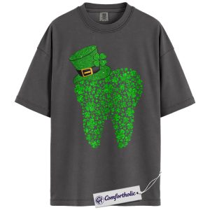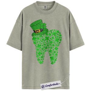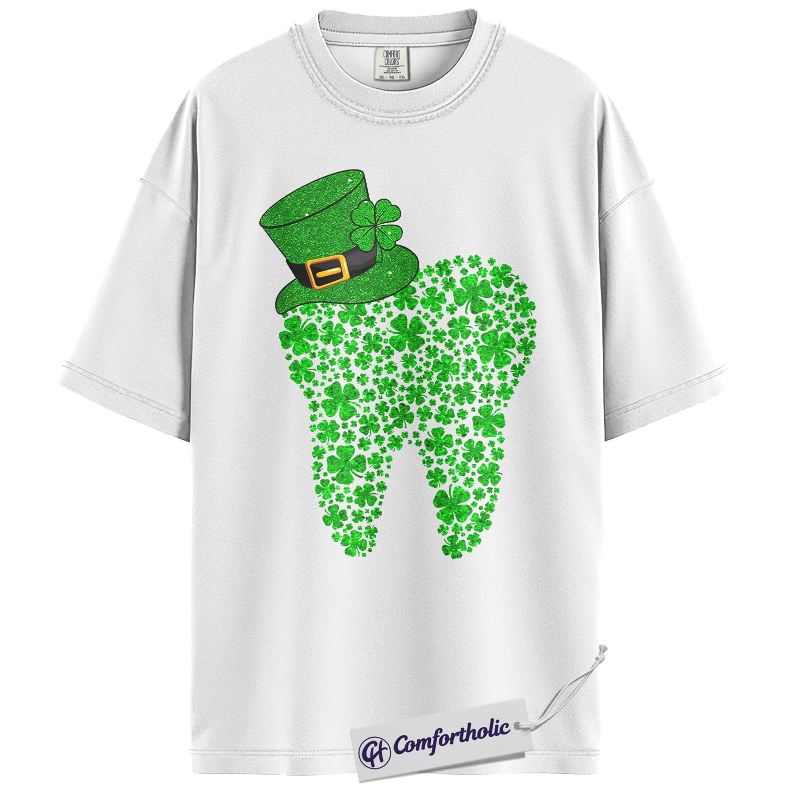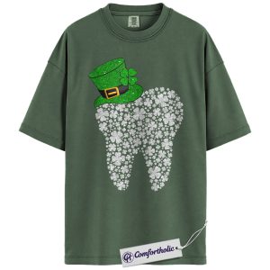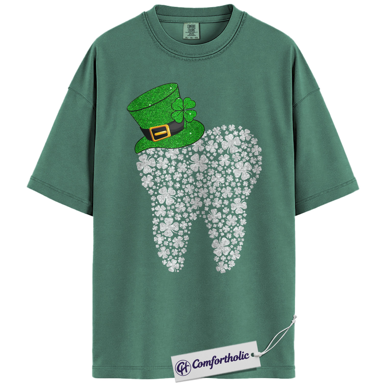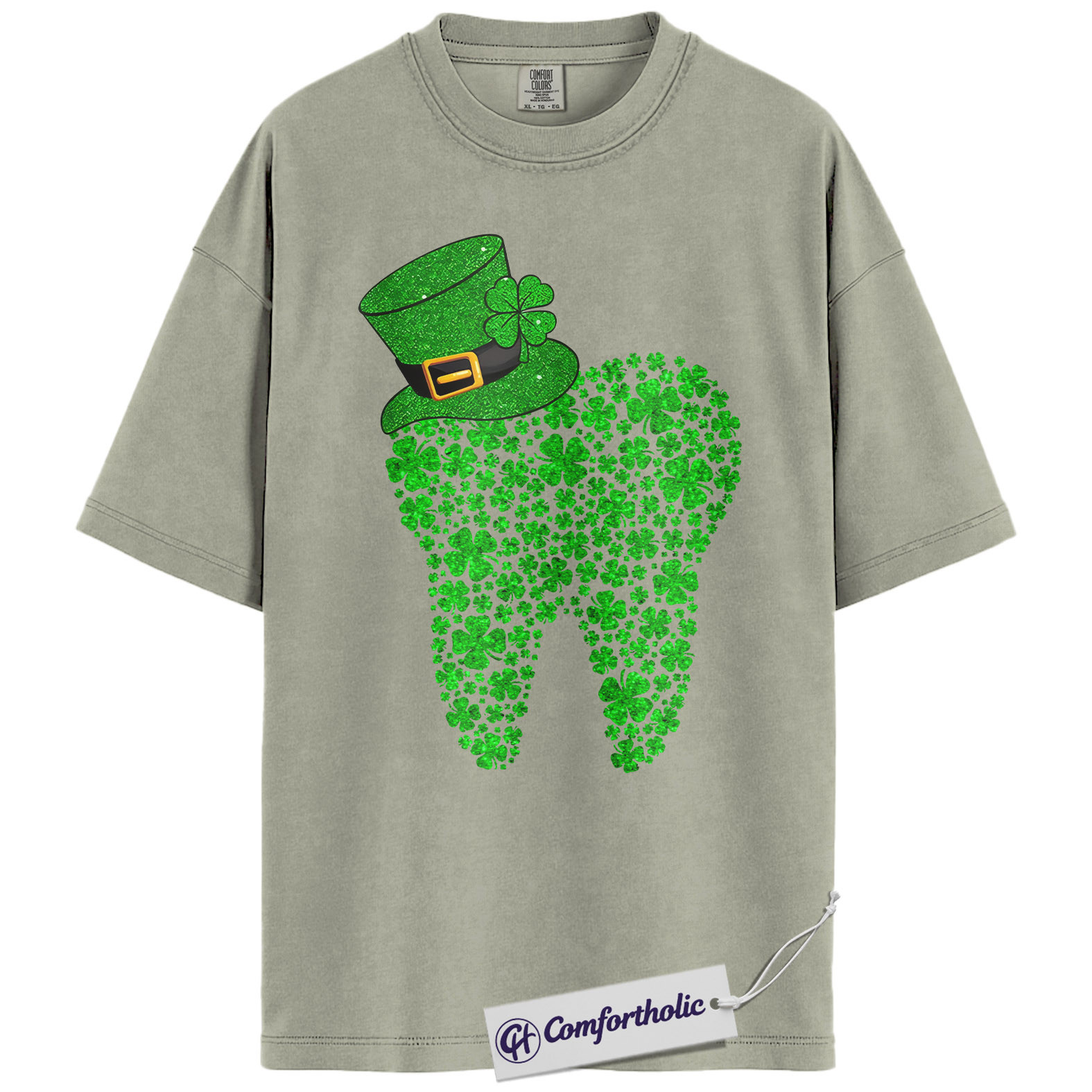 St Patrick’s Day Dentist Shirt, Shamrock Tooth Graphic Tee, Dental Hygienist & Dental Assistant T-Shirt, Funny St Paddy’s Day Gift for Dental Staff, Comfort Colors Shirt