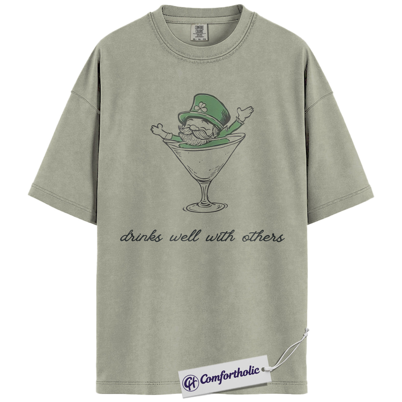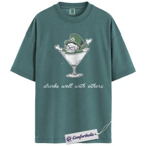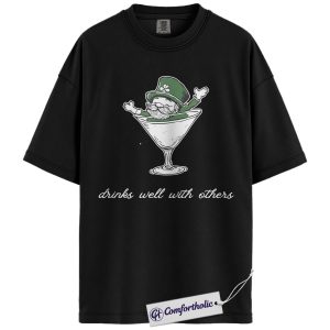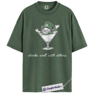 St Patrick’s Day Drinking Shirt, Funny Leprechaun Martini Graphic Tee, Irish Party Bar Crawl T-Shirt, St Paddy’s Day Gift for Friends, Comfort Colors Shirt