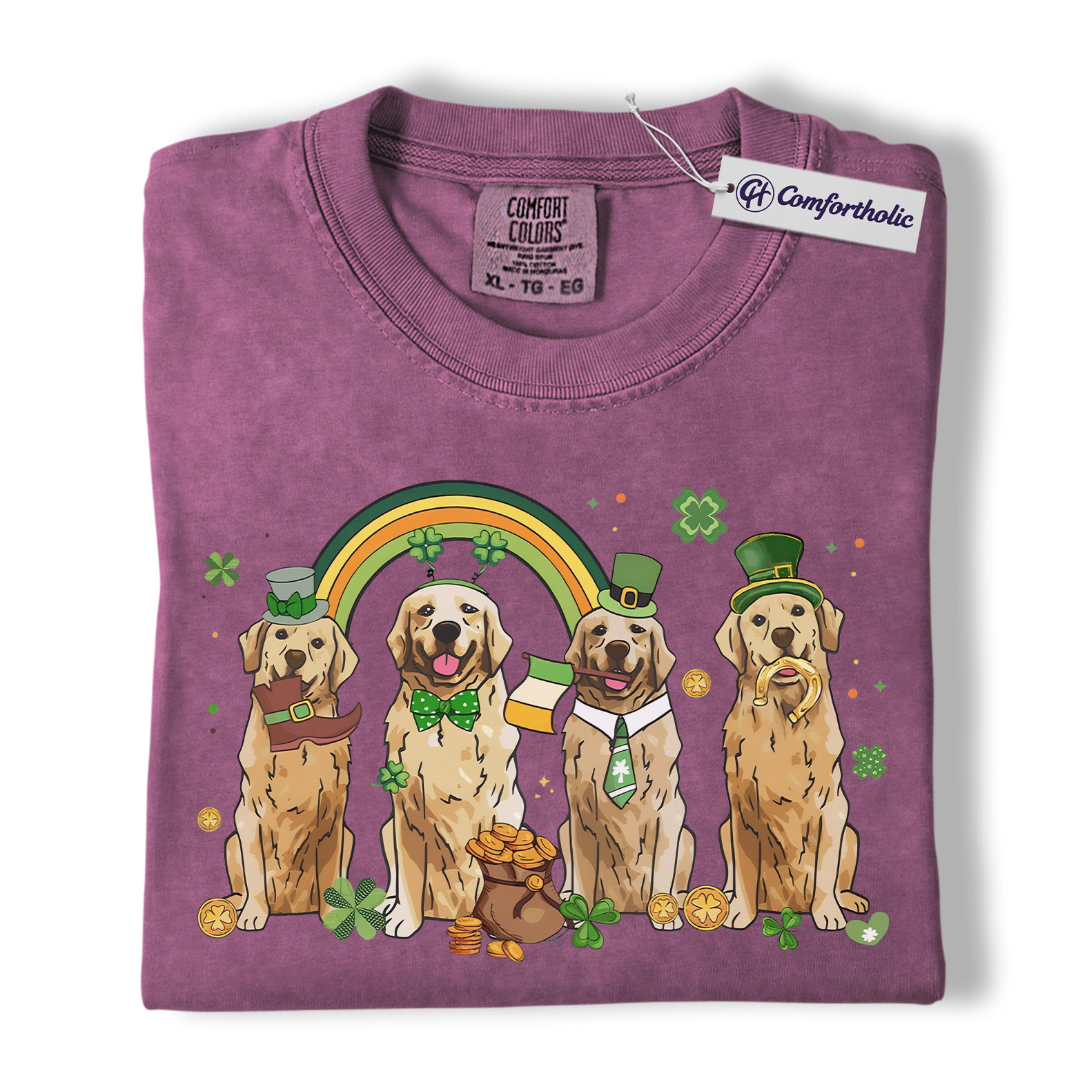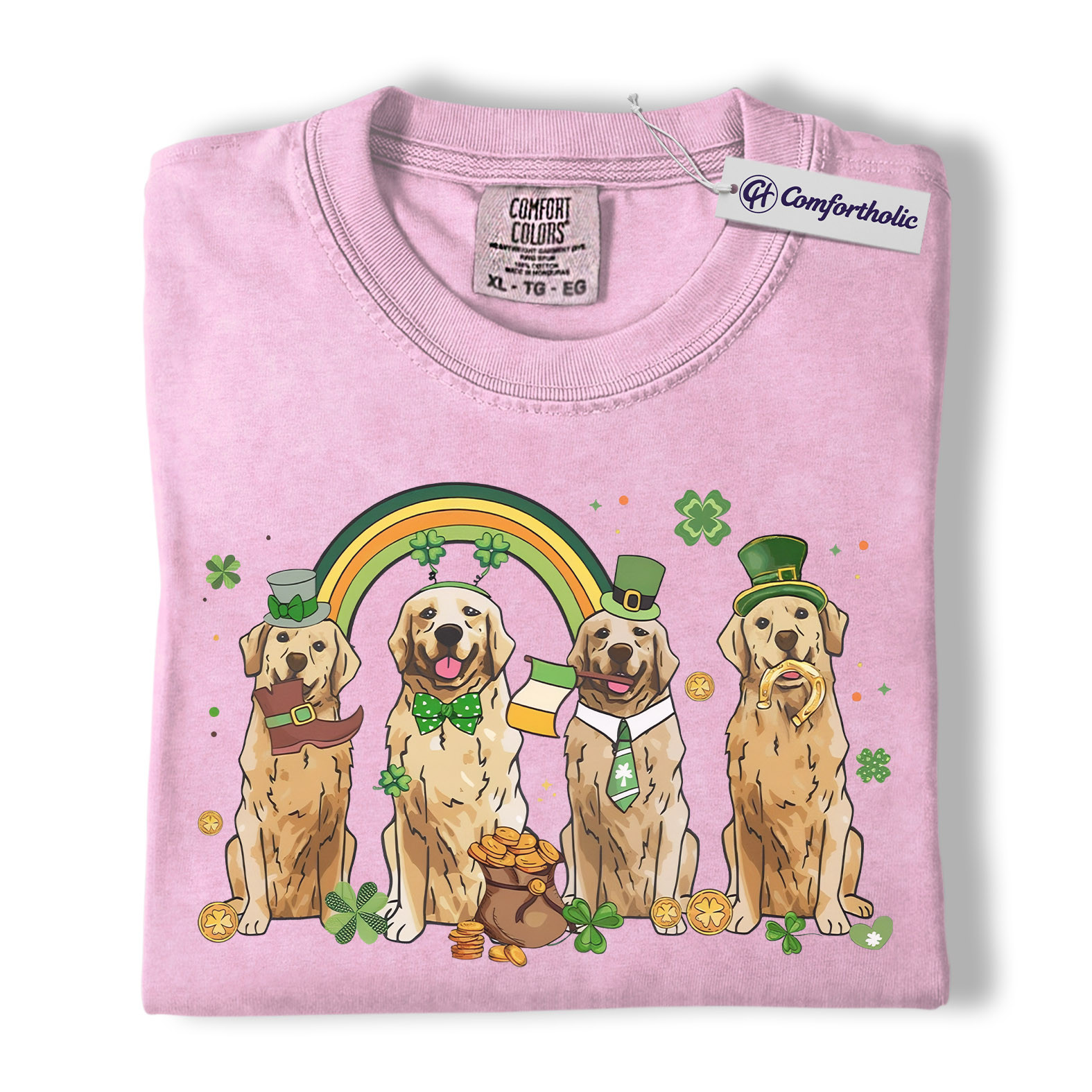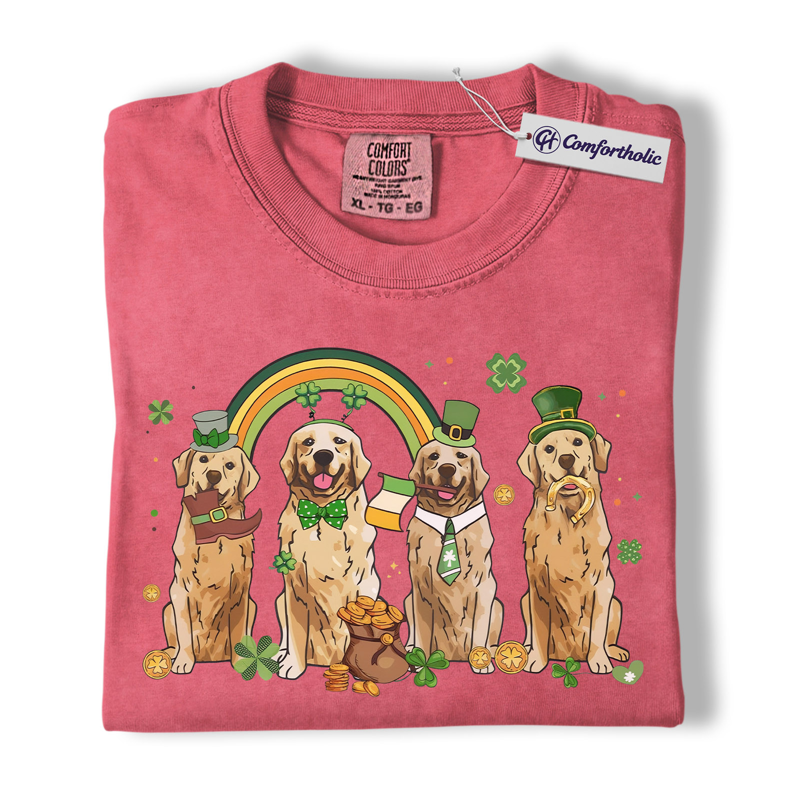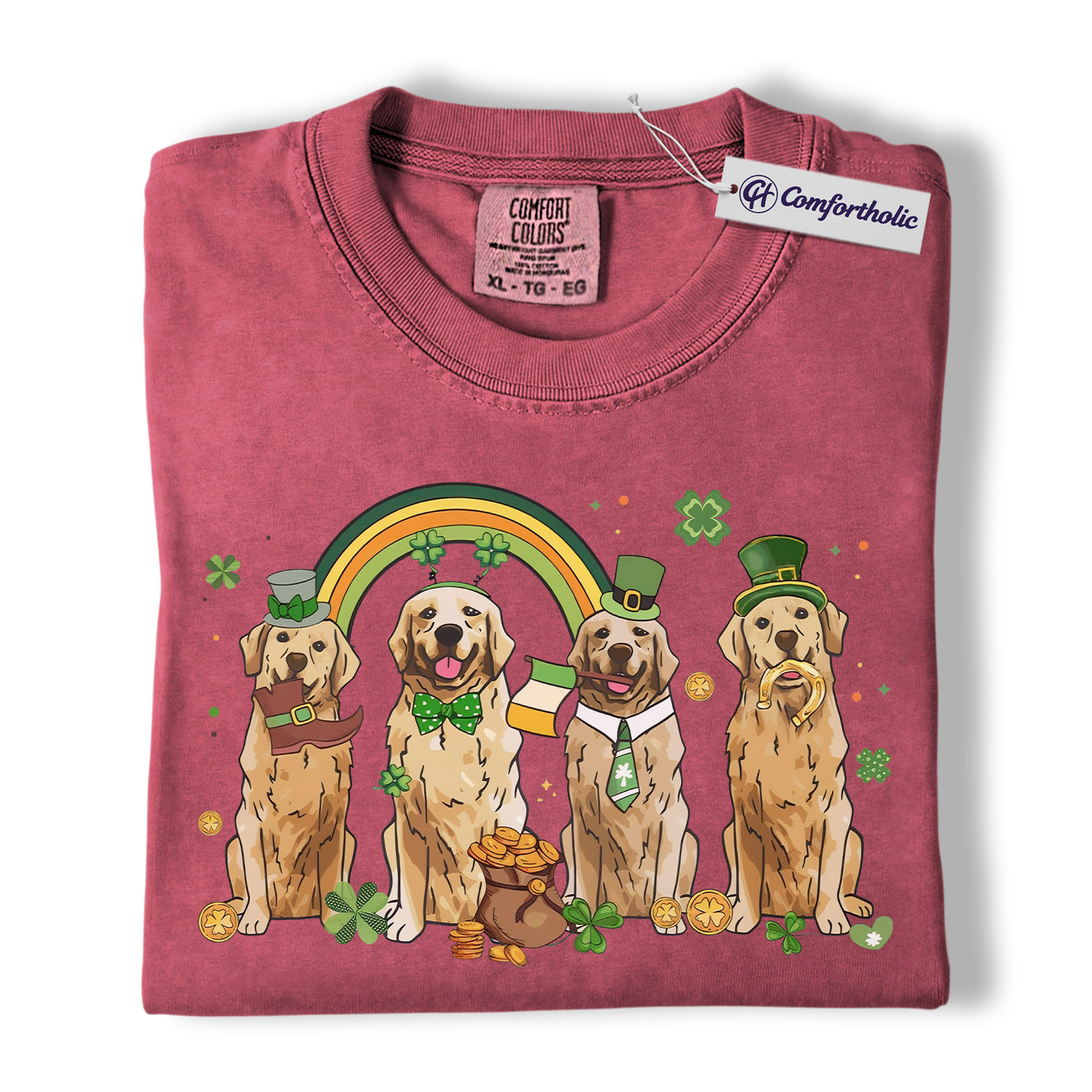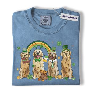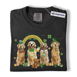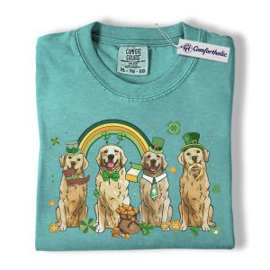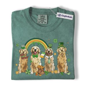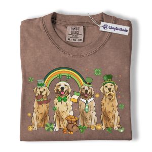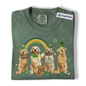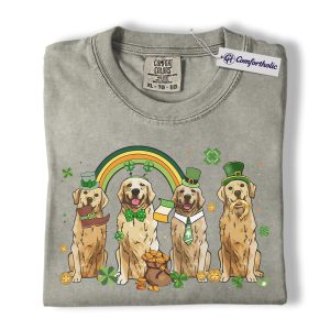 St Patrick’s Day Golden Retriever Shirt, Leprechaun Retriever Shamrock Rainbow Graphic Tee, Funny Dog Mom T-Shirt, Irish Gift for Golden Lovers, Comfort Colors Shirt