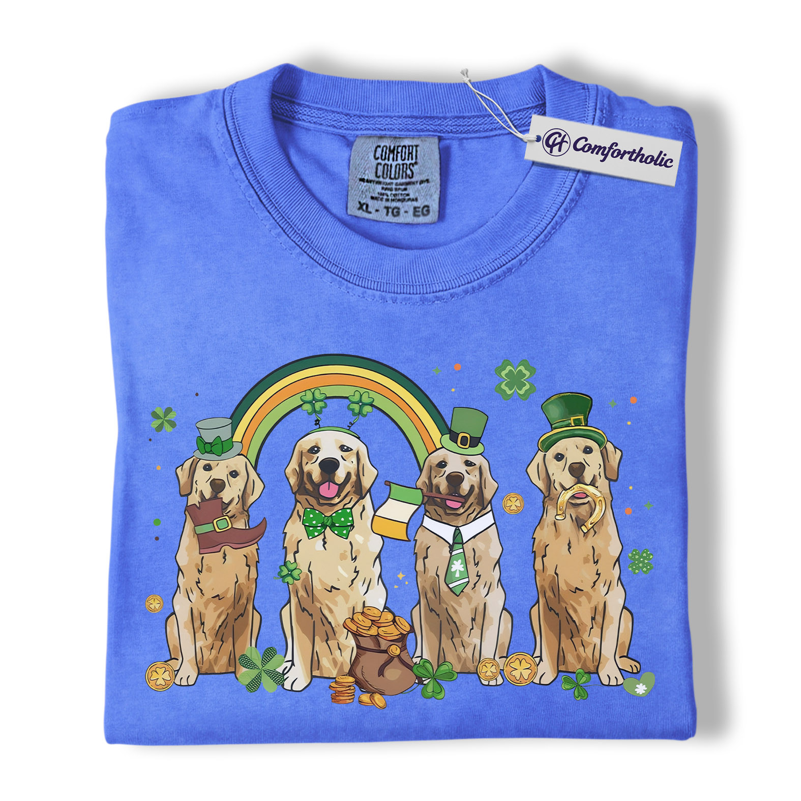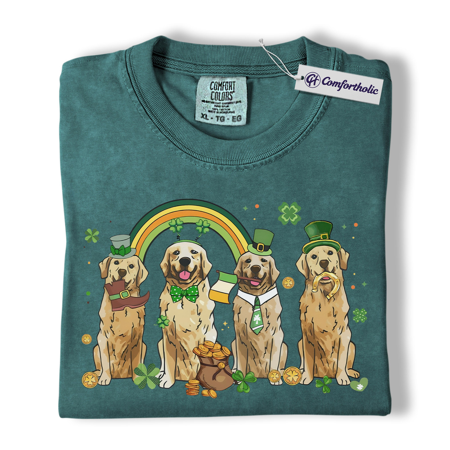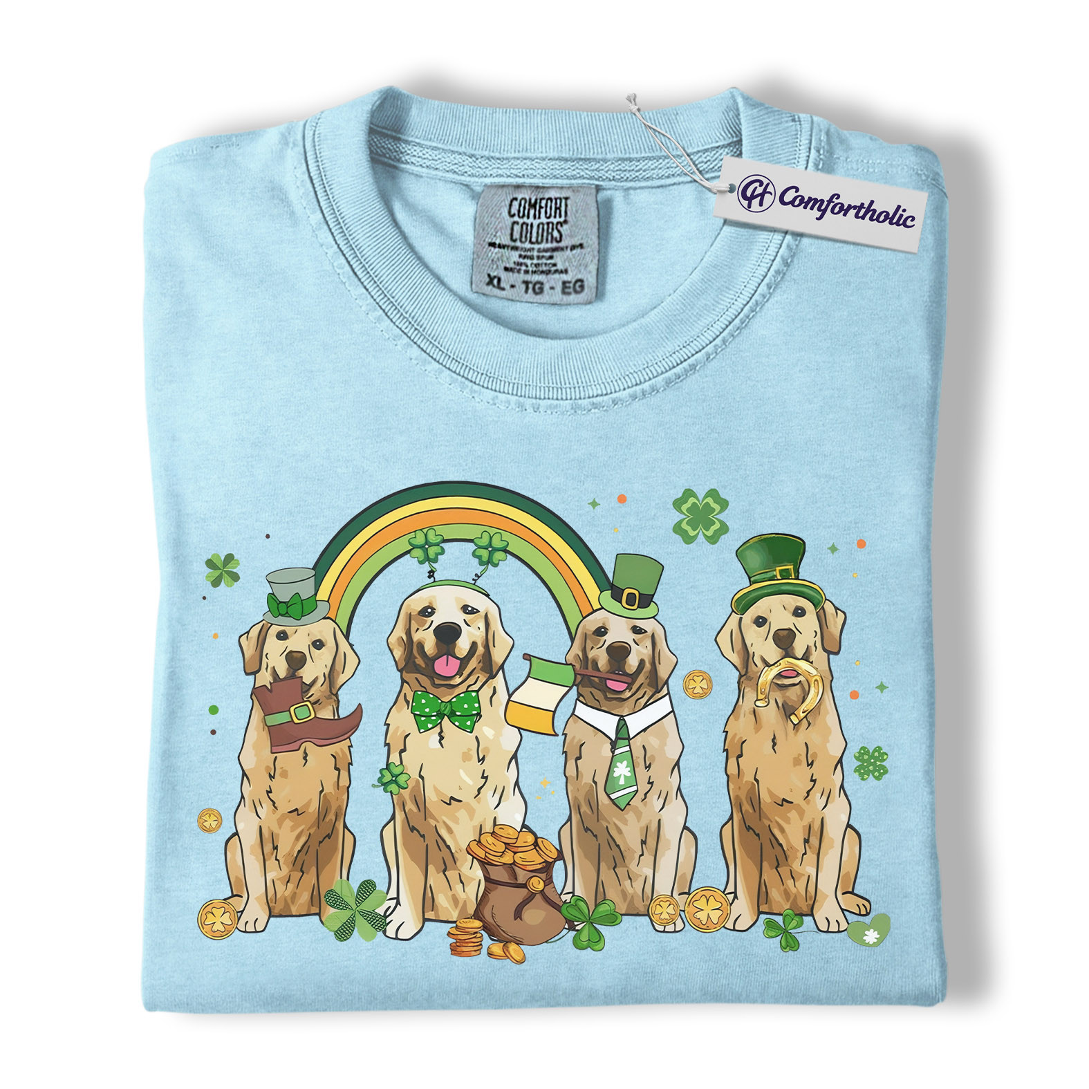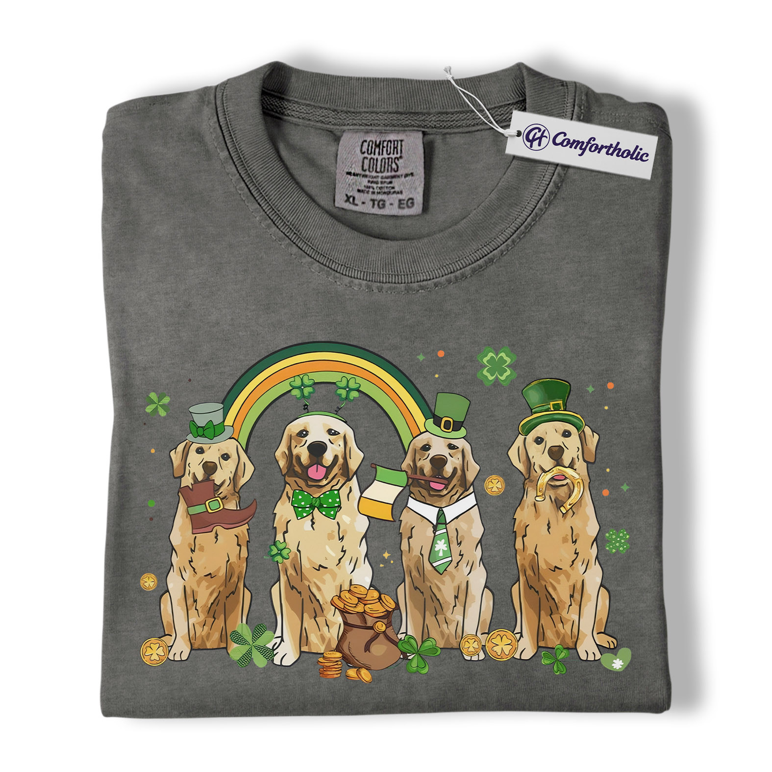 St Patrick’s Day Golden Retriever Shirt, Leprechaun Retriever Shamrock Rainbow Graphic Tee, Funny Dog Mom T-Shirt, Irish Gift for Golden Lovers, Comfort Colors Shirt