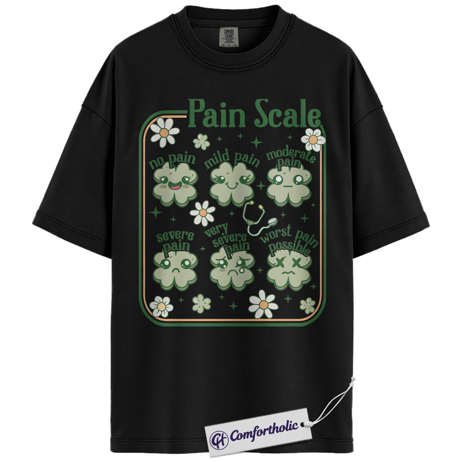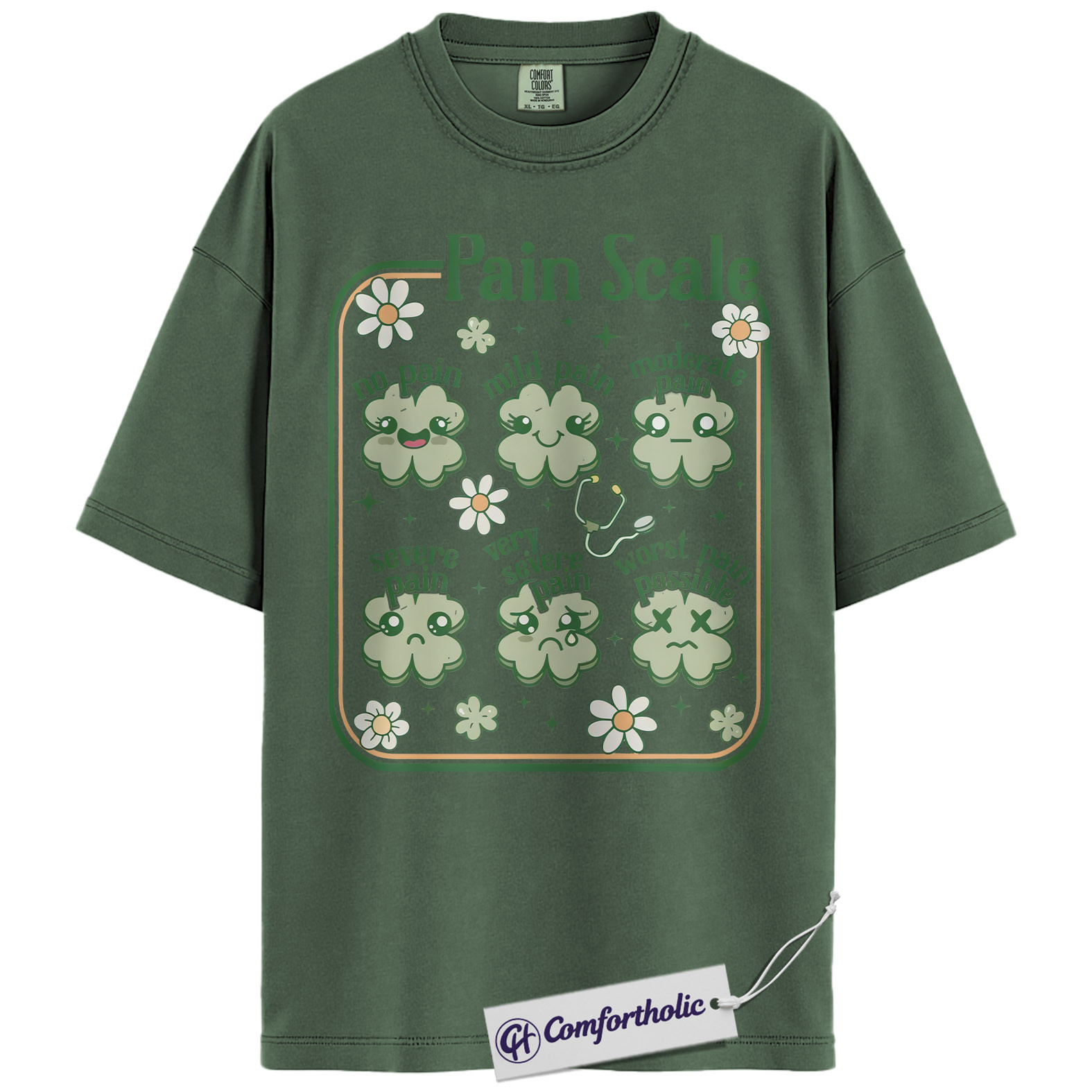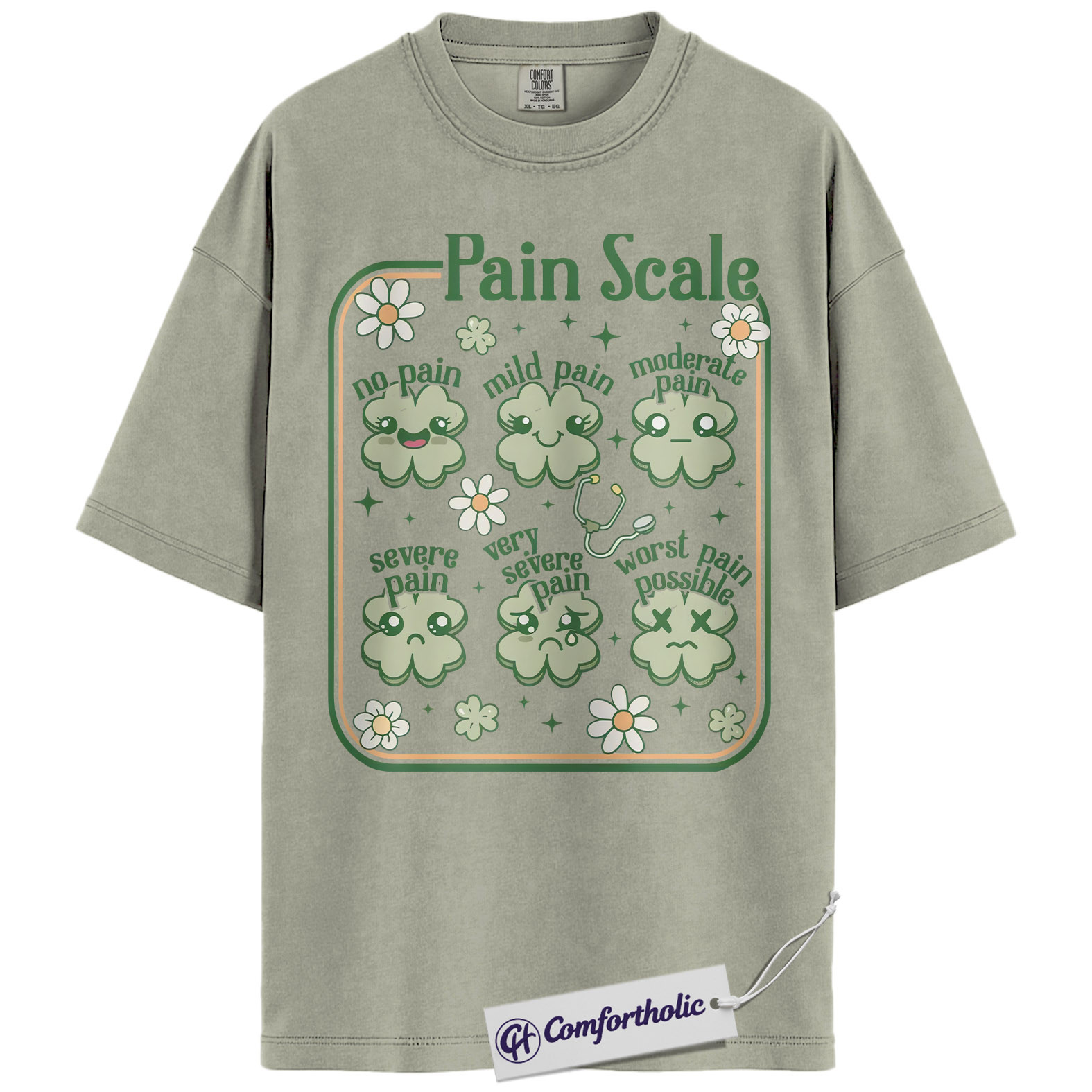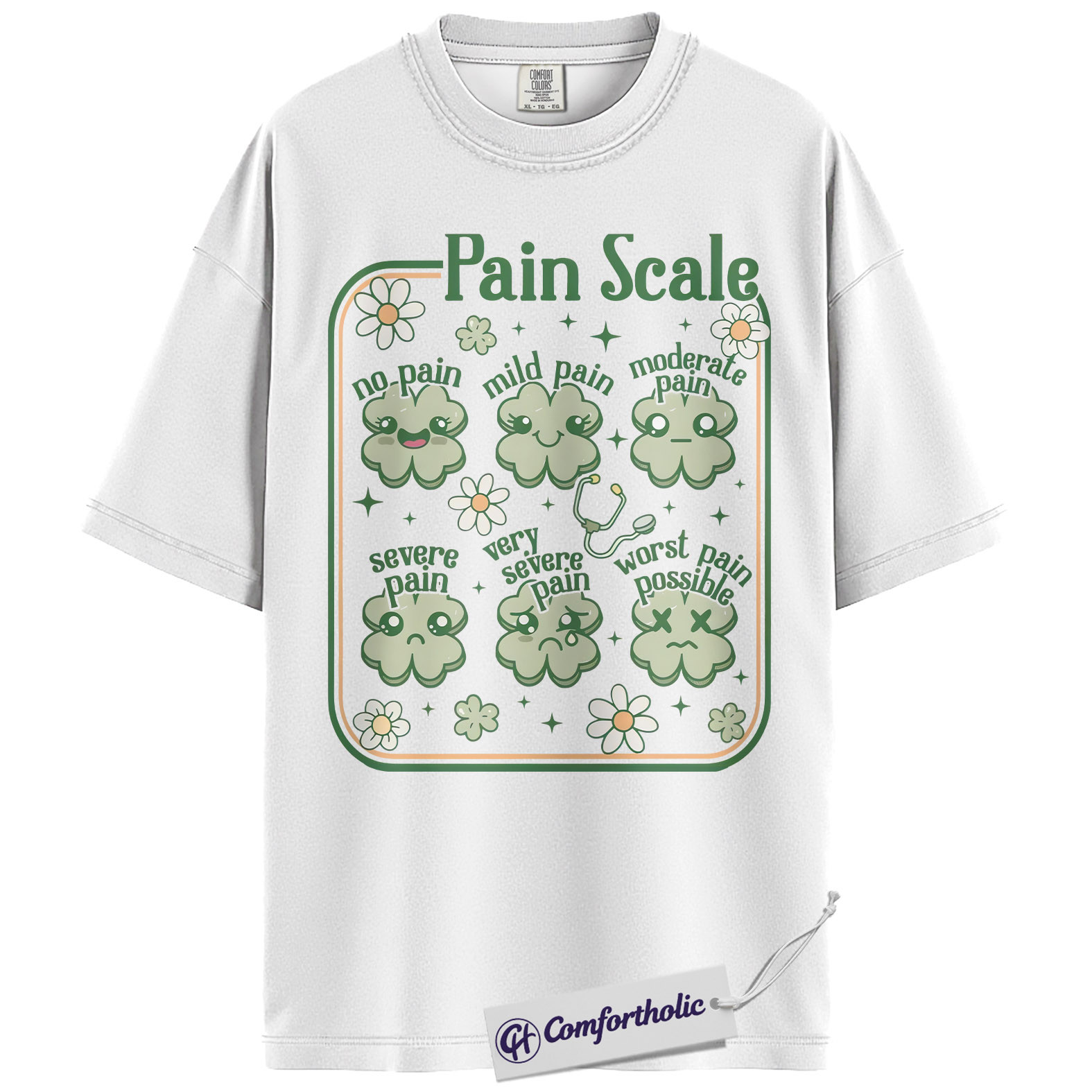 St Patrick’s Day Nurse Pain Scale Shirt, Funny Shamrock Medical Humor Graphic Tee, Cute RN T-Shirt, St Paddy’s Day Gift for Nurses, Comfort Colors Shirt