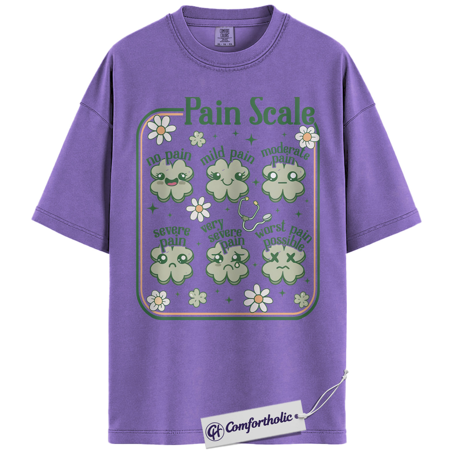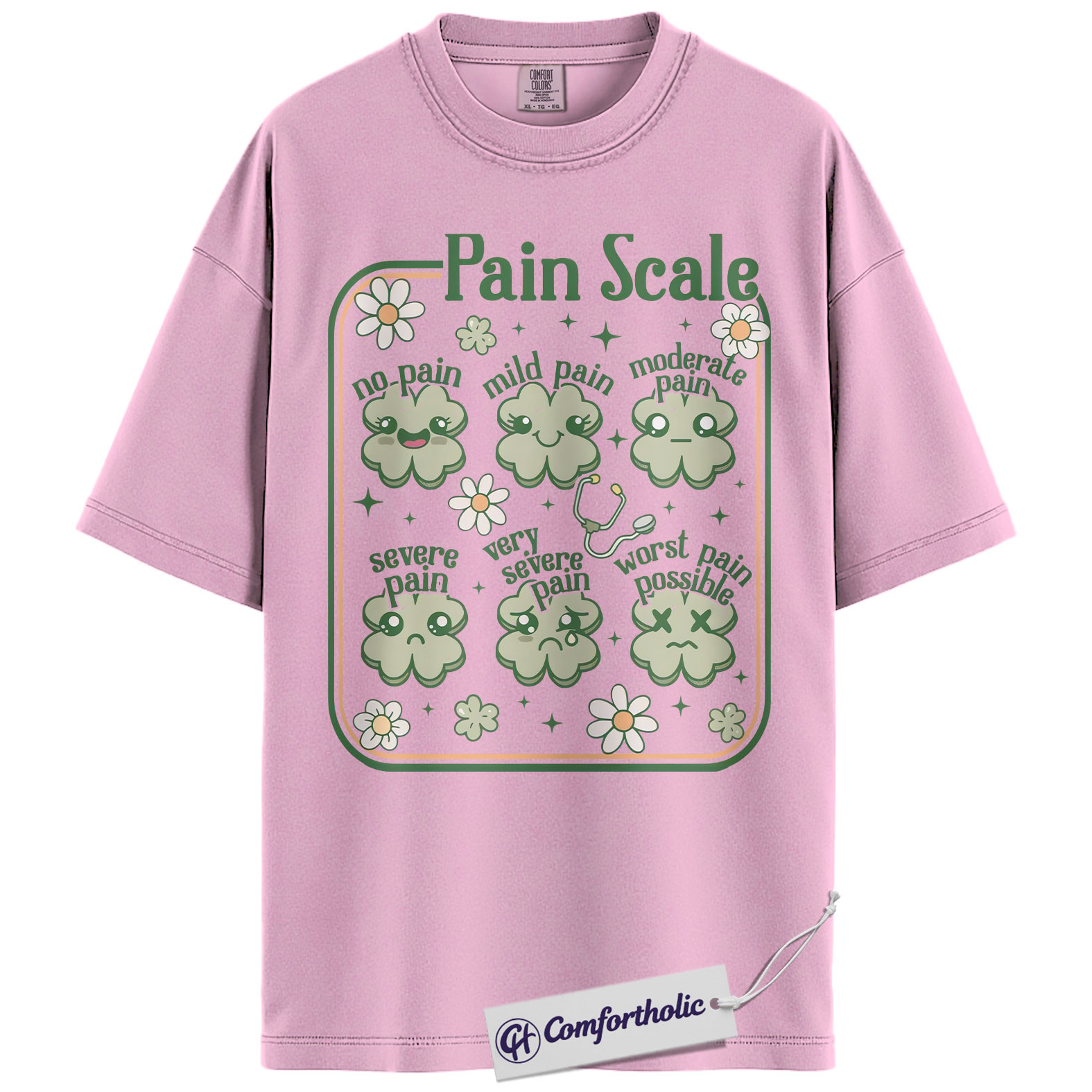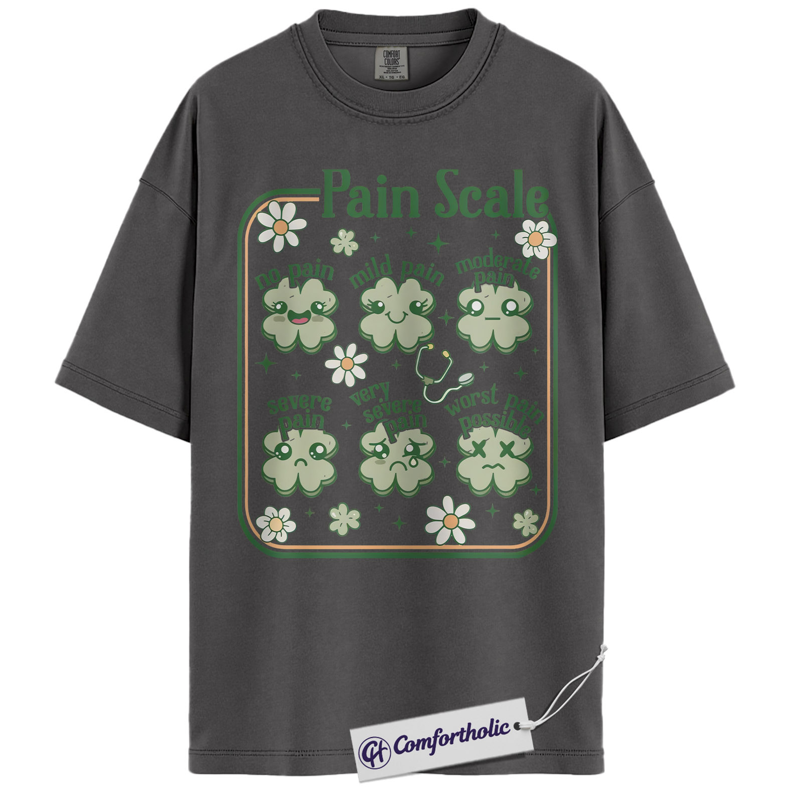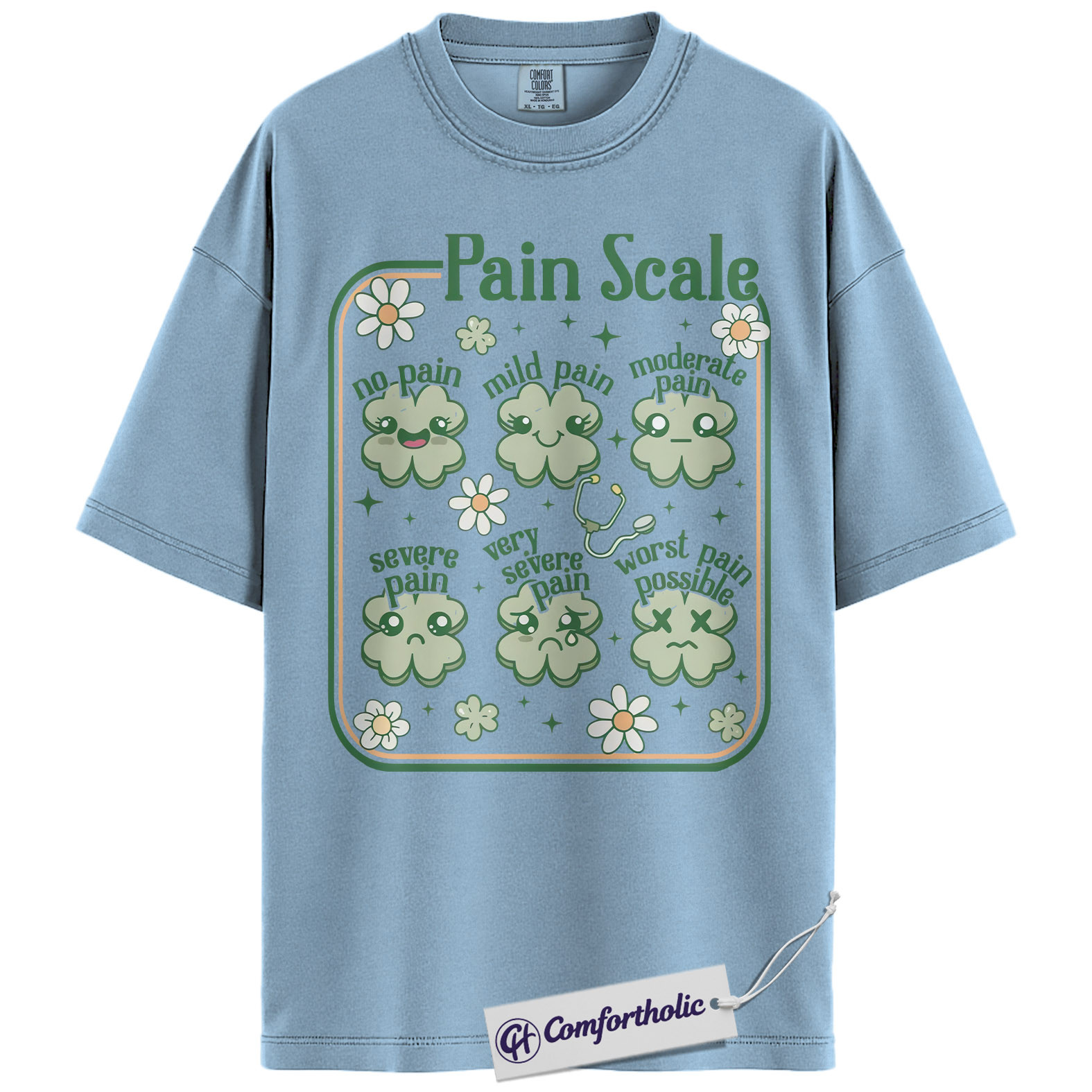 St Patrick’s Day Nurse Pain Scale Shirt, Funny Shamrock Medical Humor Graphic Tee, Cute RN T-Shirt, St Paddy’s Day Gift for Nurses, Comfort Colors Shirt