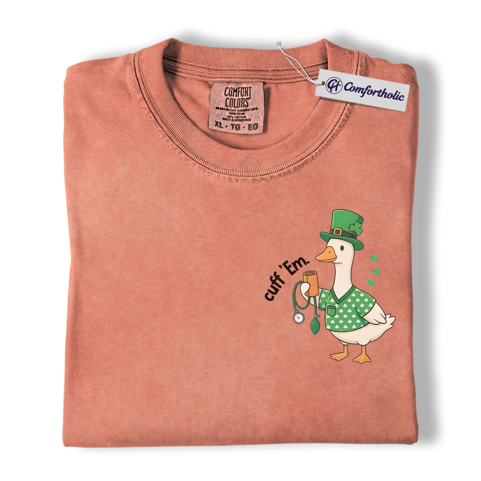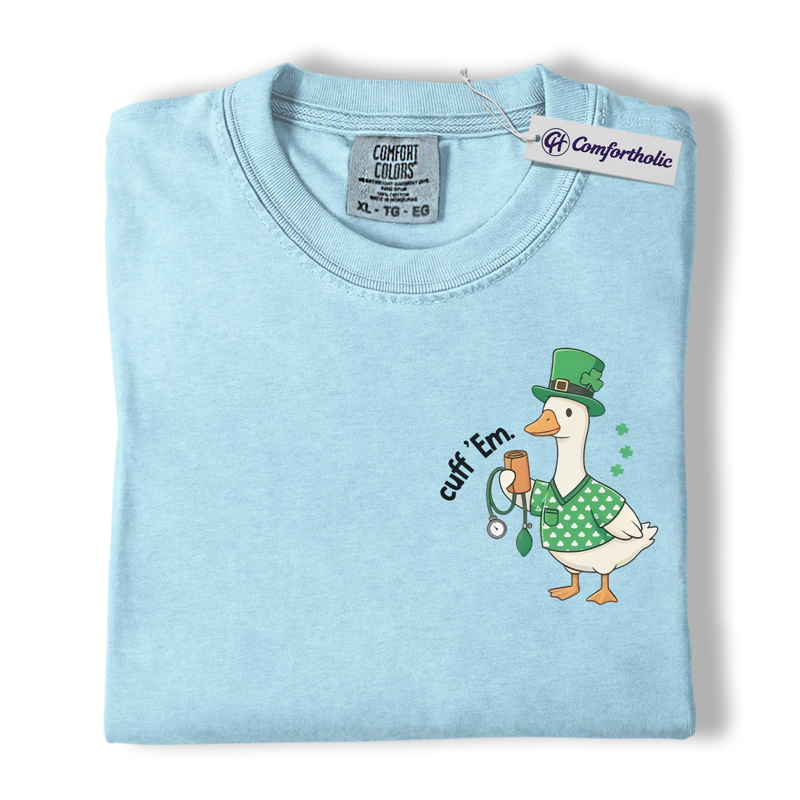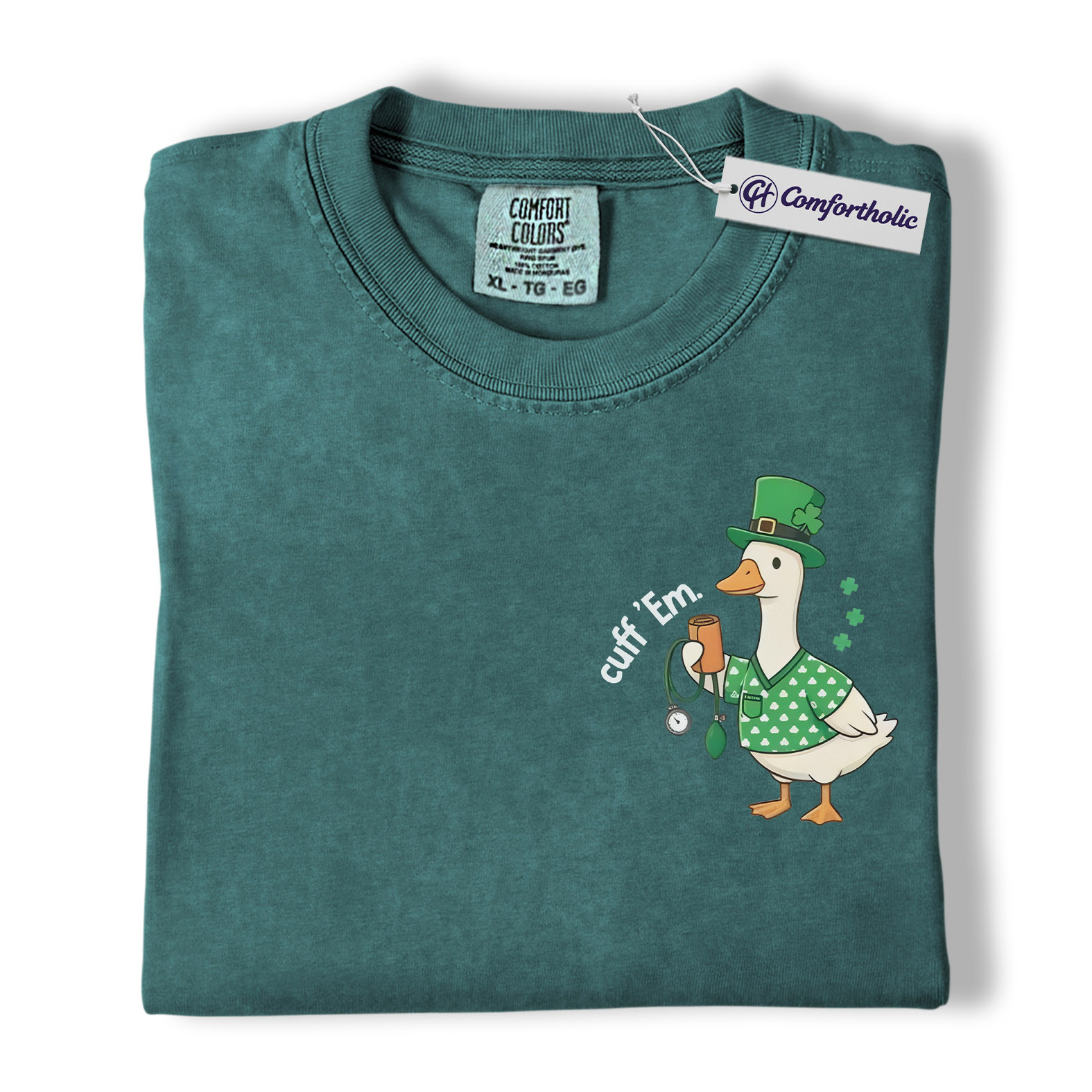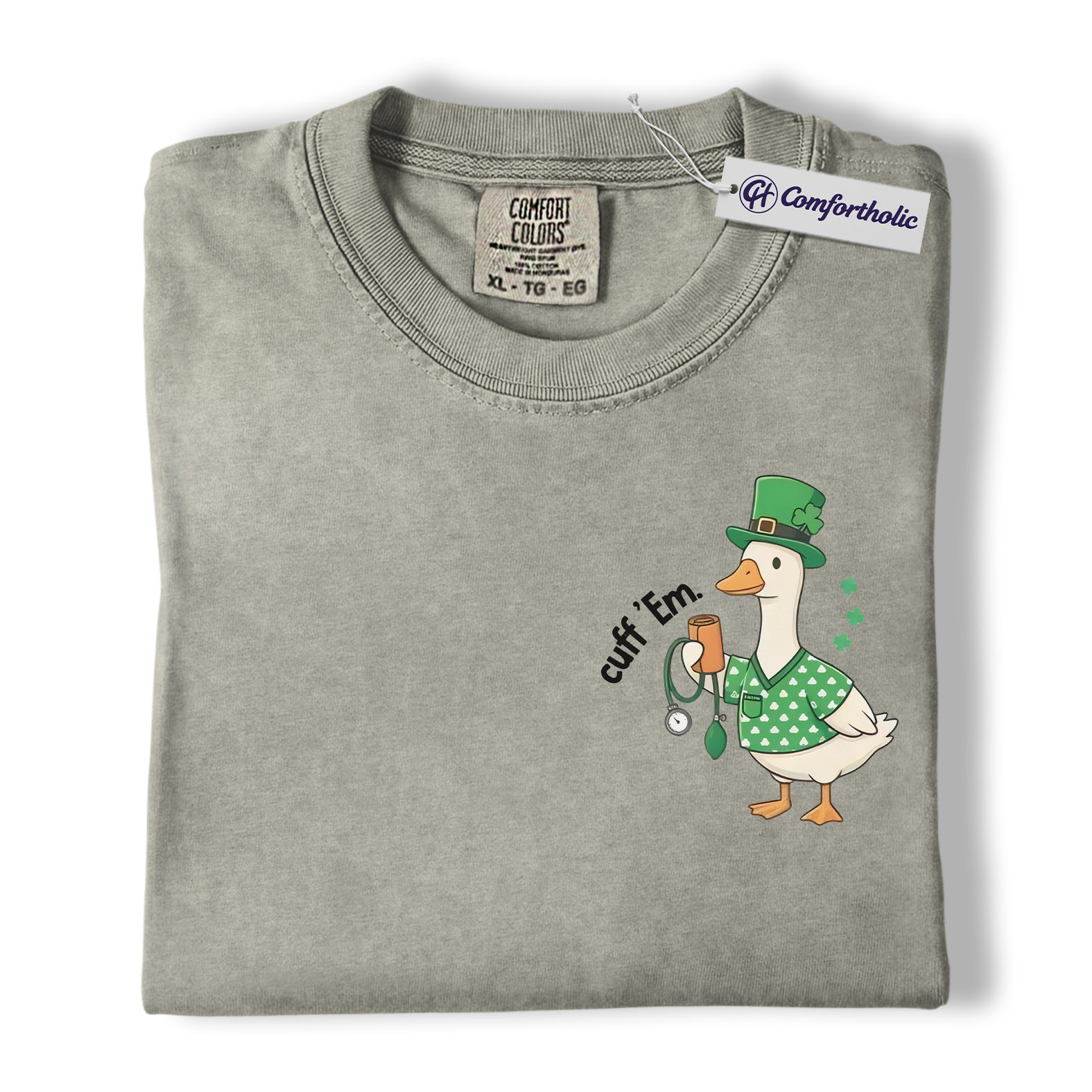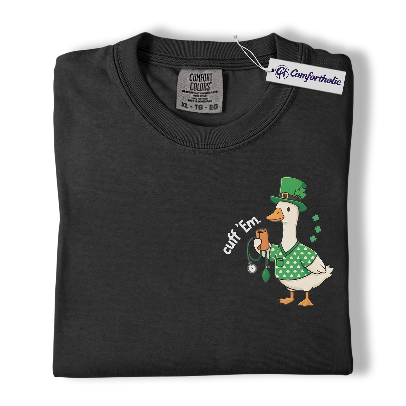 St Patrick’s Day Nurse Shirt, Cuff ‘Em Funny Goose Blood Pressure Graphic Tee, RN T-Shirt, St Patrick’s Day Gift for Nurses, Comfort Colors Shirt