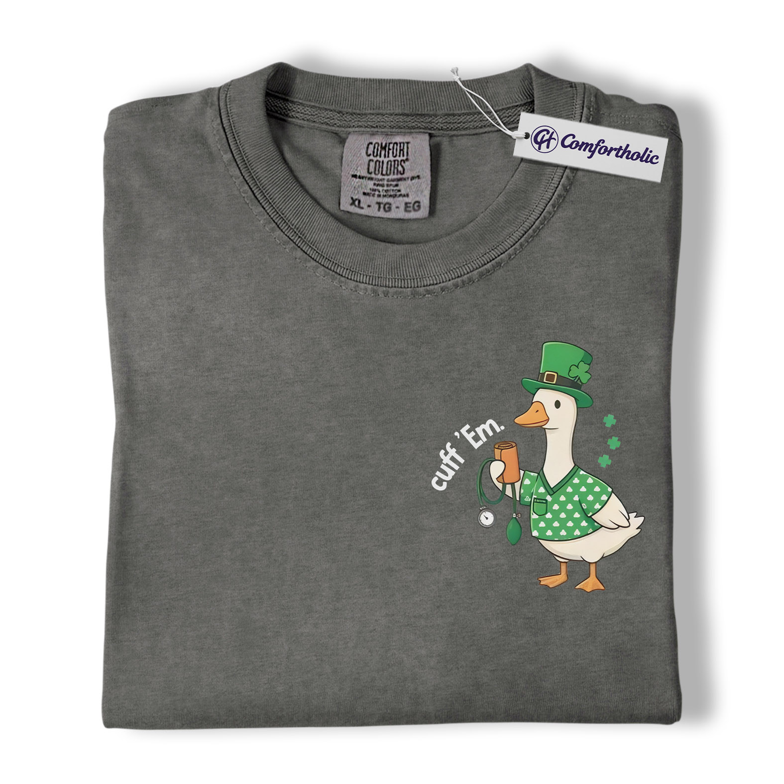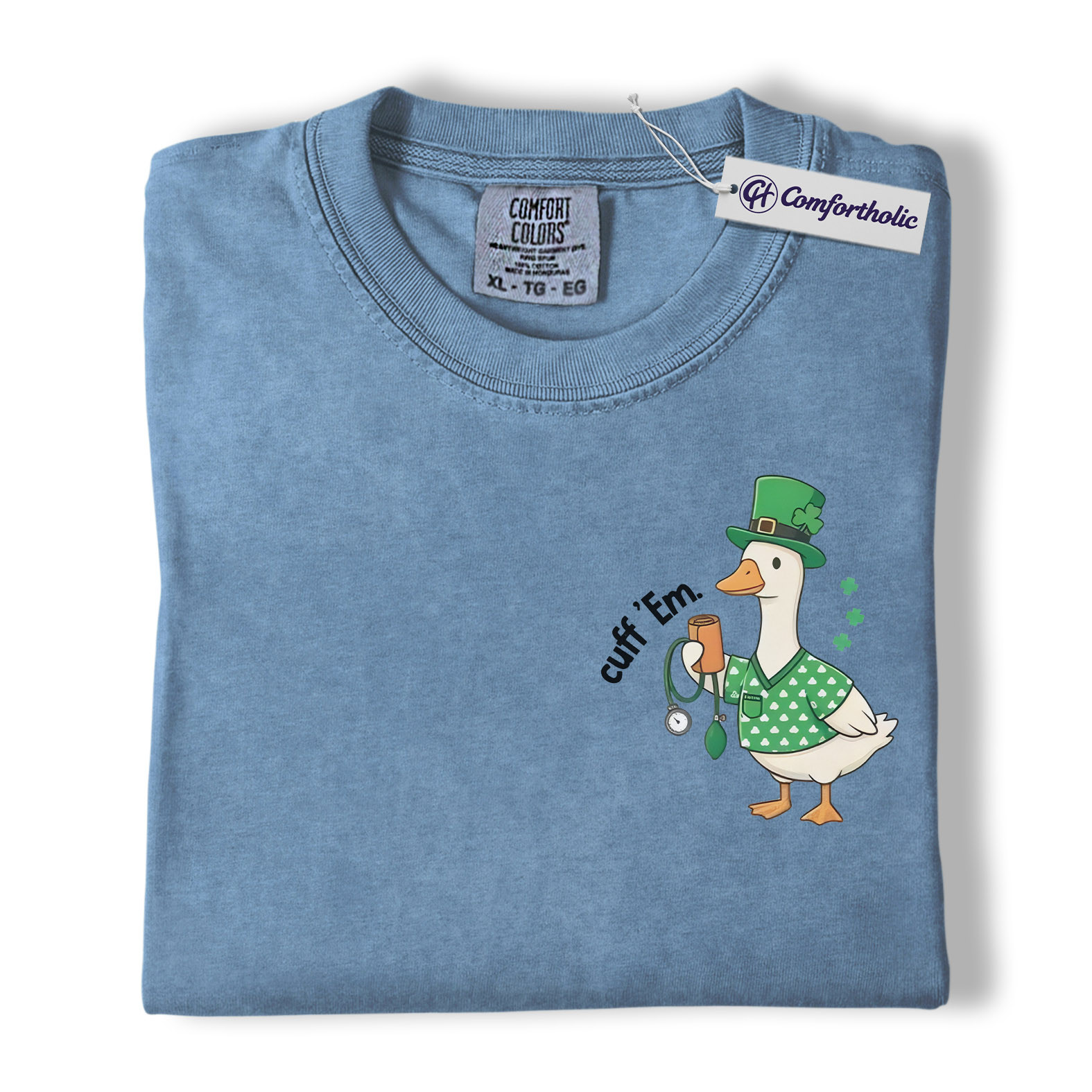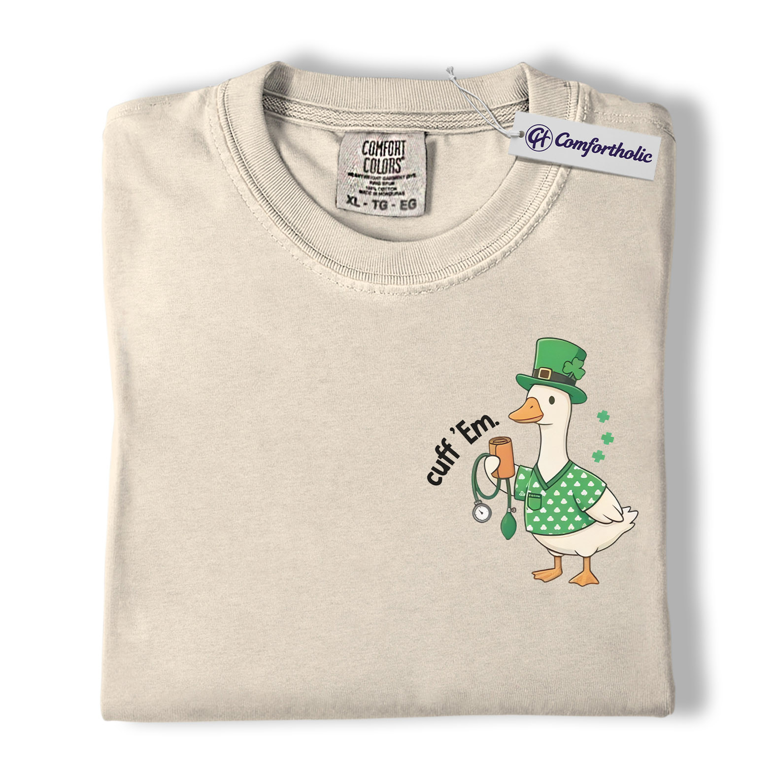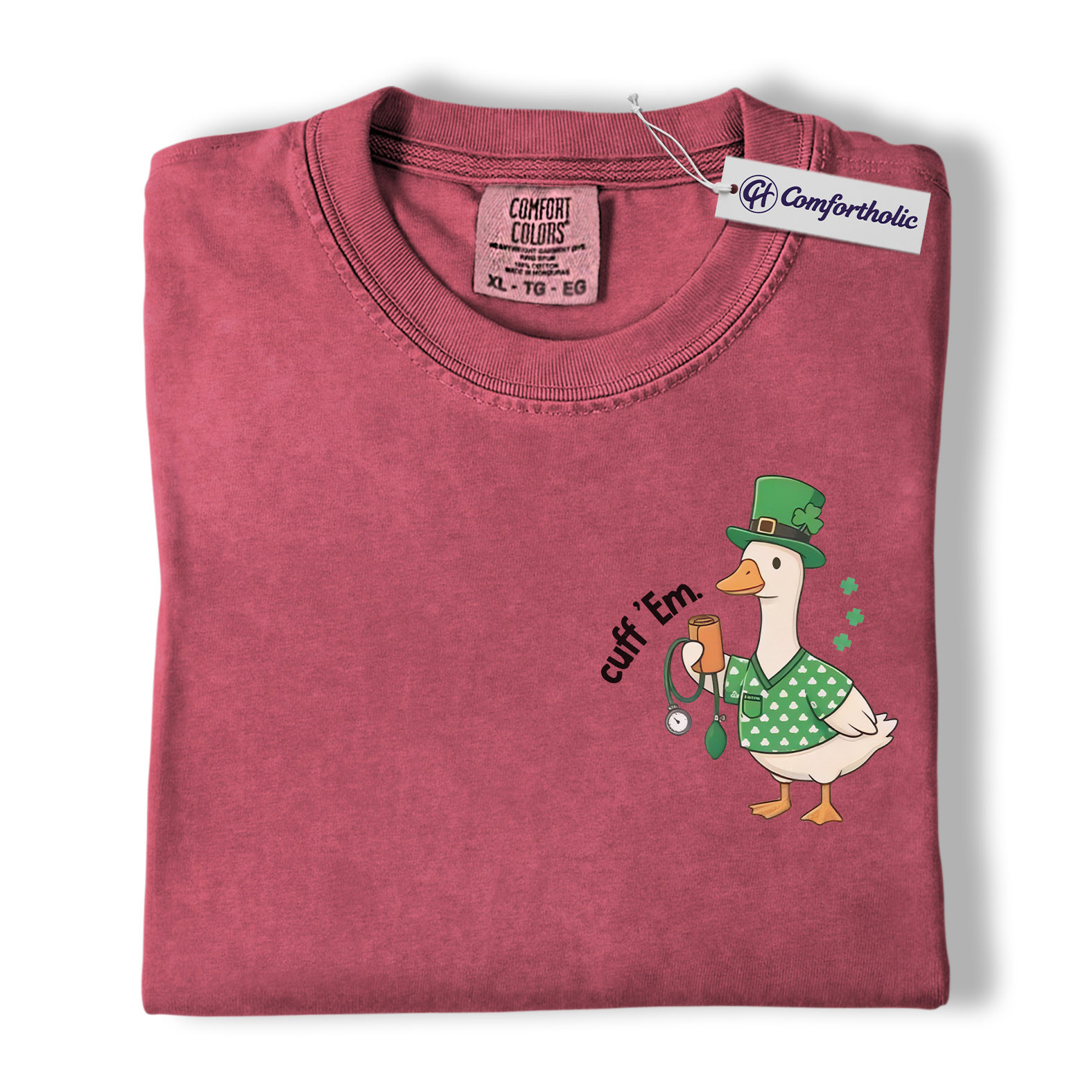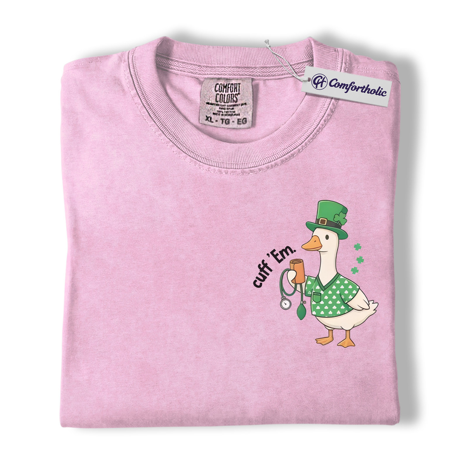 St Patrick’s Day Nurse Shirt, Cuff ‘Em Funny Goose Blood Pressure Graphic Tee, RN T-Shirt, St Patrick’s Day Gift for Nurses, Comfort Colors Shirt