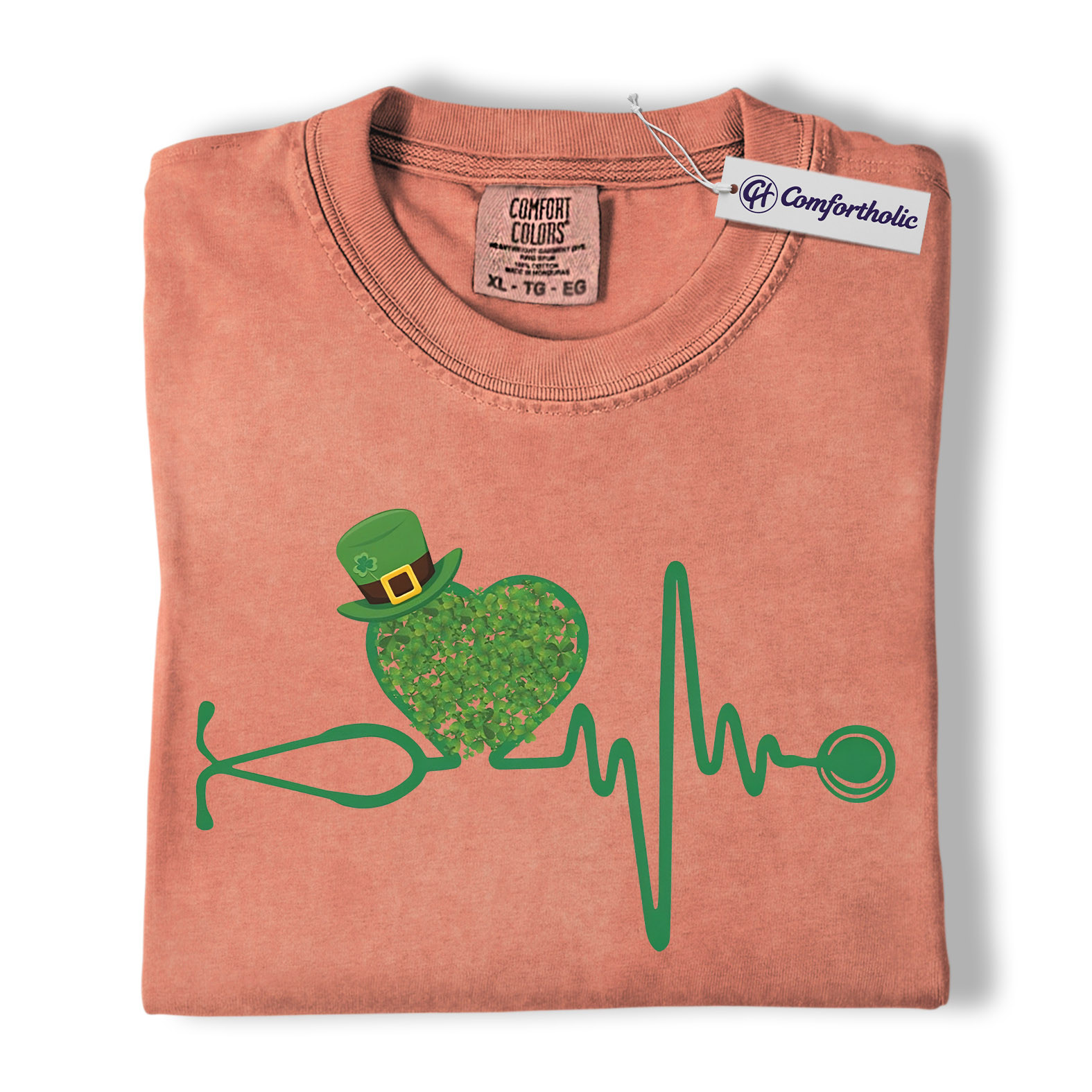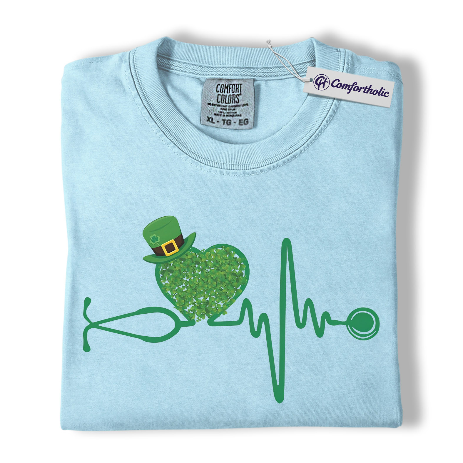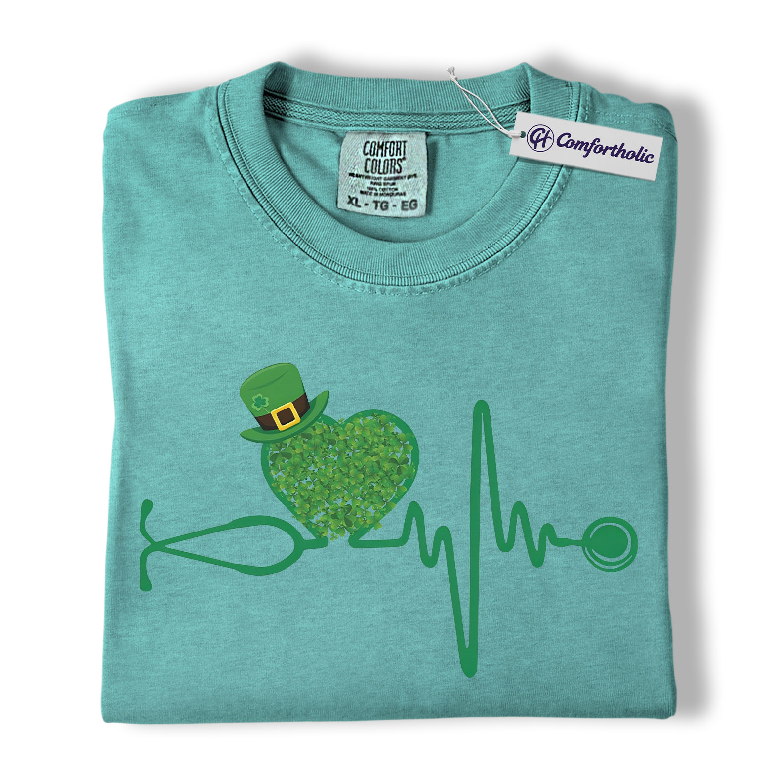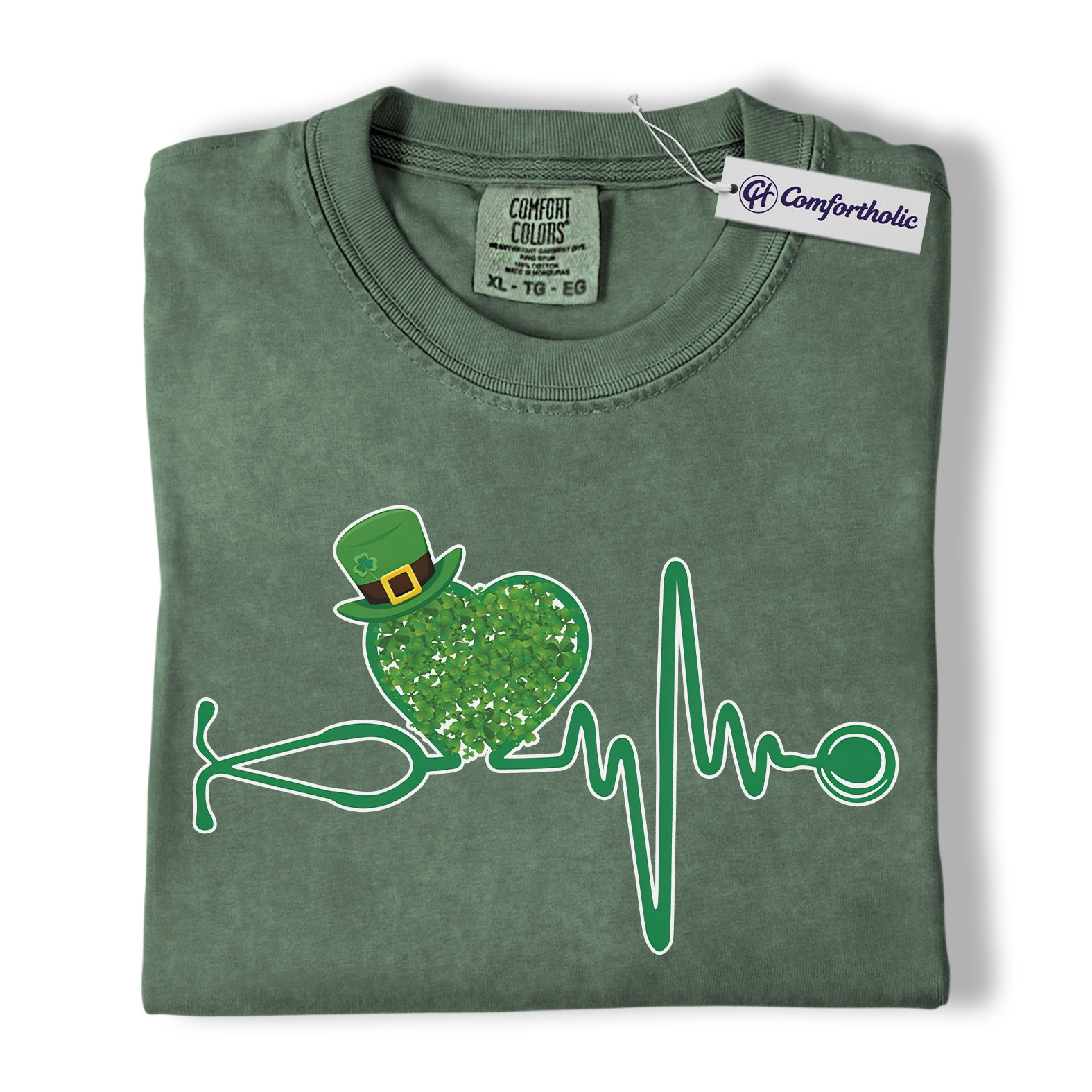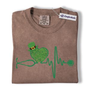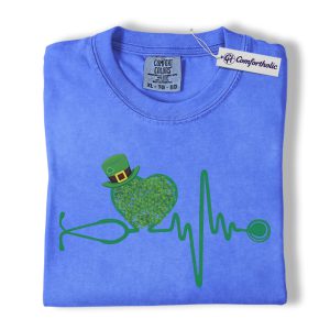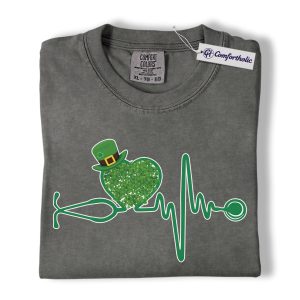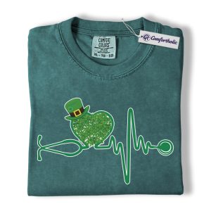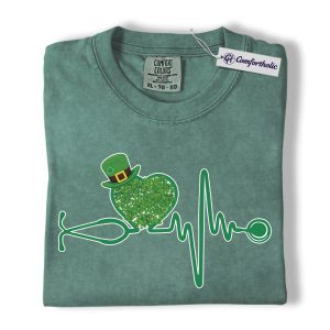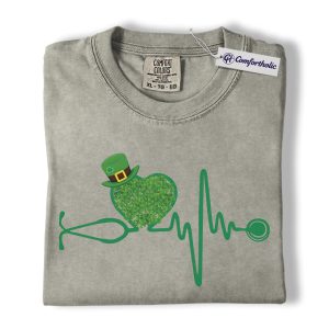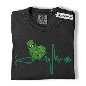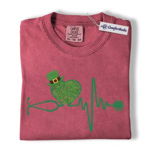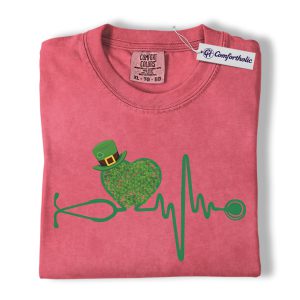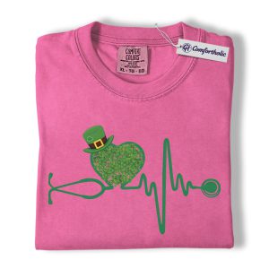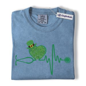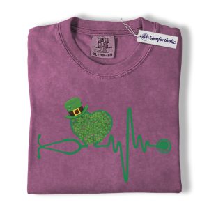 St Patrick’s Day Nurse Shirt, Shamrock Stethoscope Heartbeat Graphic Tee, Lucky Nurse RN LPN CNA T-Shirt, St Paddy’s Day Gift for Nurses, Comfort Colors Shirt