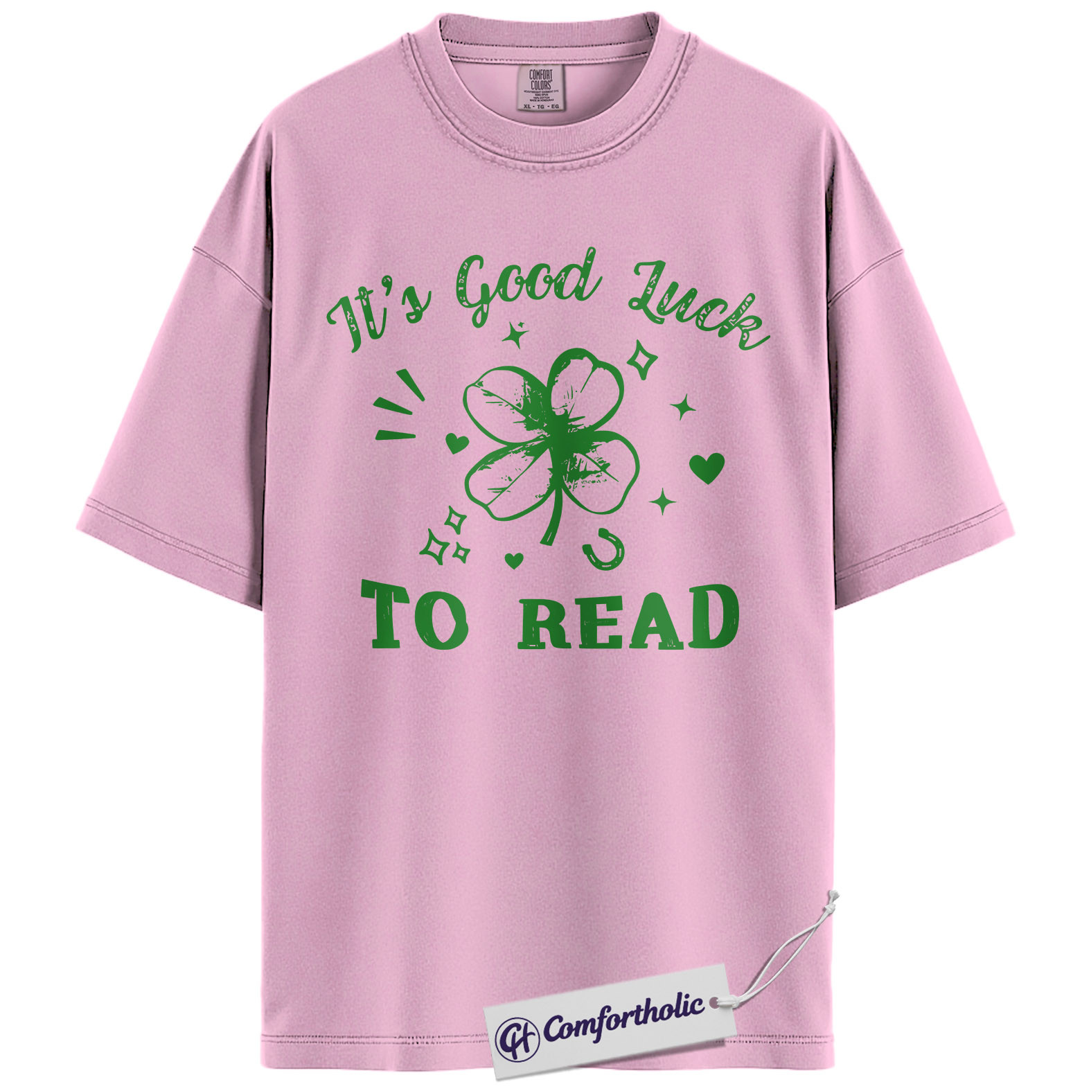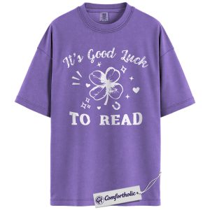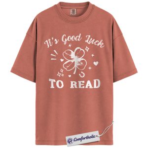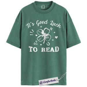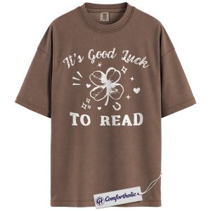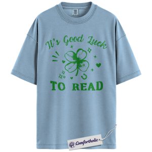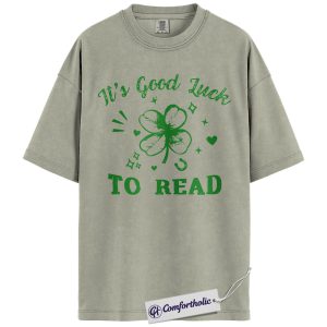 St Patrick’s Day Reading Shirt, It’s Good Luck To Read Shamrock Graphic Tee, Book Lover T-Shirt for Readers, St Paddy’s Day Gift, Comfort Colors Shirt