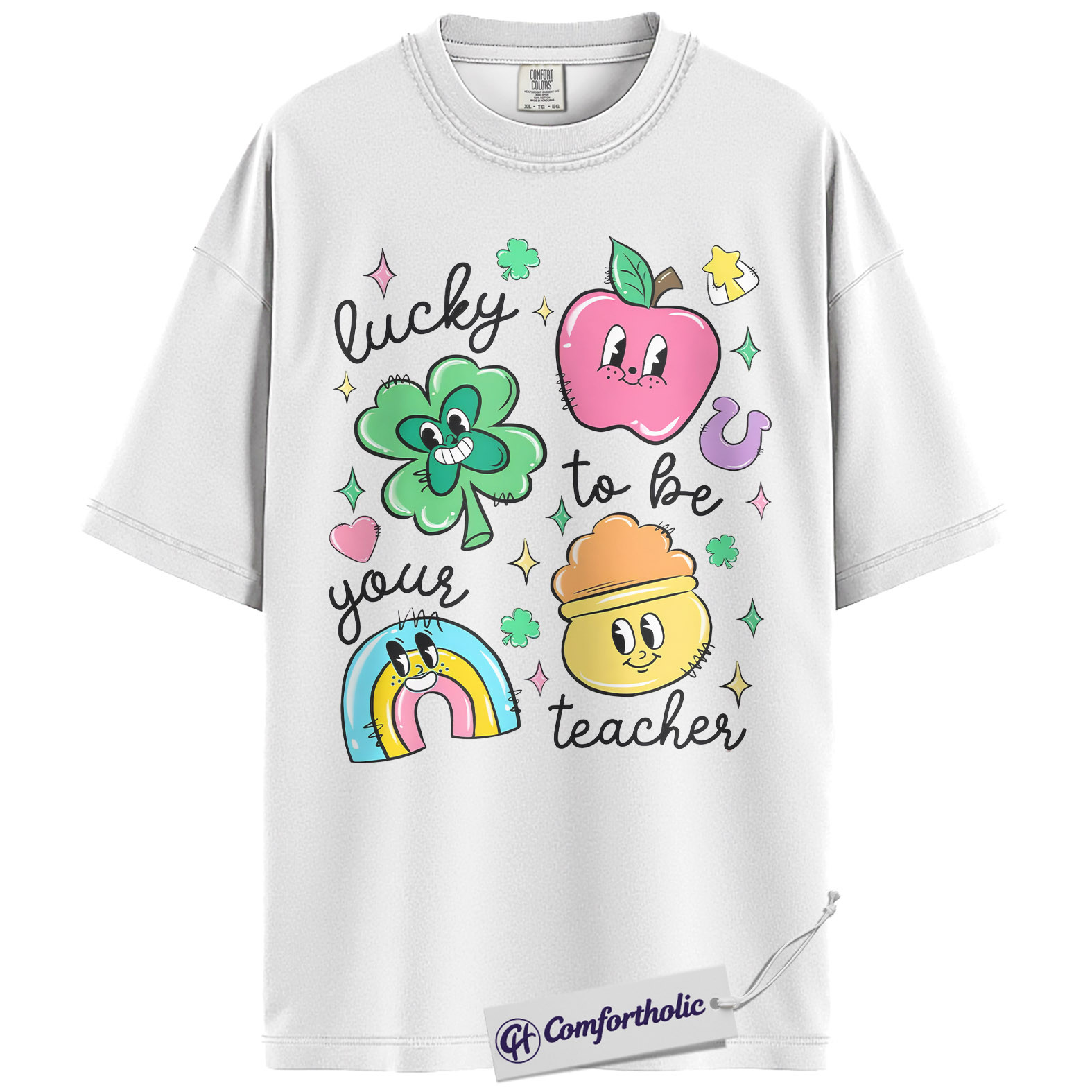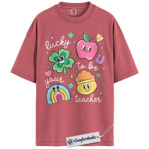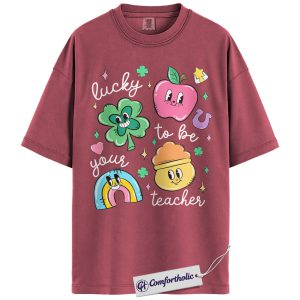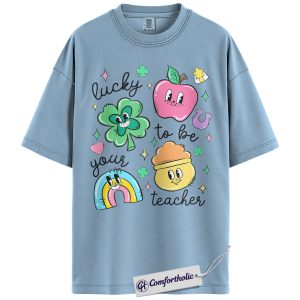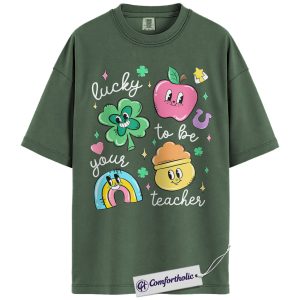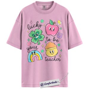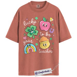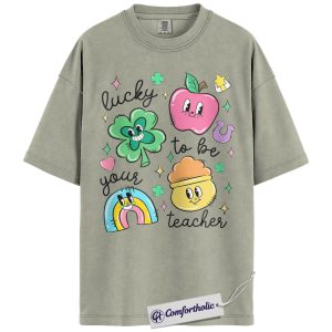 St Patrick’s Day Teacher Shirt, Lucky to Be Your Teacher Graphic Tee, Cute Shamrock Rainbow Classroom T-Shirt, Gift for Teachers, Comfort Colors Shirt