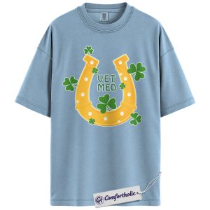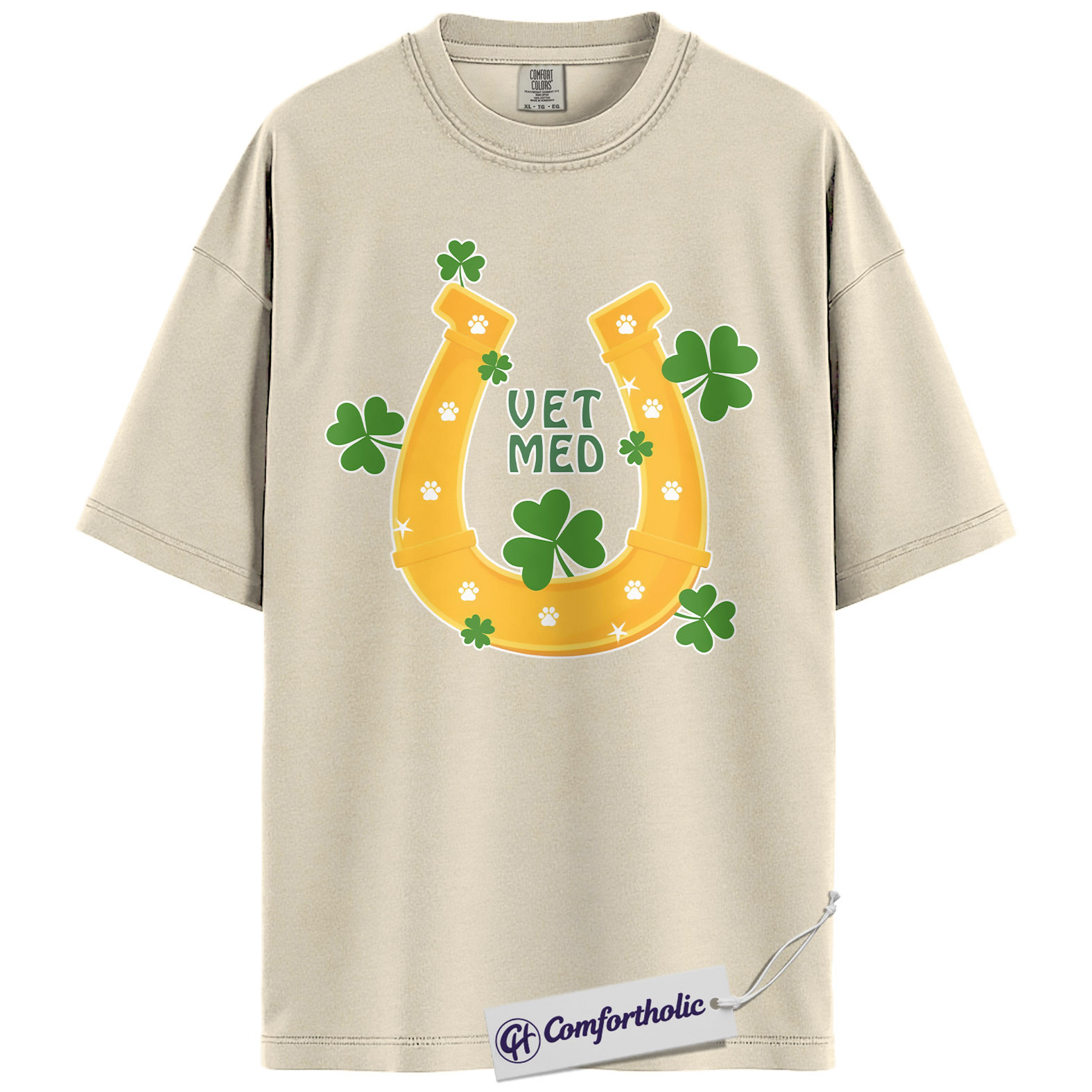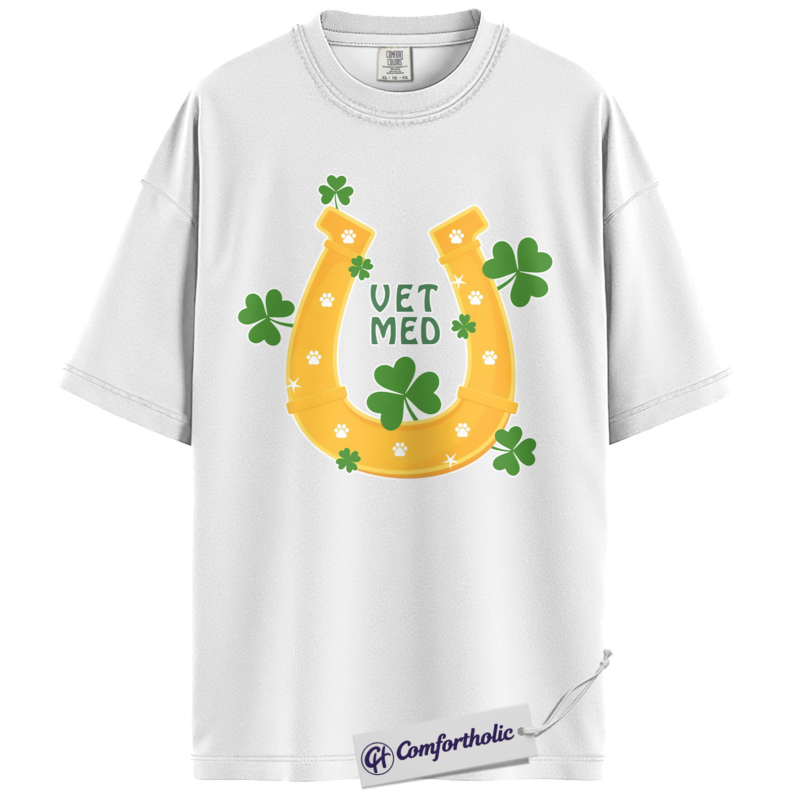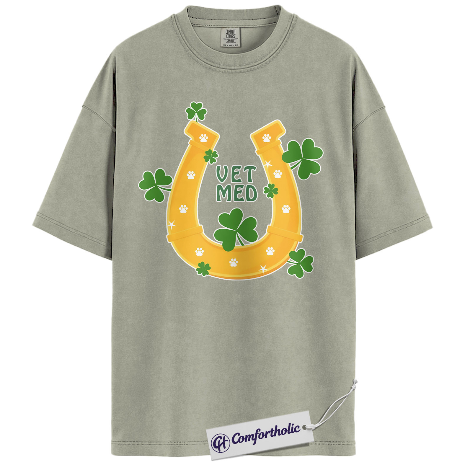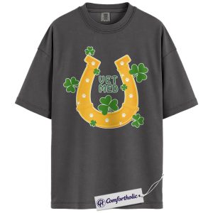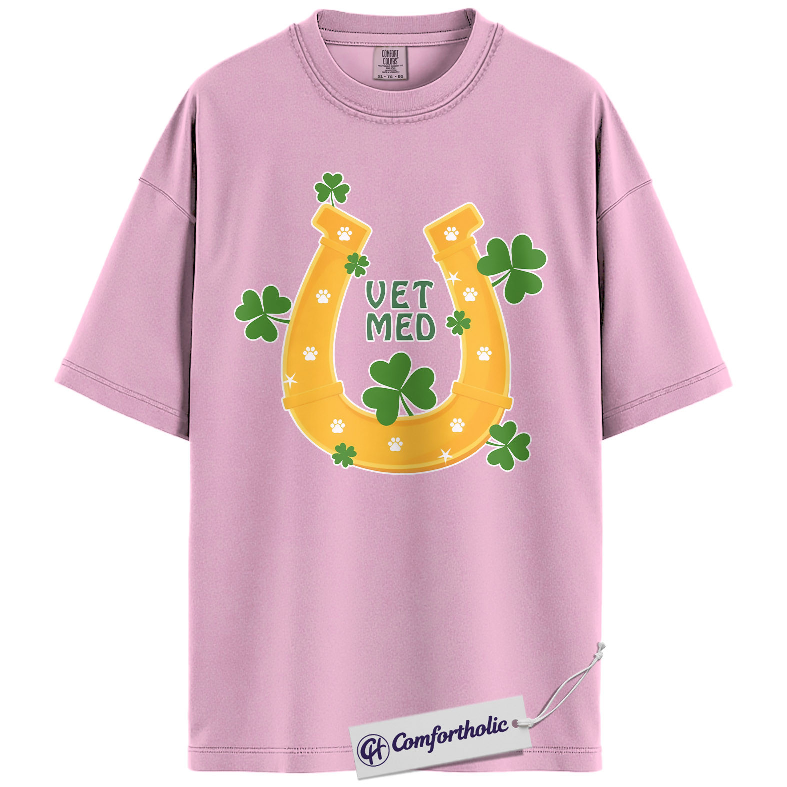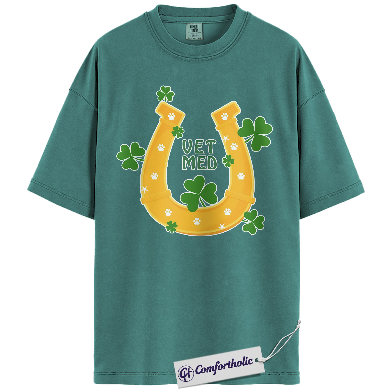 St Patrick’s Day Vet Med Shirt, Lucky Horseshoe Clover Graphic Tee, Vet Tech & Veterinary Medicine T-Shirt, Gift for Veterinarians & Vet Students, Comfort Colors Shirt