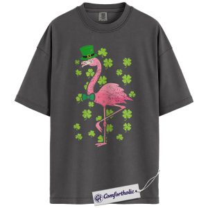 St Patricks Flamingo Shirt, Funny Shamrock Flamingo Graphic Tee, St Patrick’s Day Party T-Shirt, Gift for Women & Animal Lovers, Comfort Colors Shirt